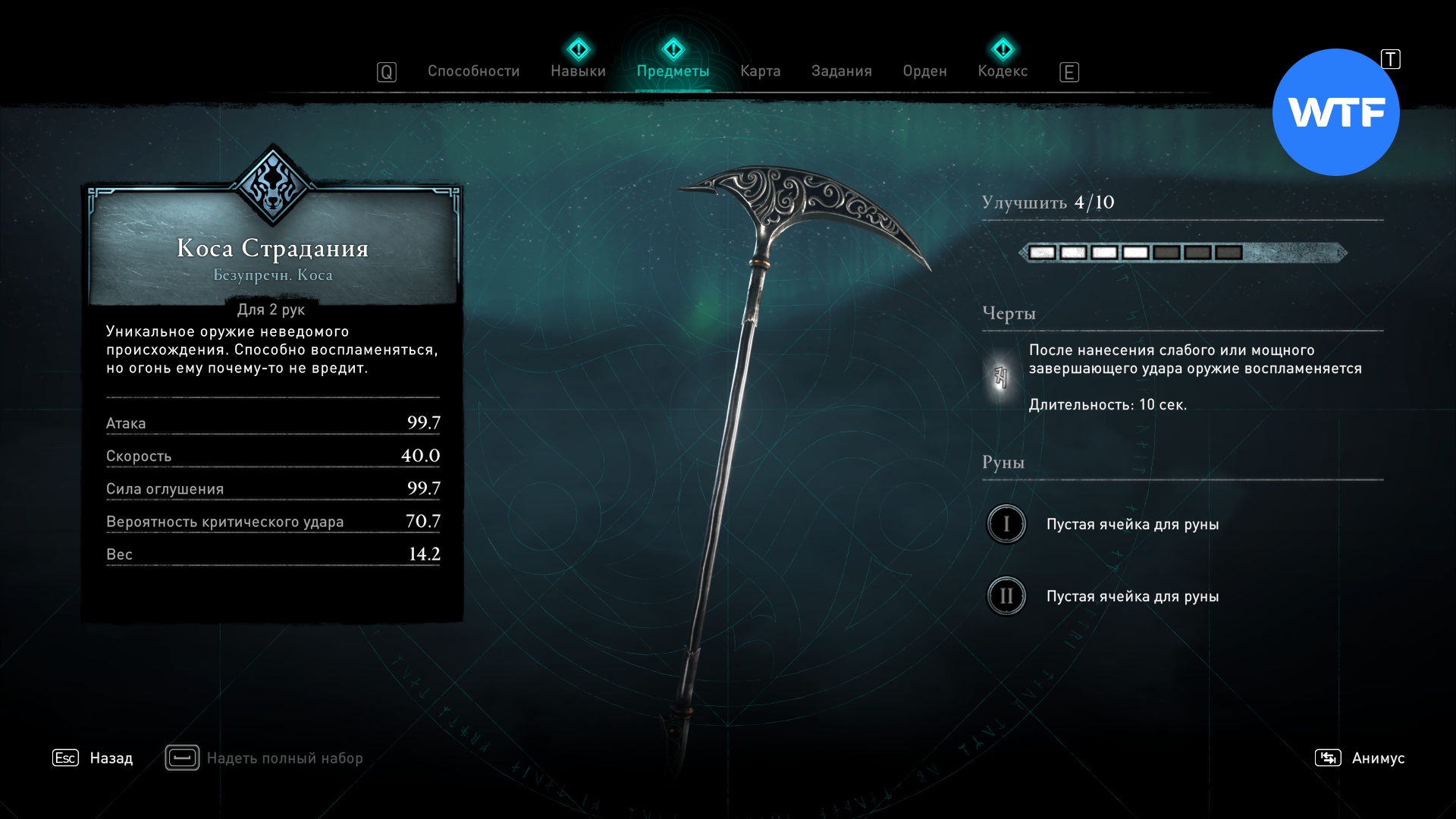 - Временно отравляет оружие после 5 мощных ударов подряд.