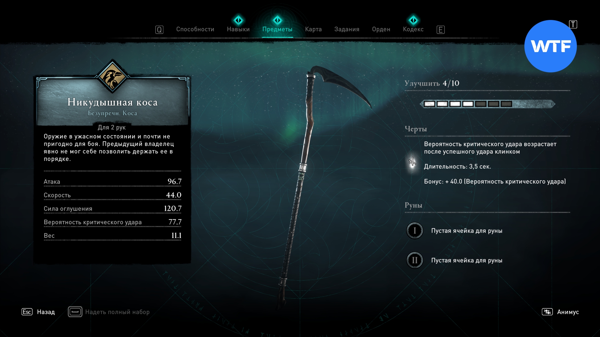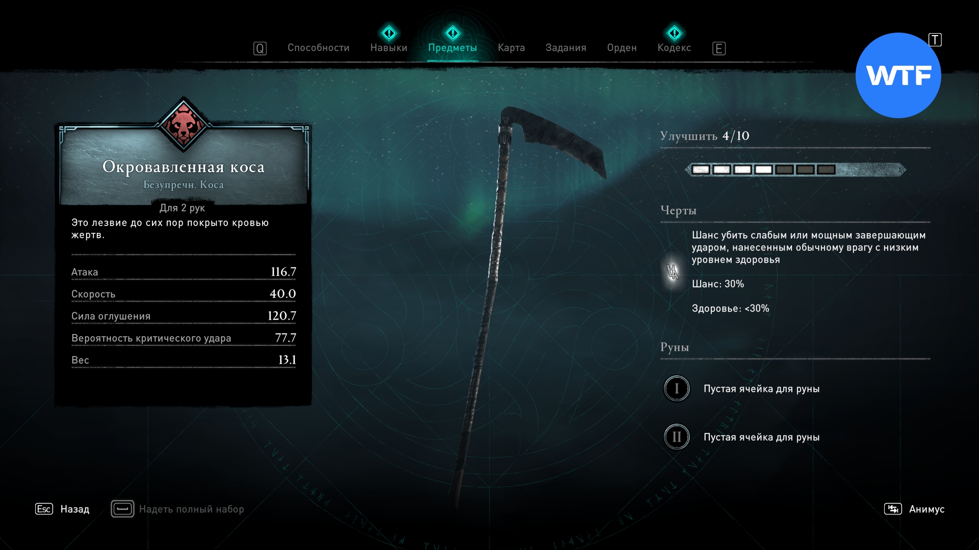 - Шанс убить слабым или мощным завершающим ударом, нанесенным обычному врагу низким уровнем здоровья.