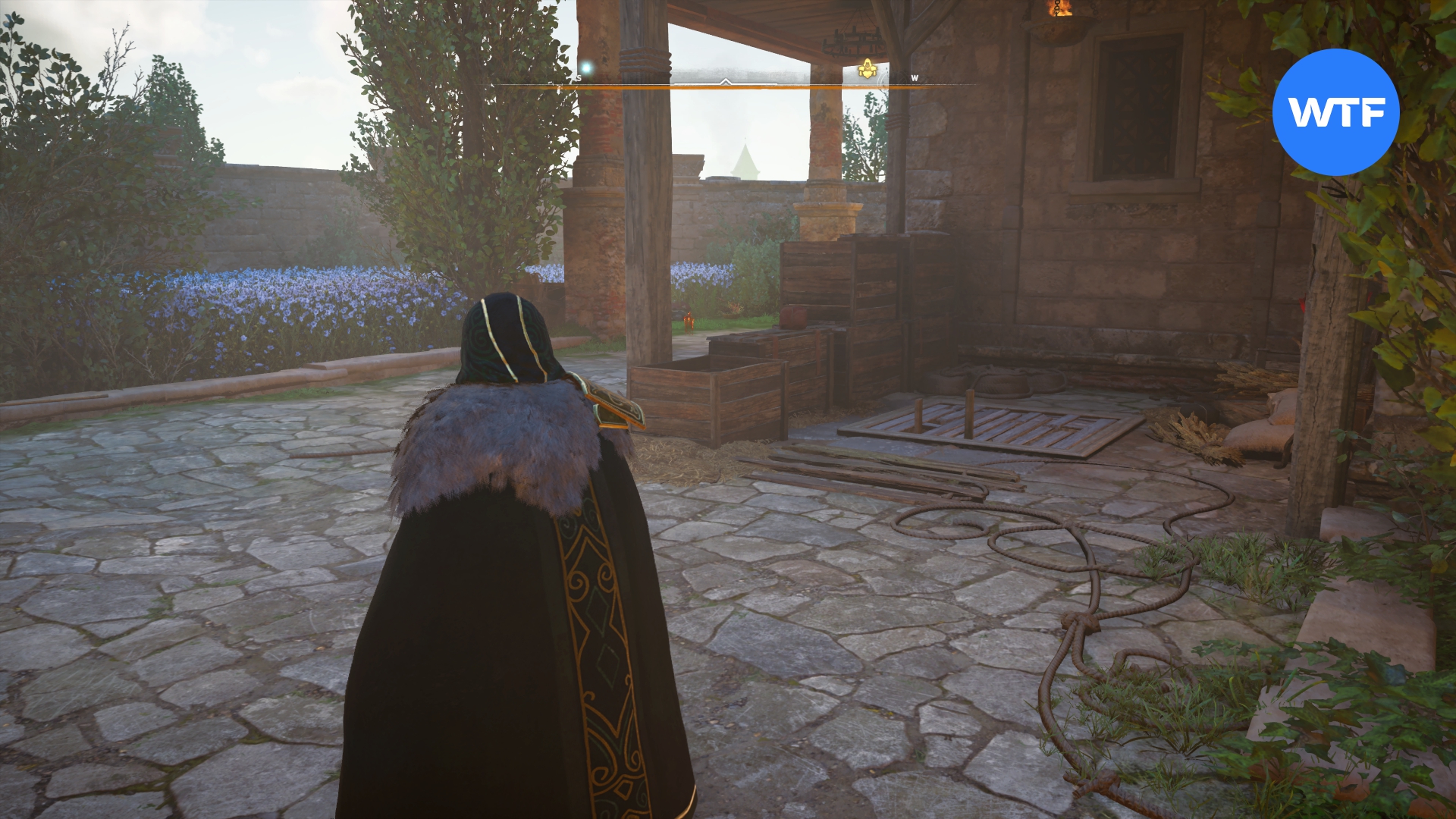 Отправляйтесь в северную часть региона Амьенуа. Вам нужно местечко с названием Мурмилиакум. Первым делом поднимитесь в верхнюю часть главного здания и заберите ключ возле кровати. После этого вернитесь на улицу и найдите спуск вниз напротив клумбы с фиолетовыми цветами (см. скриншот 3). Он приведет вас к сундуку.