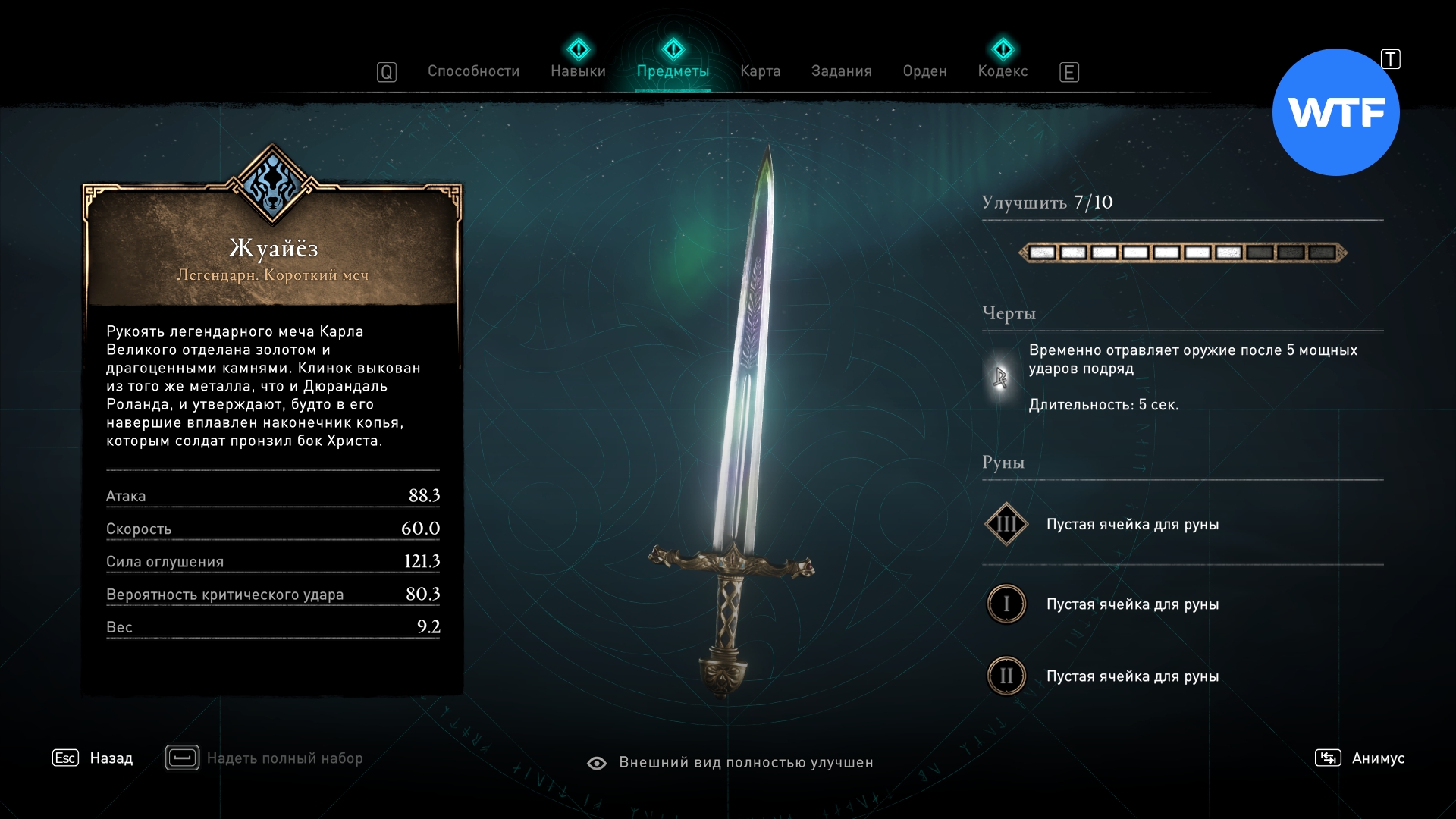 Этот меч ждет вас внутри конторы Незримых в Париже. Вход находится среди разрушенных колонн к юго-западу от метки сокровища (см. скриншоты 2-3).