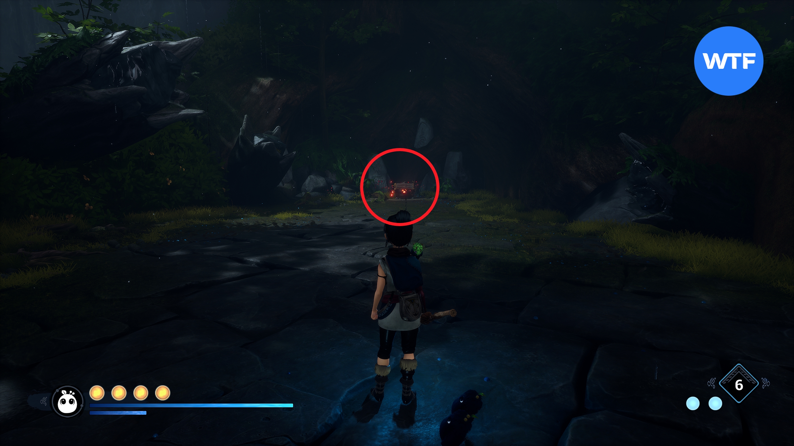 Сундук стоит на деревянном мостике напротив водопада, в двух шагах от предыдущего дома. Победите 15 врагов за минуту, чтобы открыть его.