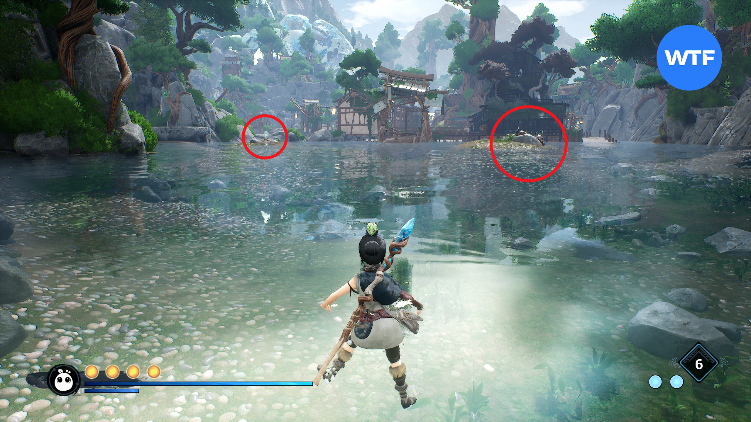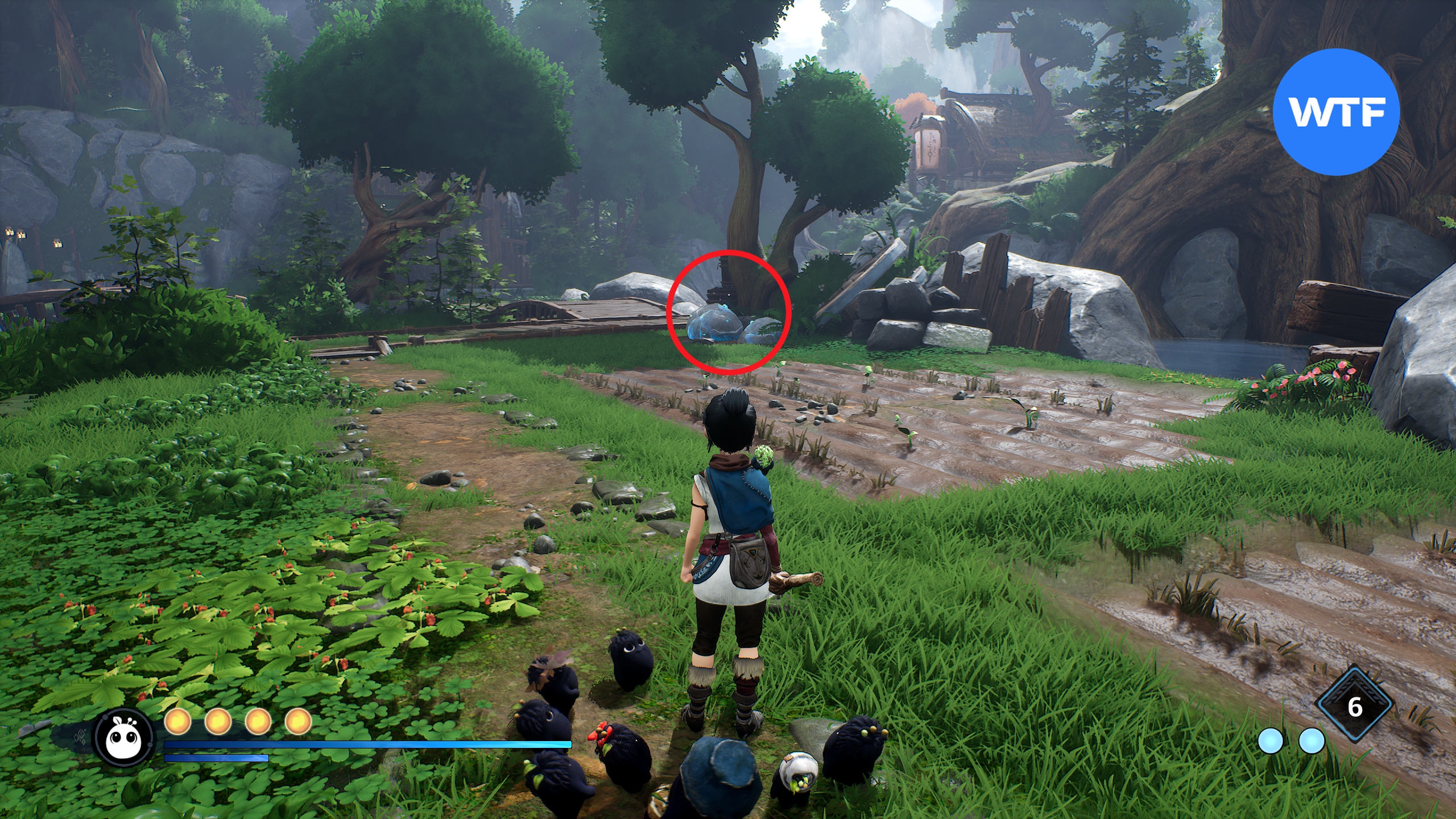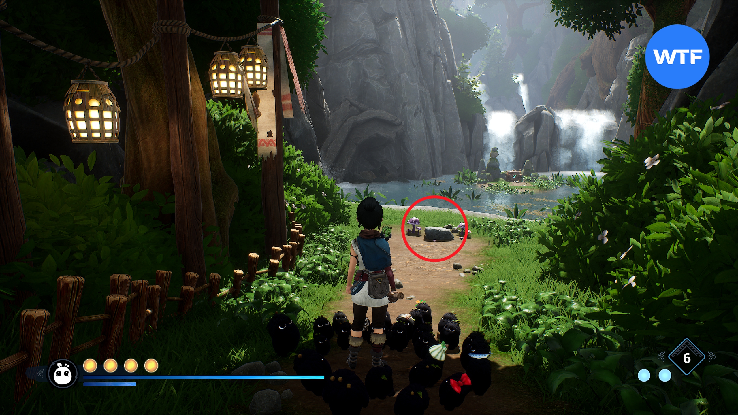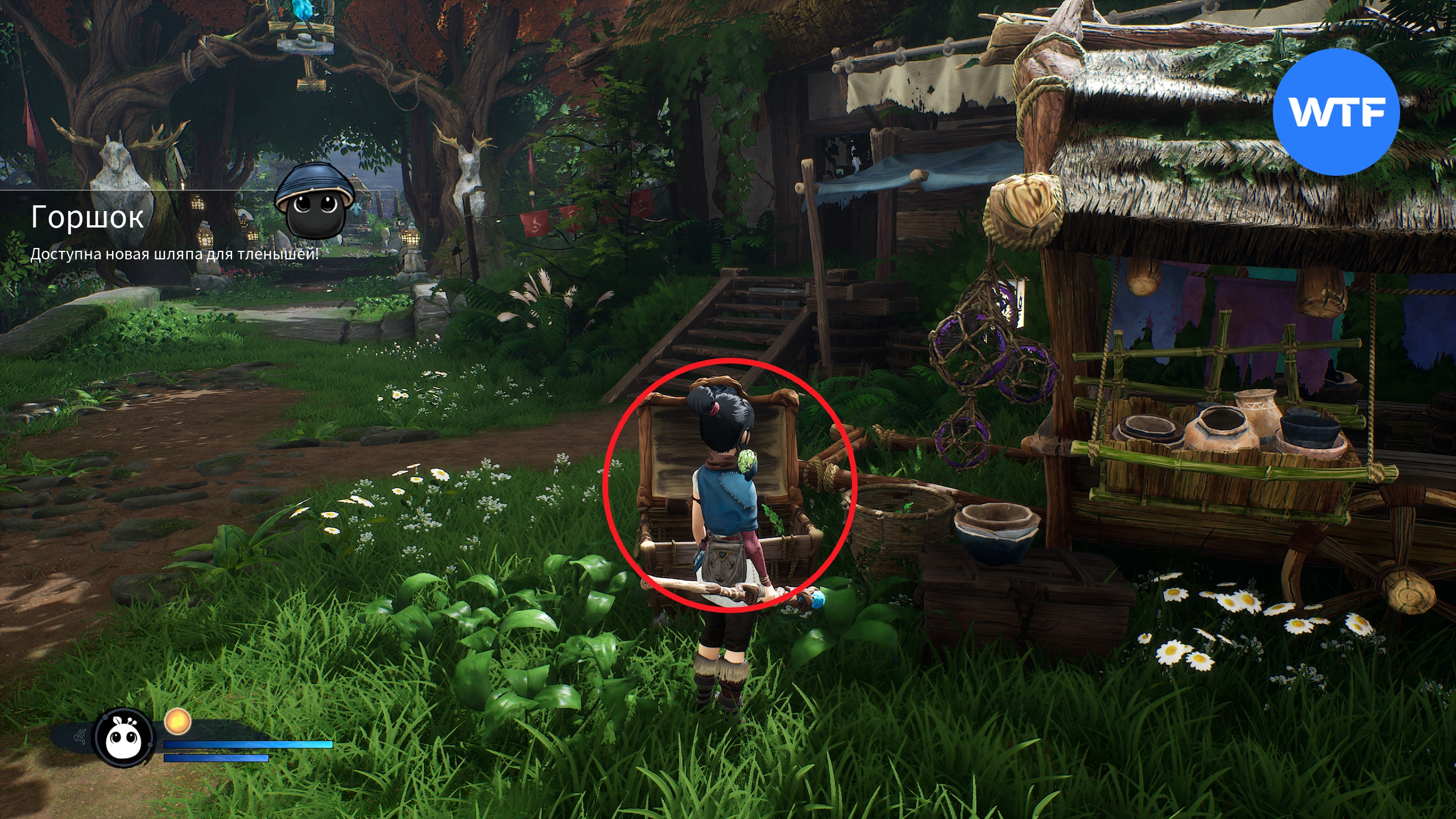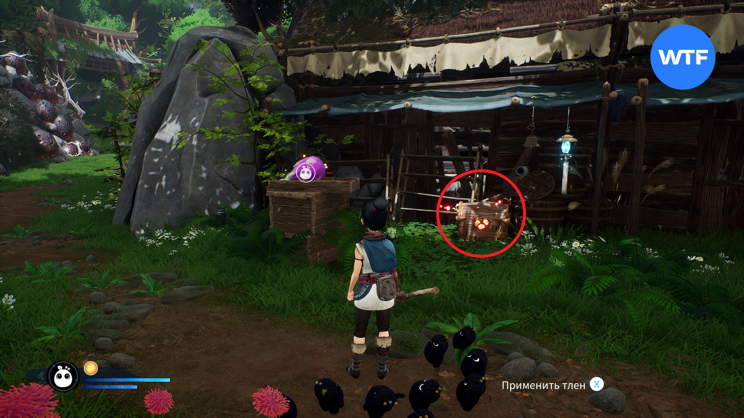 Вернитесь на главную площадь Деревни и идите в сторону алтаря с масками. Перед алтарем поверните направо к пруду. Тленыш прячется под камнем (см. скриншот 2).