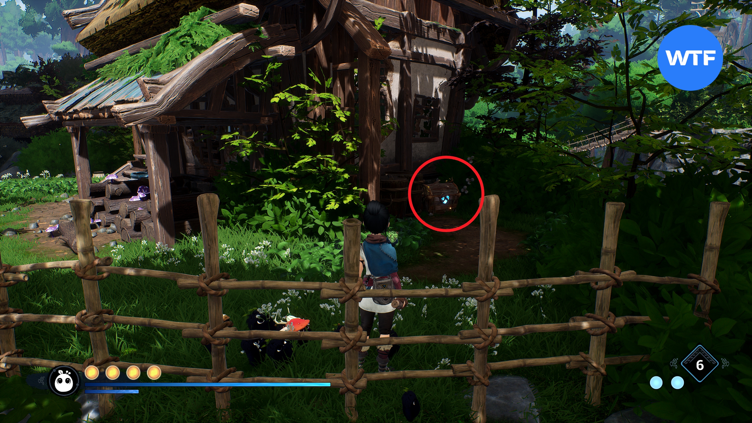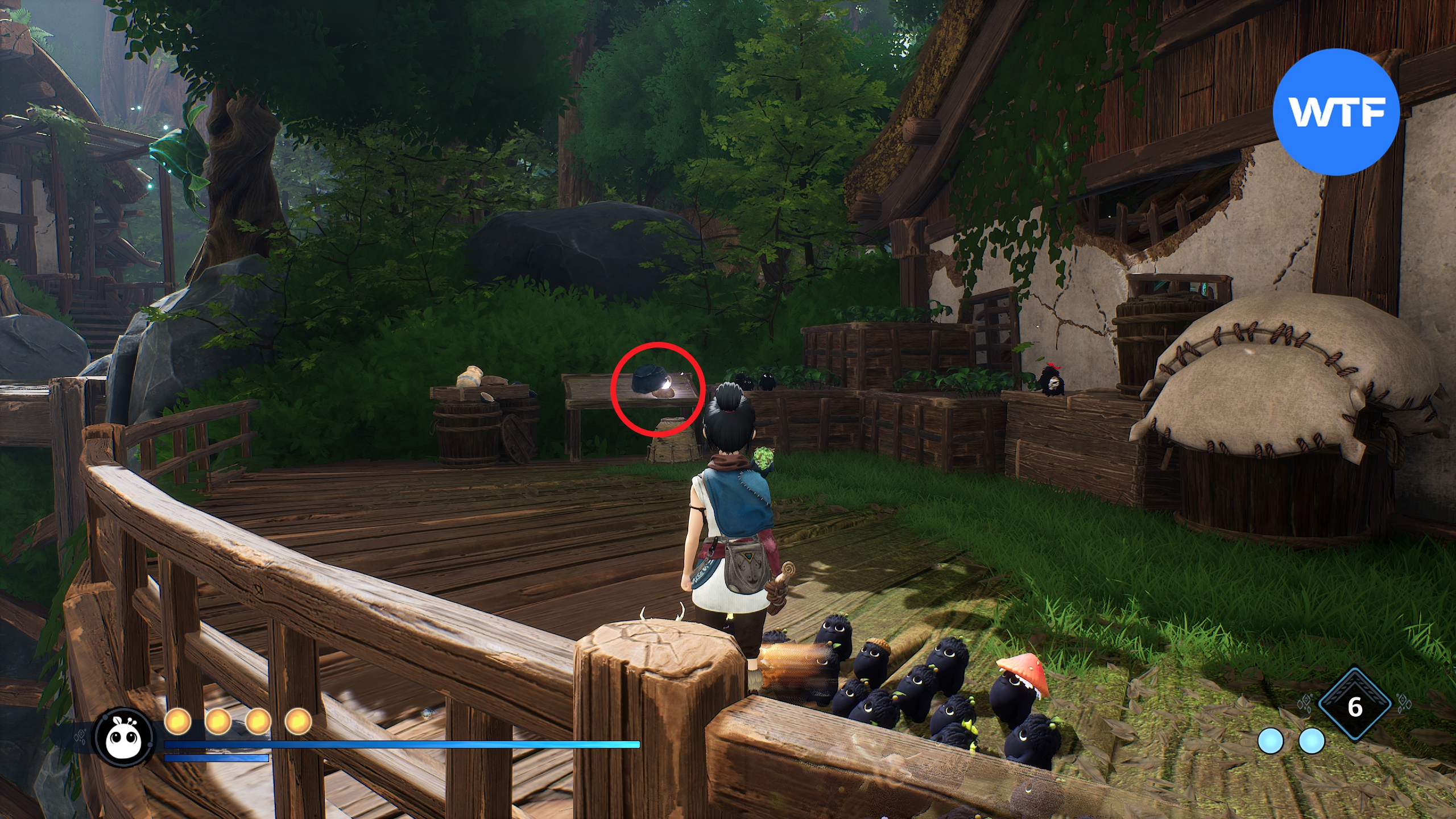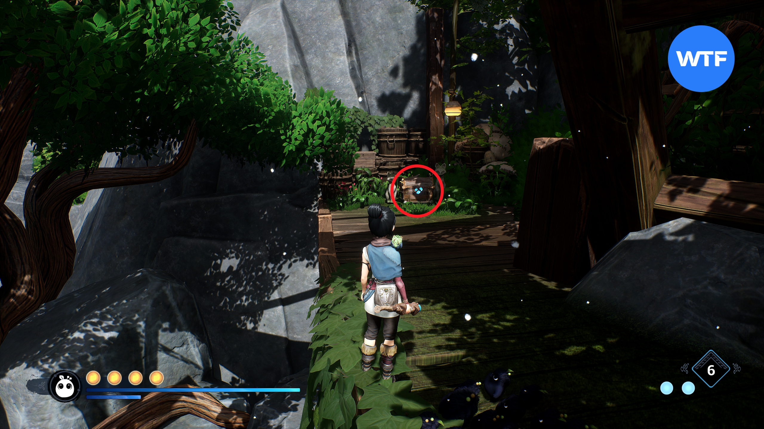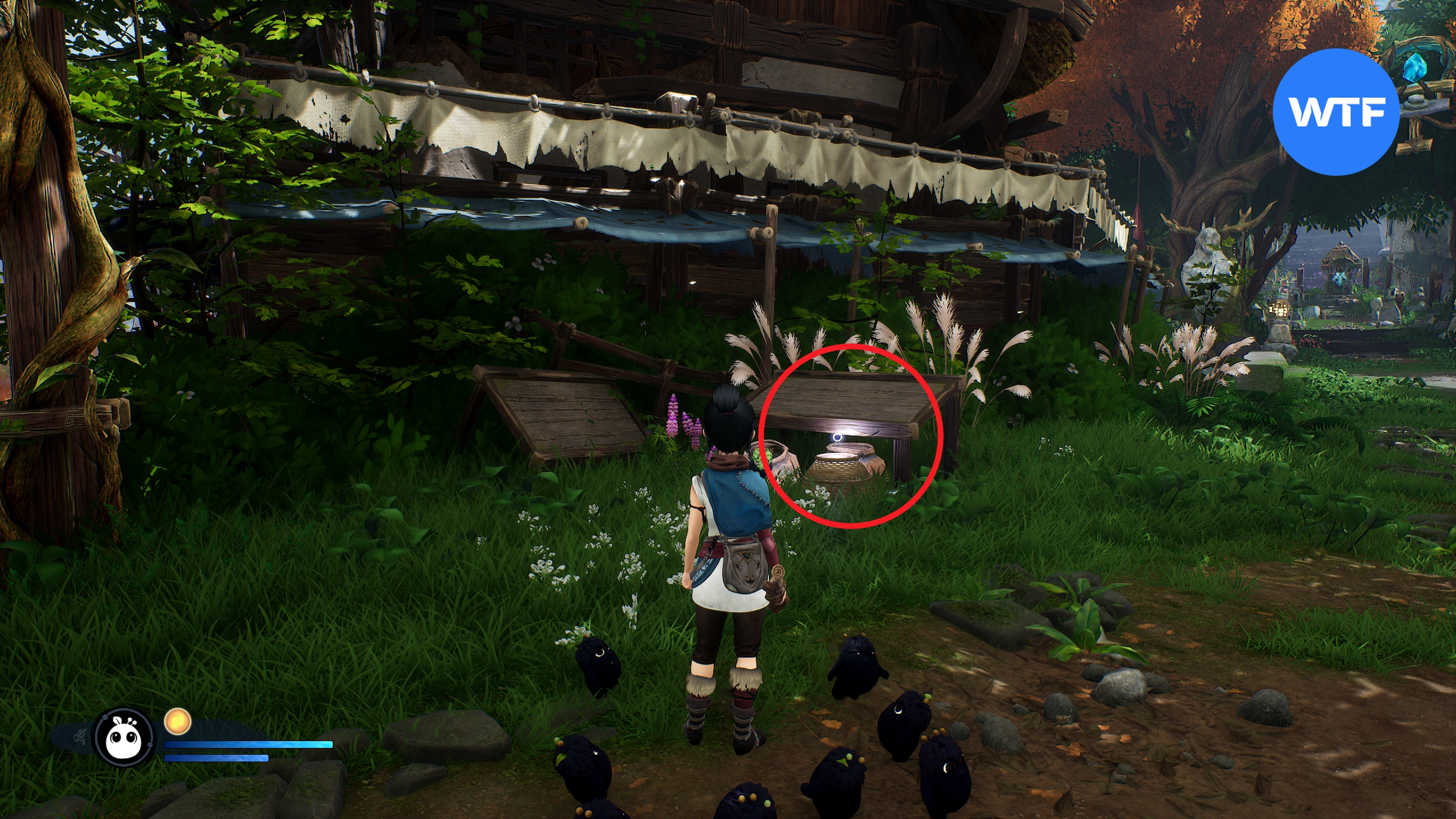 Возле платформы с совами есть область, открывающаяся при помощи почты духов. Разберитесь с врагами, а затем стреляйте в синий цветок на круглой платформе в центре. Прямо под ним к столбику привязано ведро с этим тленышем.