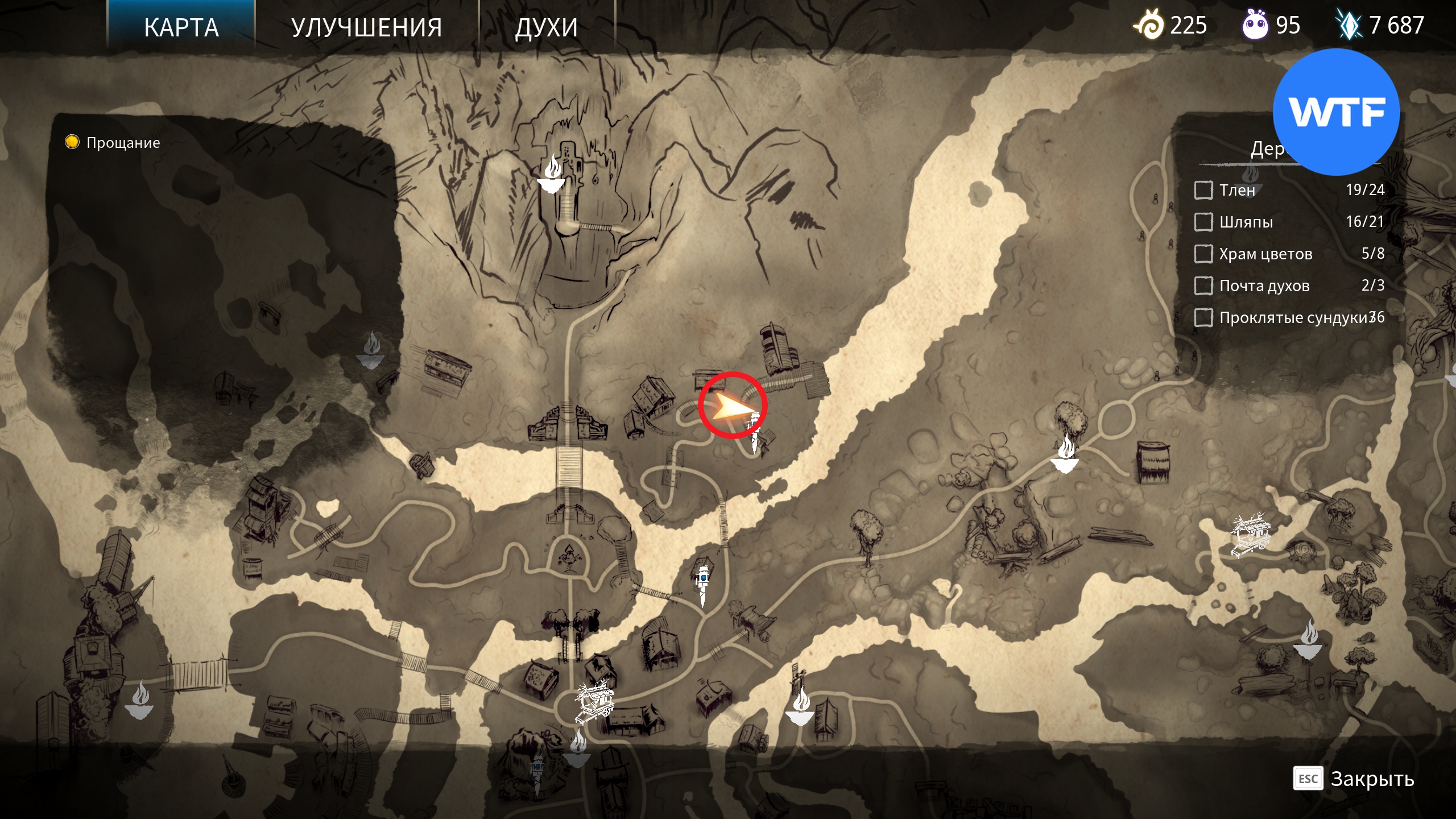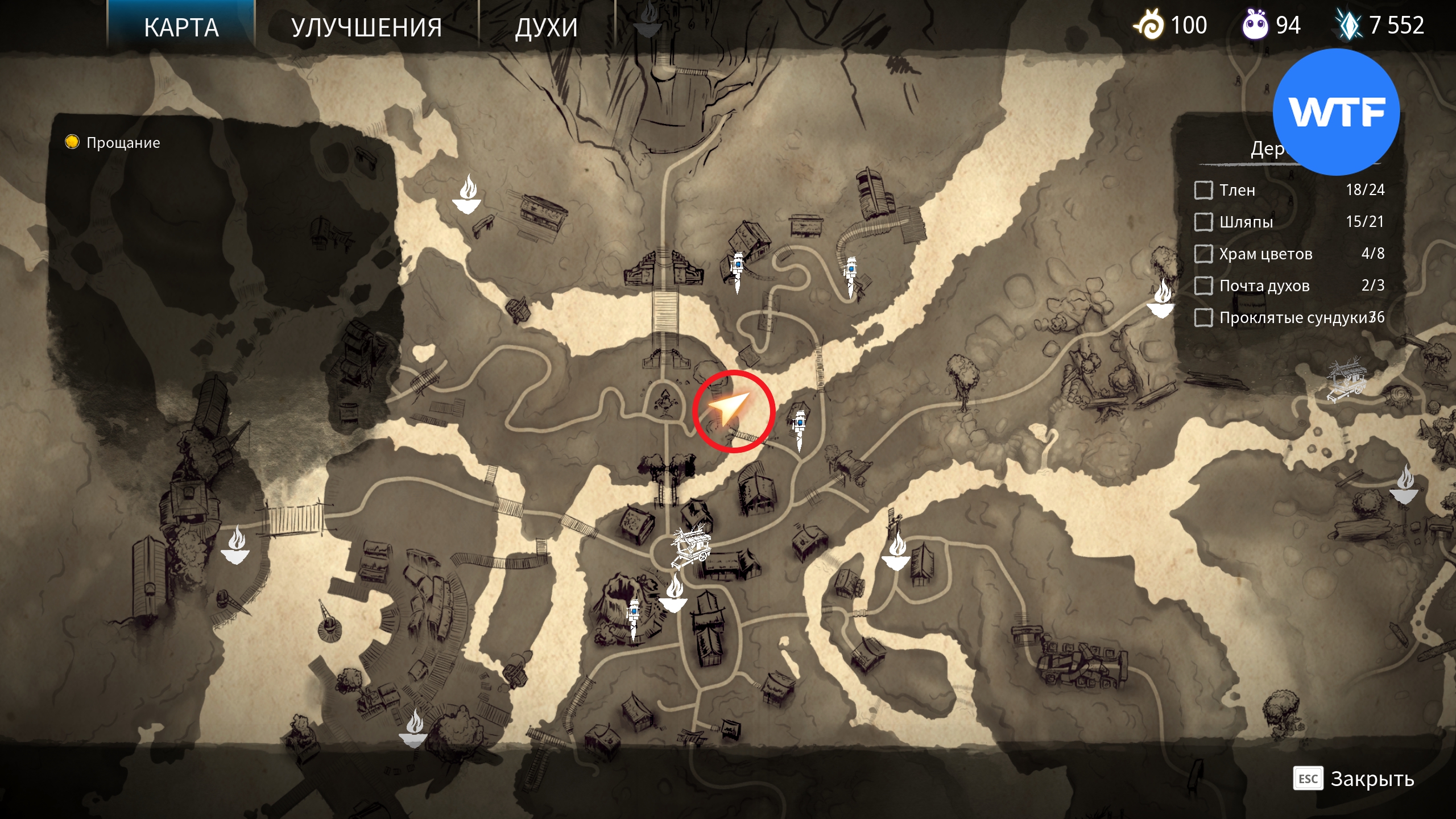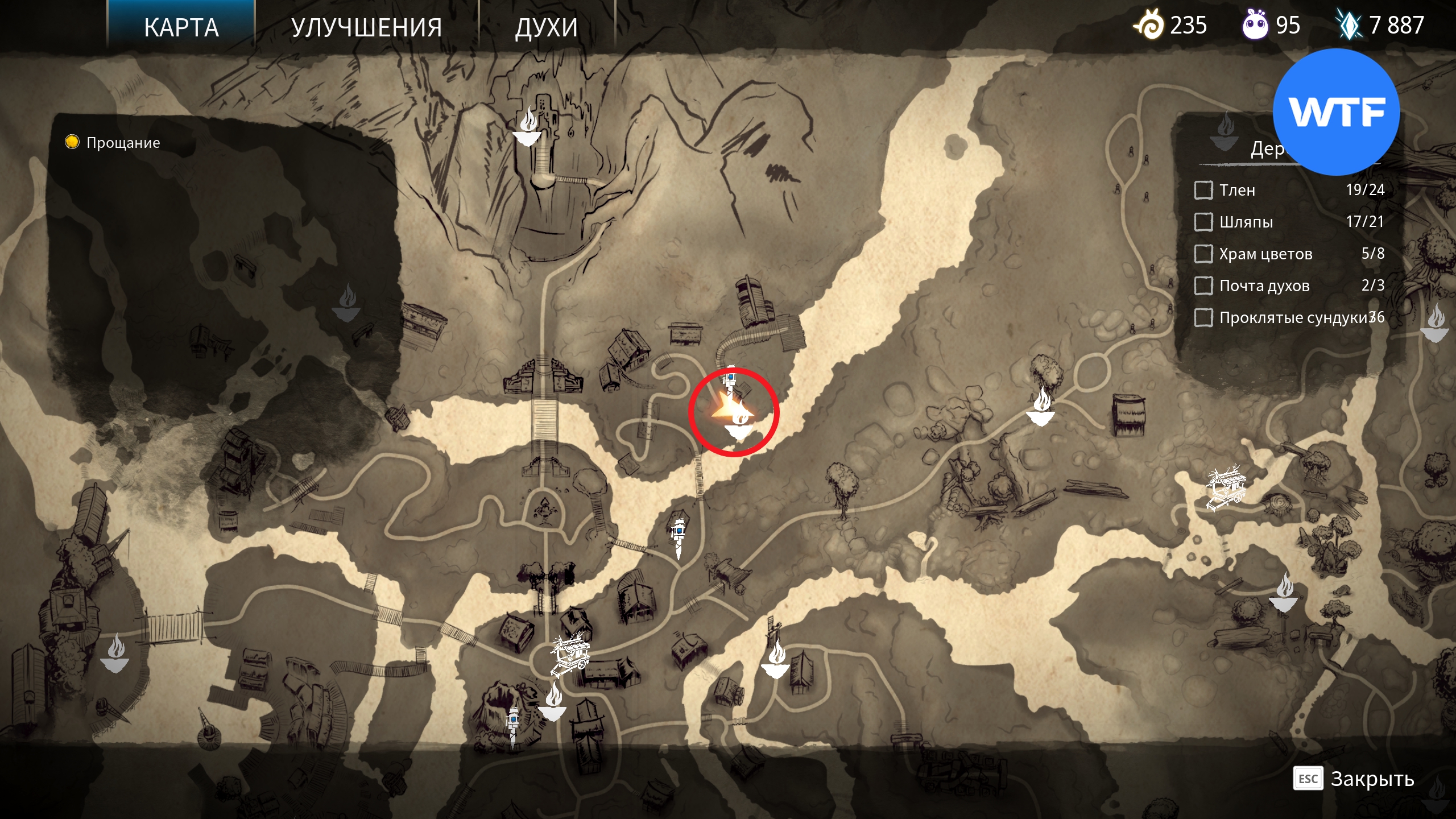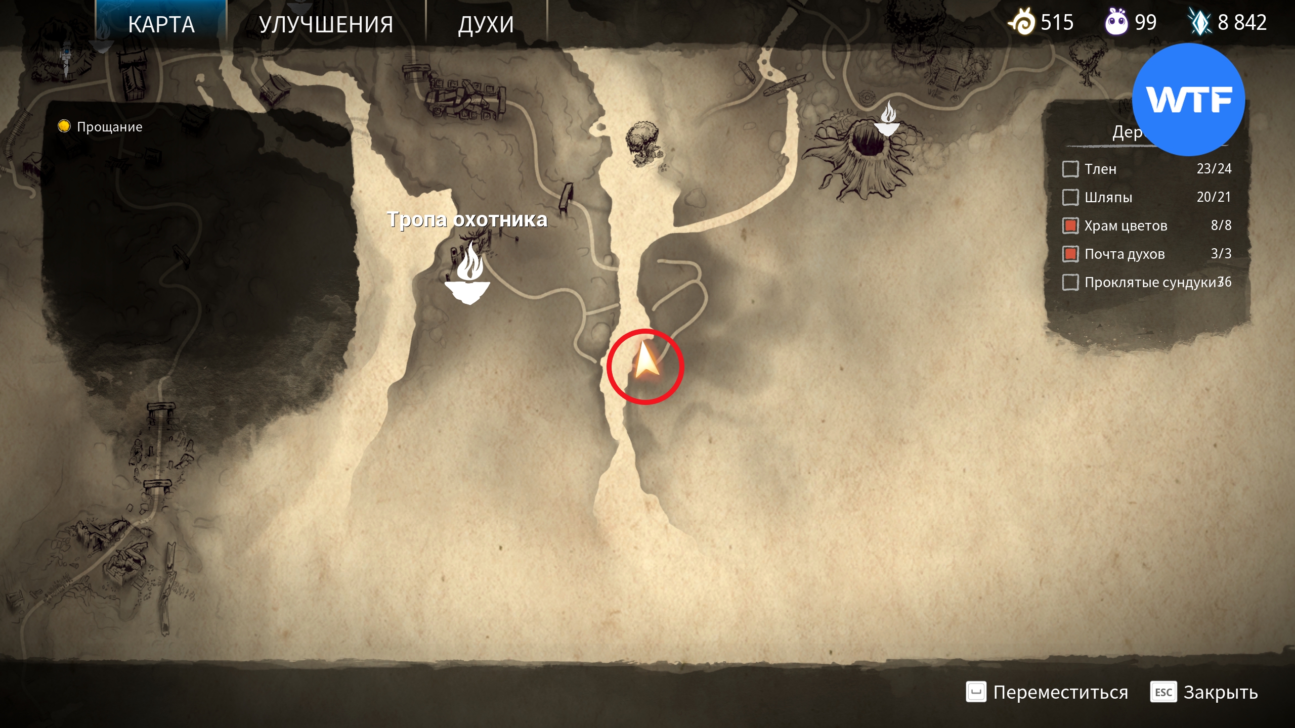 Вернитесь в «Центр деревни» и идите к единственной оставшейся метке почты духов. Очистив область от порчи, вы окажетесь прямо перед тремя проклятыми сундуками.