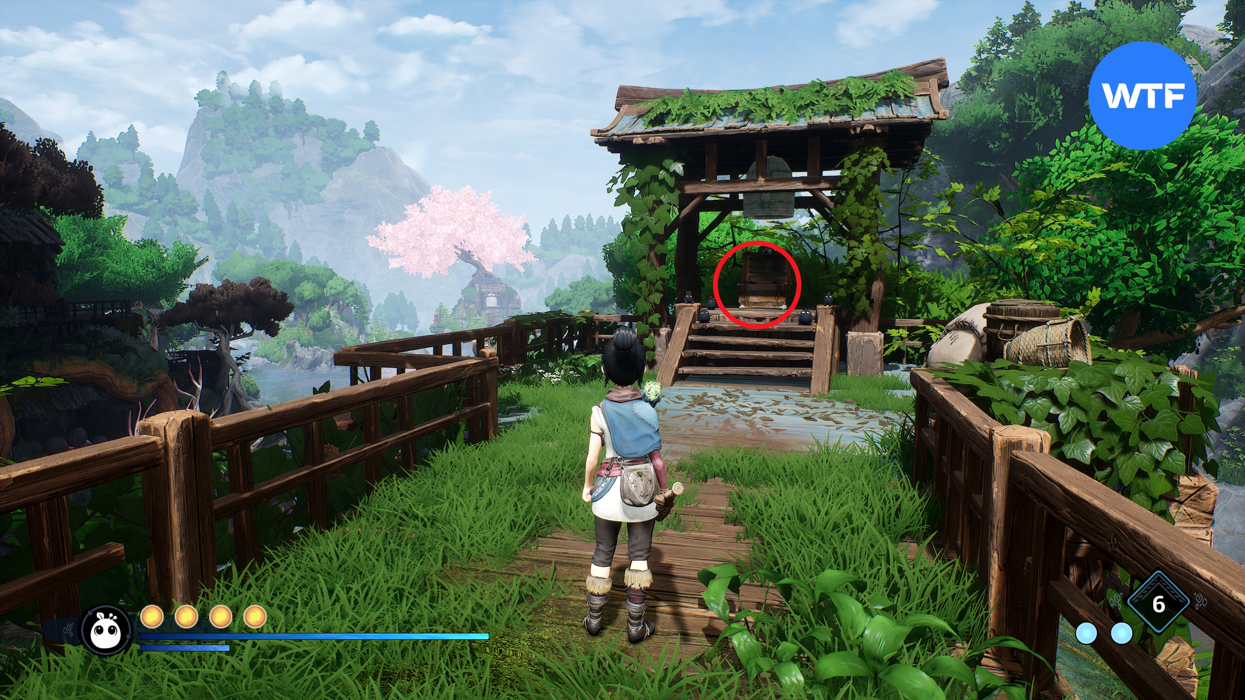 От предыдущей точки идите по деревянном мостику налево, чтобы найти Лесную слезу. Она появляется, когда вы разберетесь с врагами в полях. Используйте её, чтобы очистить храм цветов со скриншота ниже.