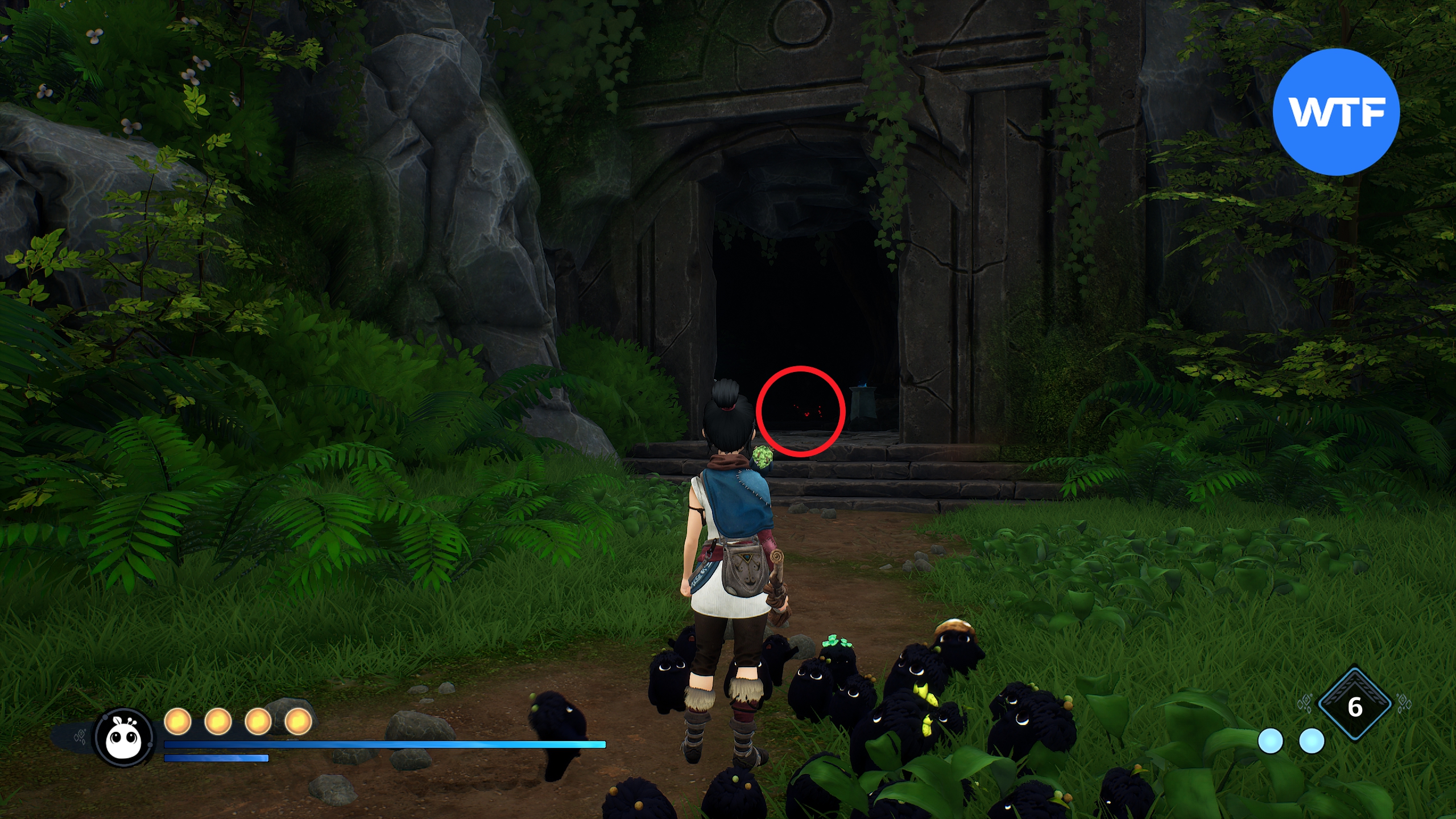 В предыдущем доме есть сюжетный предмет, с которым вы можете взаимодействовать. Наденьте маску, чтобы открыть воспоминание. После этого возле вас появится Лесная слеза. Используйте её, чтобы очистить храм цветов по лестнице вниз и направо.