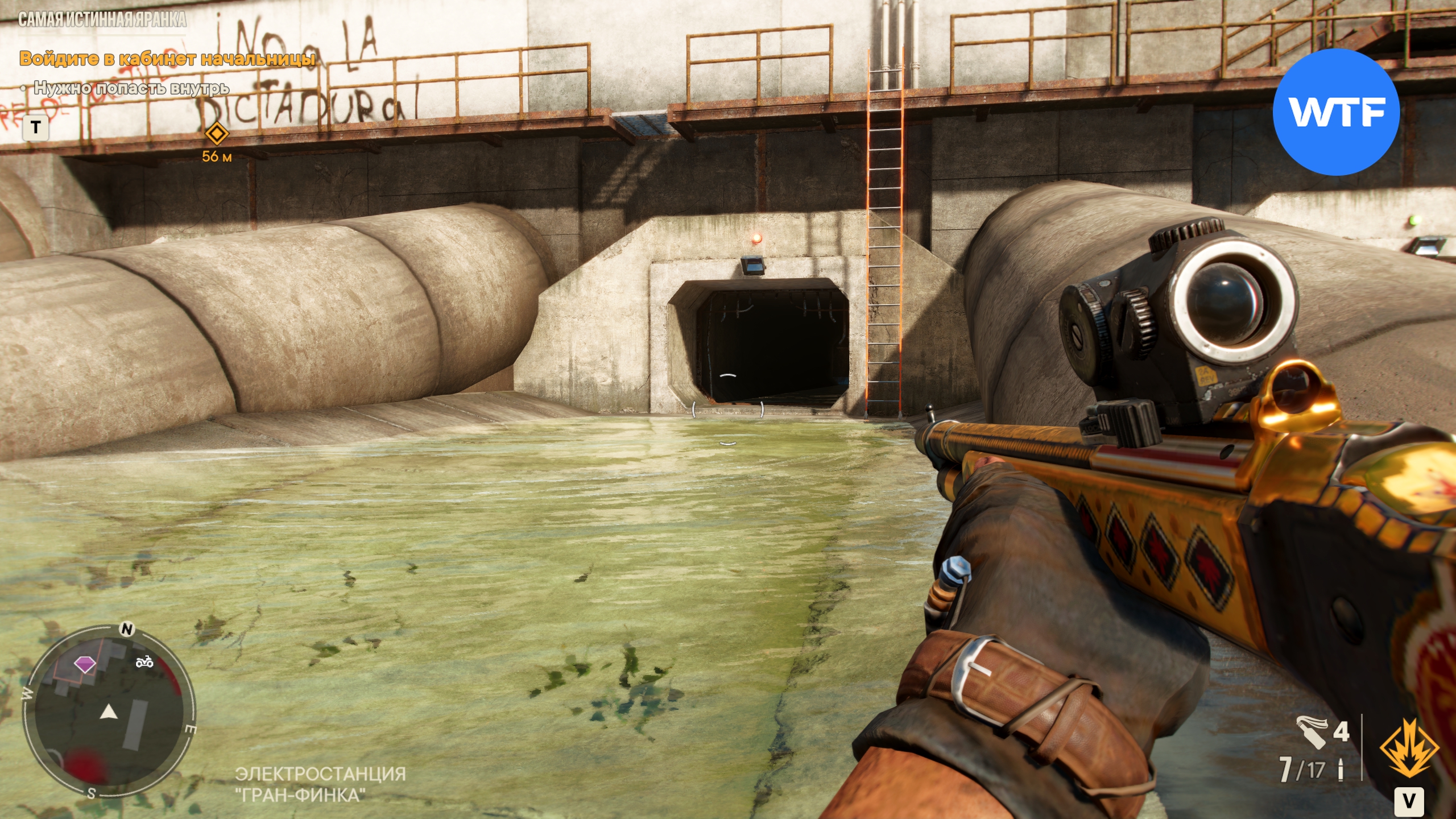 Внутри поднимитесь наверх и прочитайте записку о засорившихся трубах в комнате управления. Под этой комнатой можно занырнуть в воду и добраться до трубы со скриншота ниже. Используйте мачете, чтобы устранить засор.