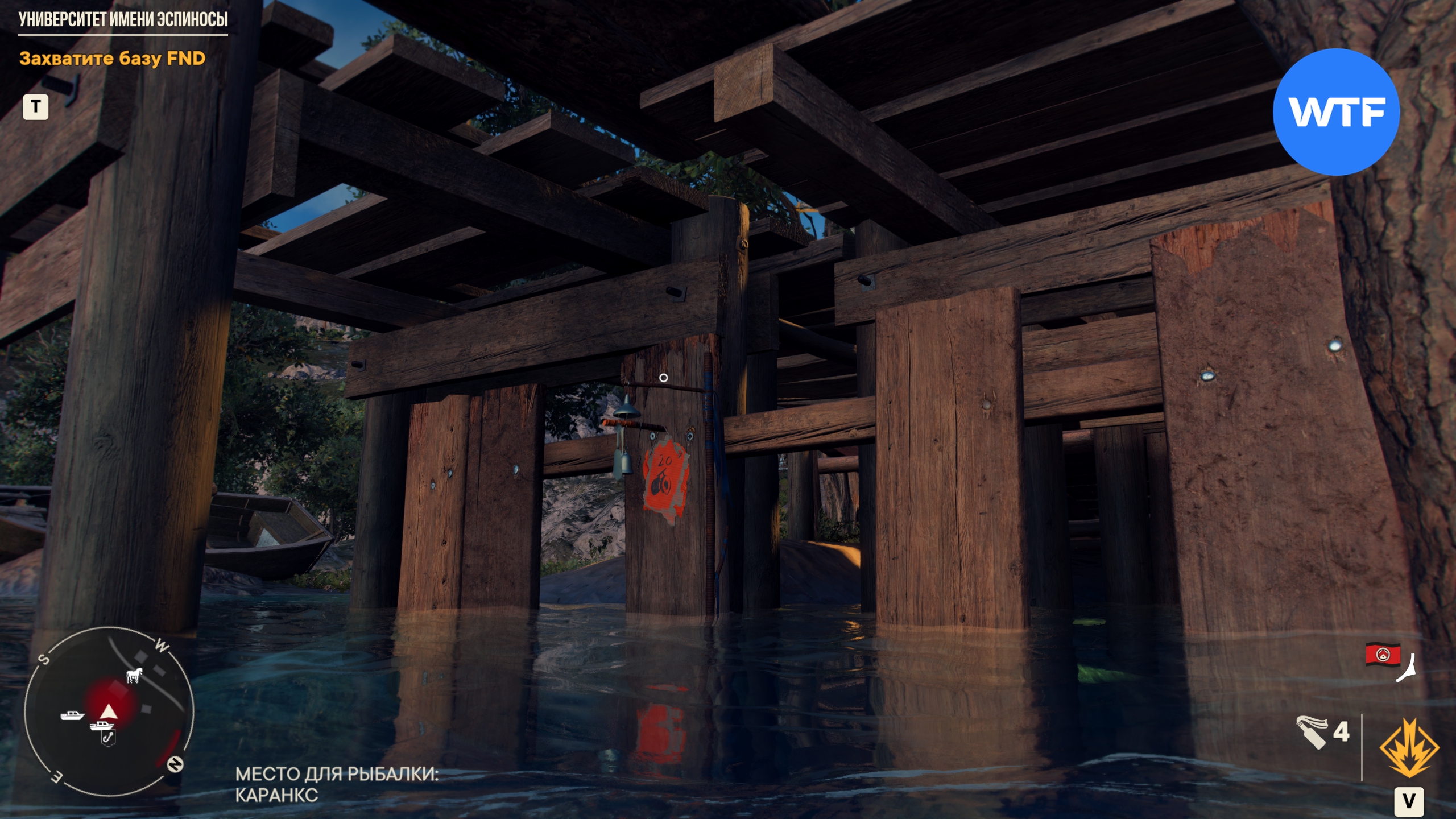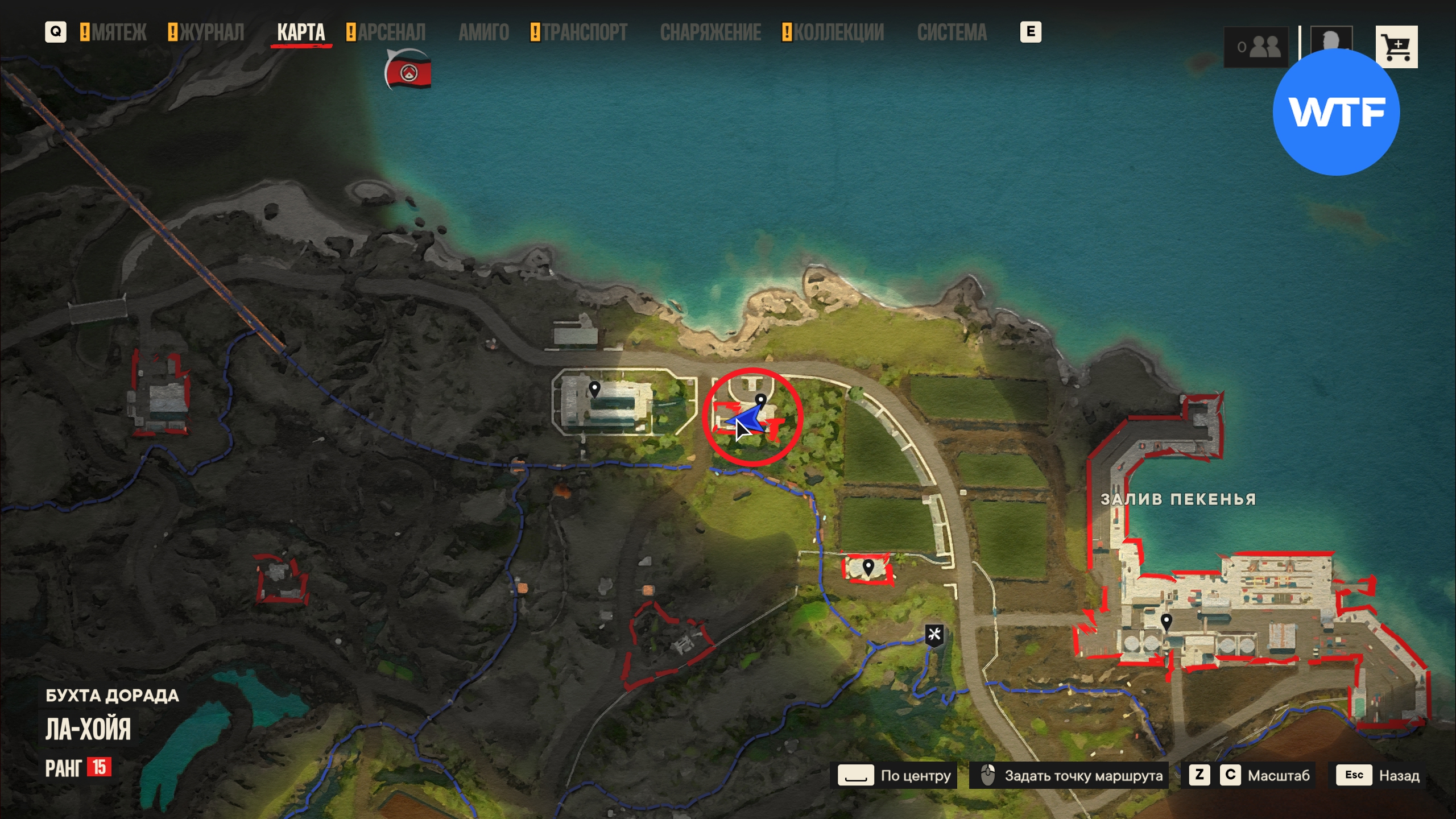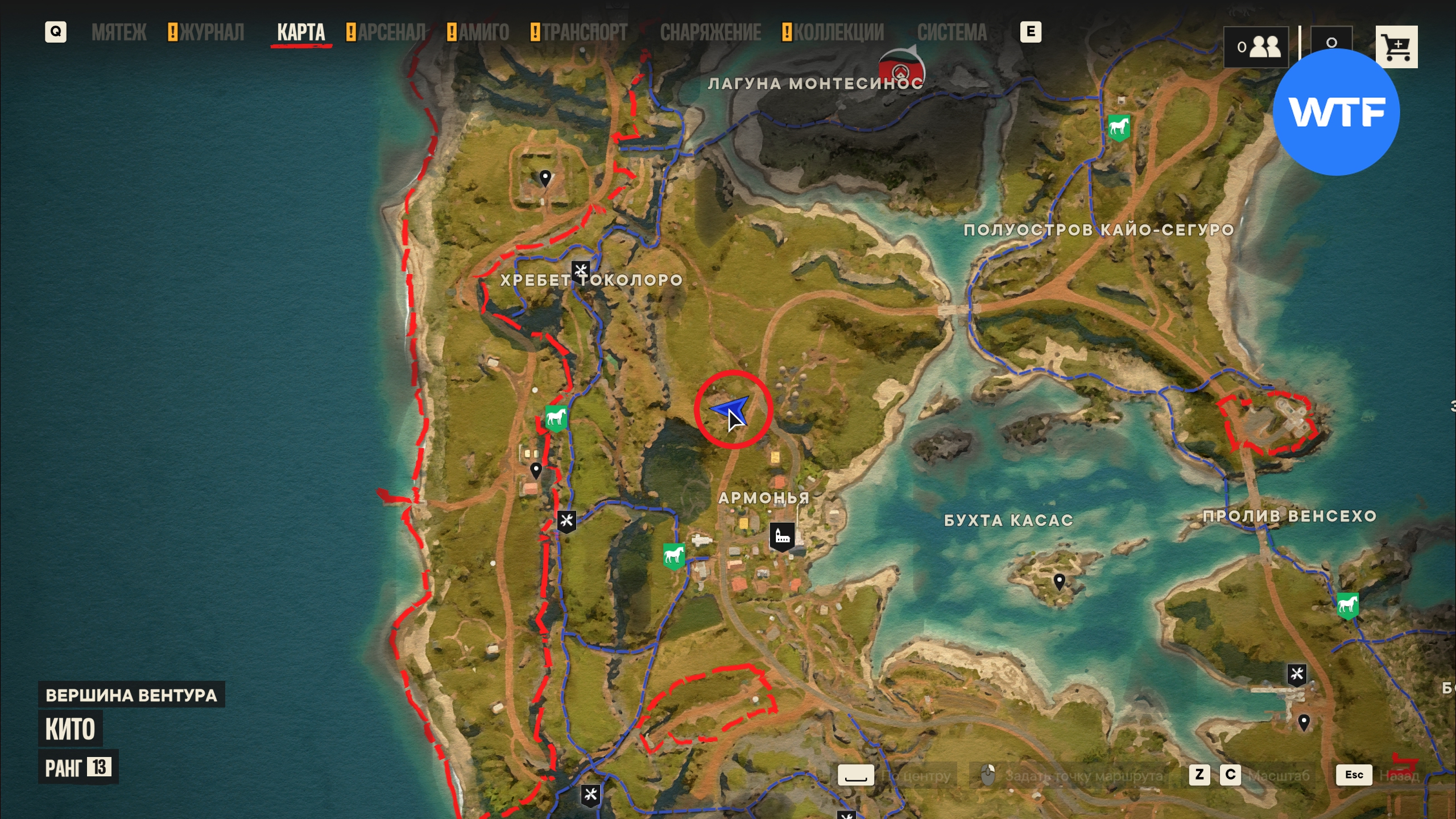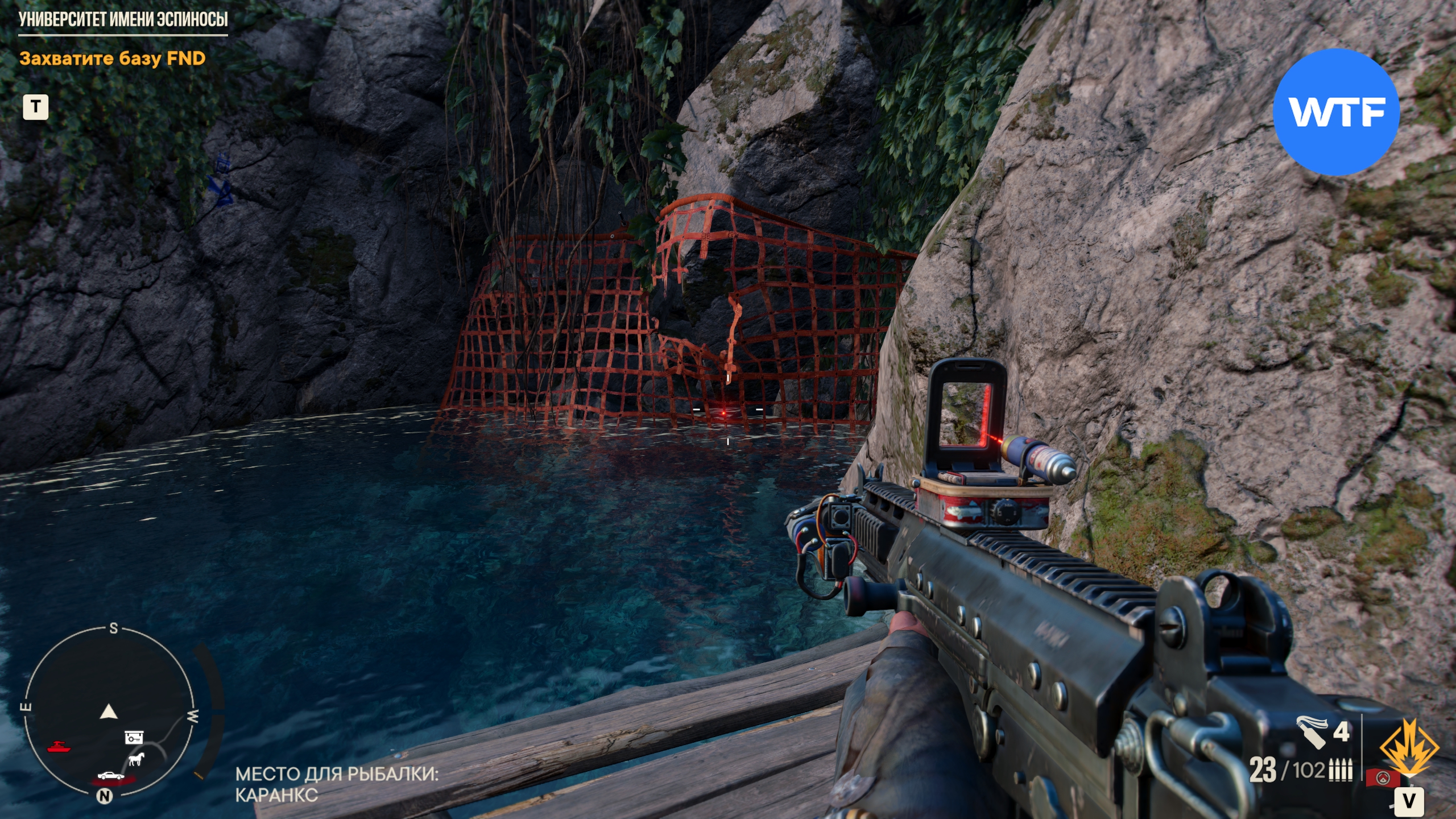 Криптограмма #20 (сапота) приколота прямо под причалом. За криптограммой #17 (монета) нужно отправиться в ближайшую пещеру. От сундука развернитесь и идите по синей стрелке до оранжевых сетей (см. скриншот 2). Киньте в них Молотов и путь в пещеру будет открыт.