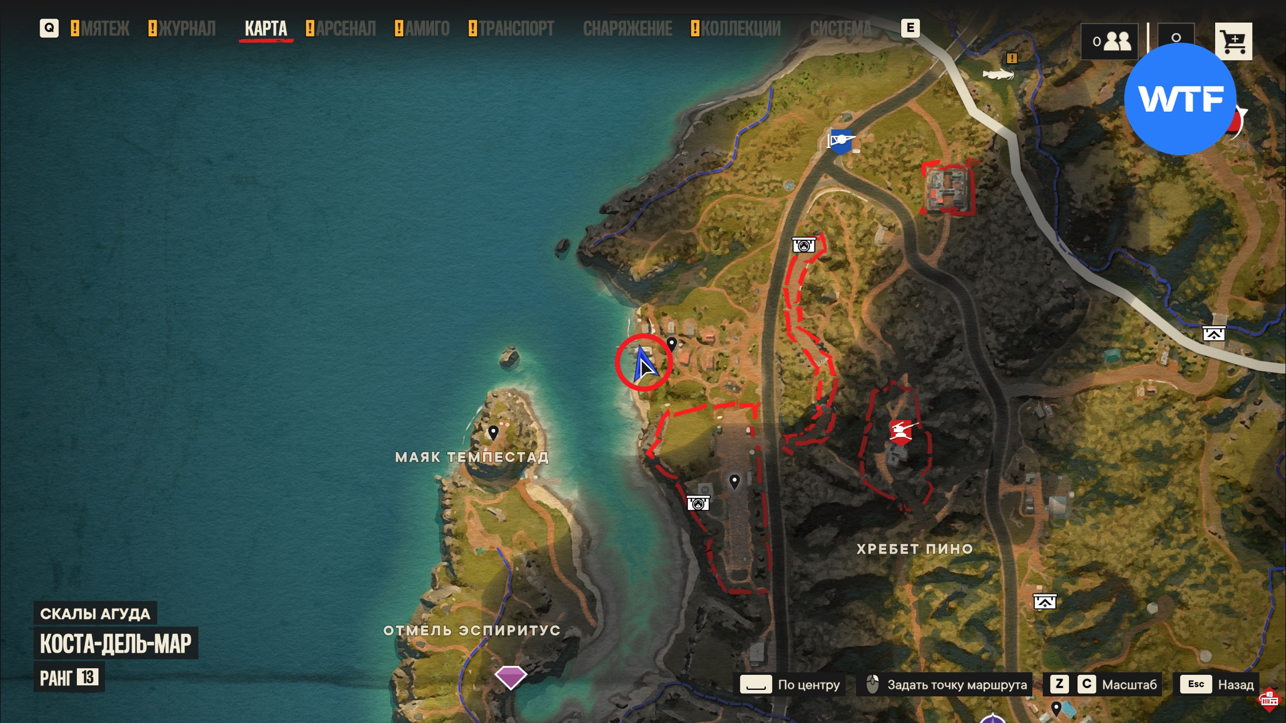 Криптограммы #10 (петух) и #25 (yara libre) приколоты к скалам в точках, показанных на скриншоте ниже. Сначала плывите к скалам прямо напротив сундука, а затем следуйте по синим указателям к скалам мимо маяка, пока не увидите место, где можно использовать крюк-кошку.