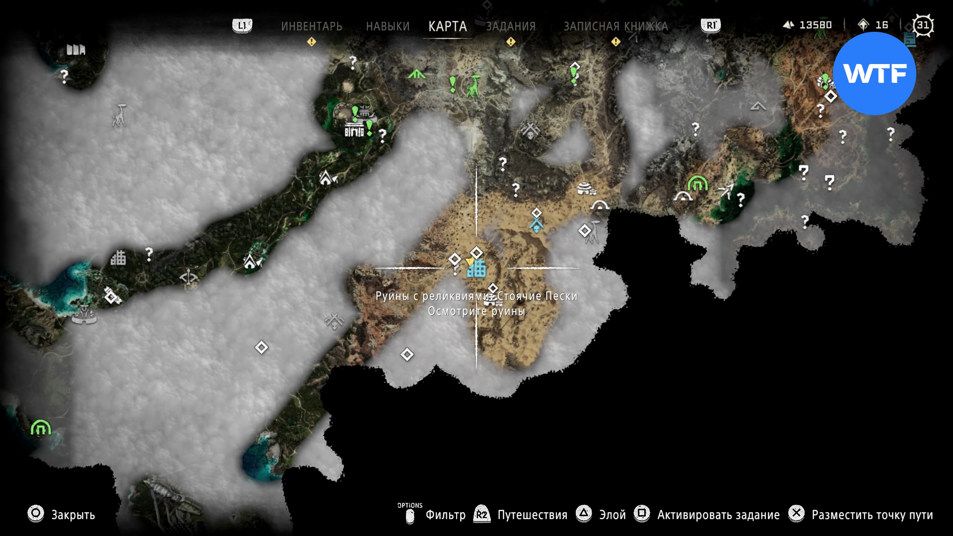 Внимание! Для прохождения некоторых руин вам понадобятся запал, щит-крыло и стеблерез. Если этого снаряжения у вас еще нет, значит вы недостаточно продвинулись по сюжету.