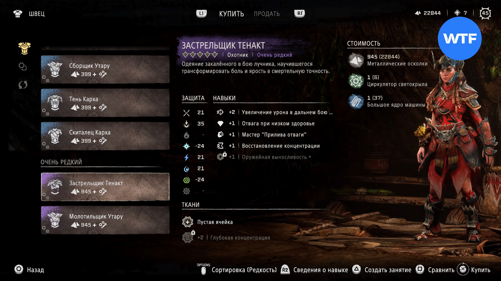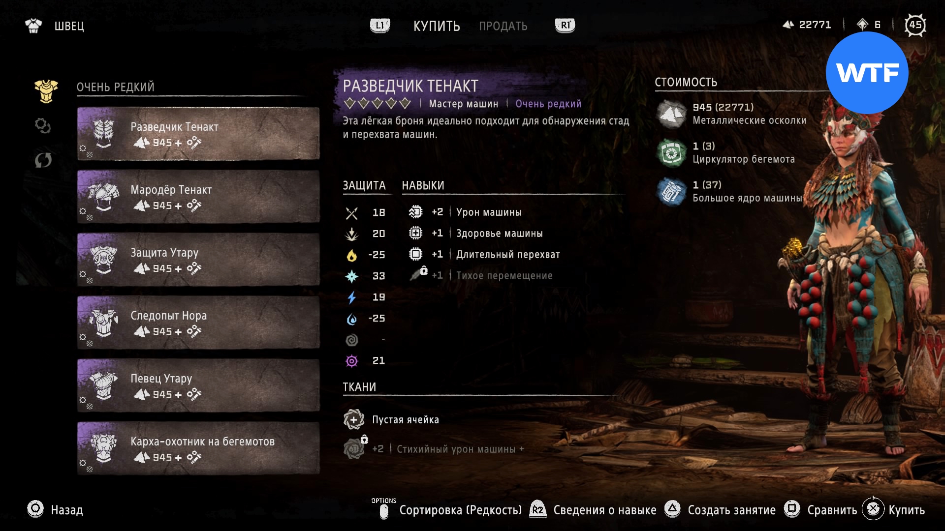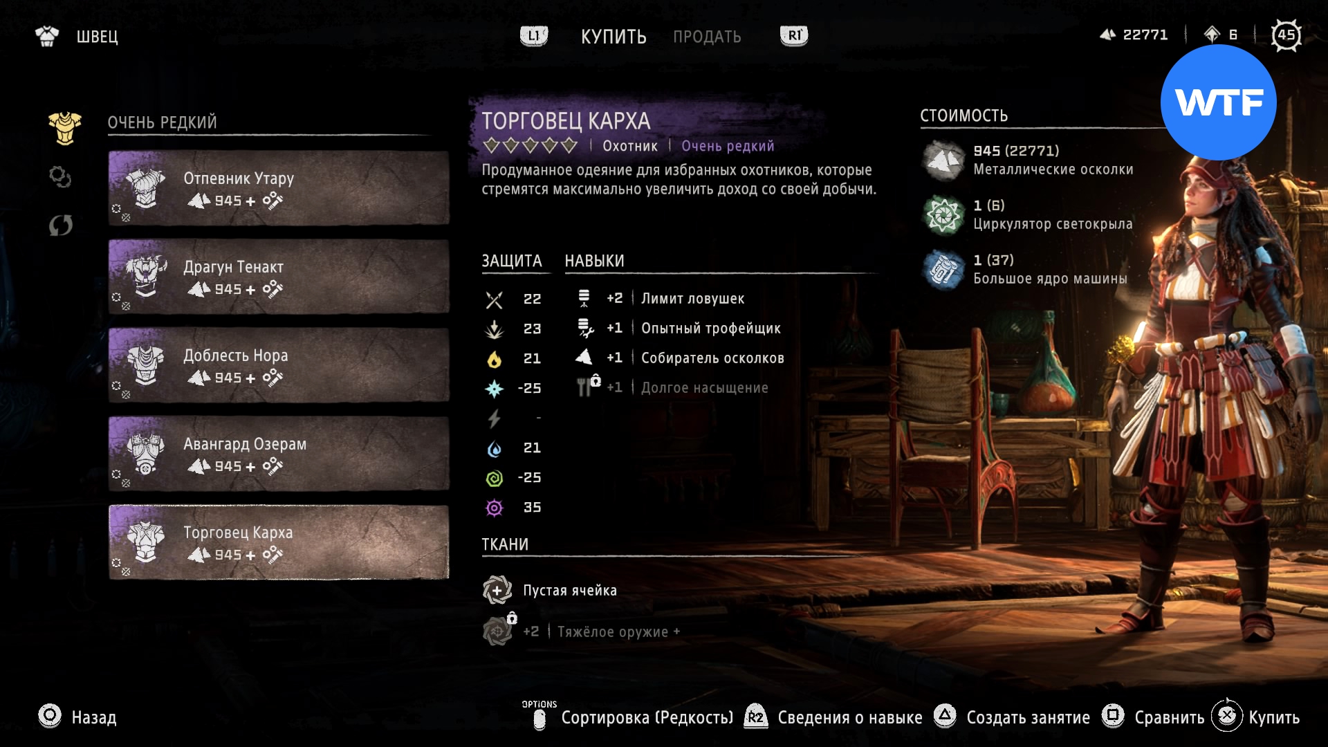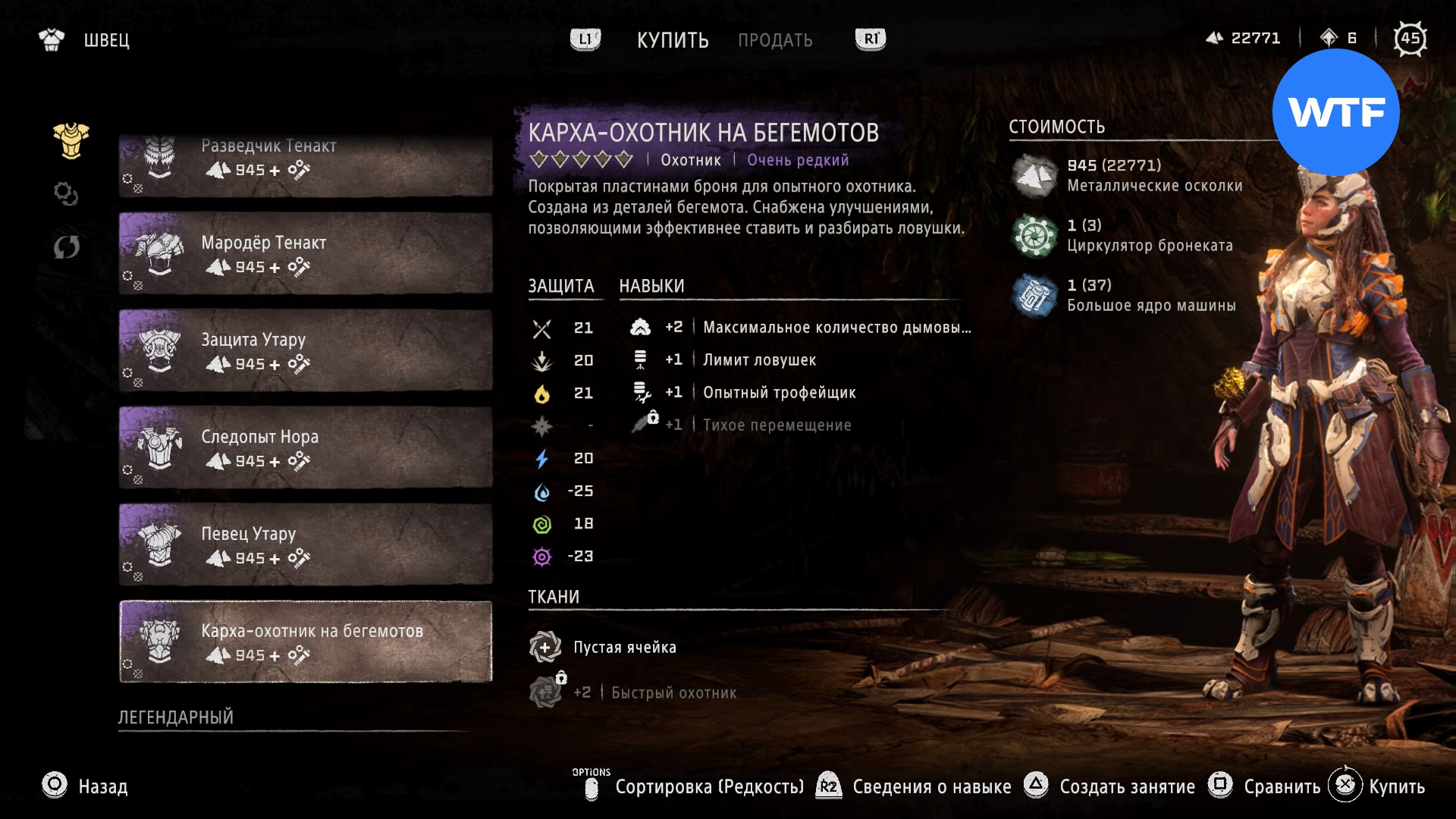 Где найти: покупается у Швеца в Причале Наследия или у охотника рядом с западным входом на Базу за 945 металлических осколков, 1 циркулятор зубоскала и 1 большое ядро машины.