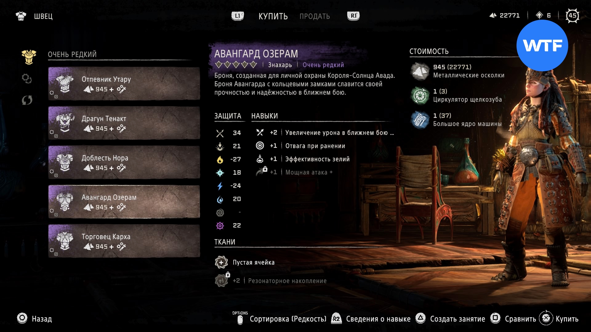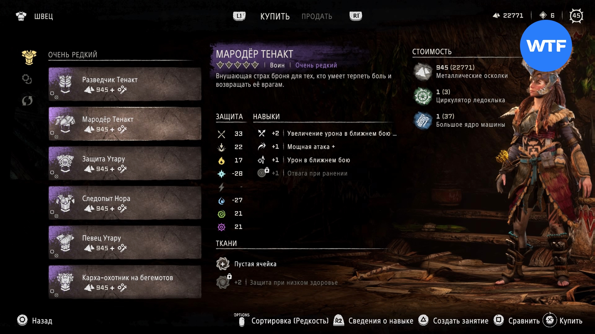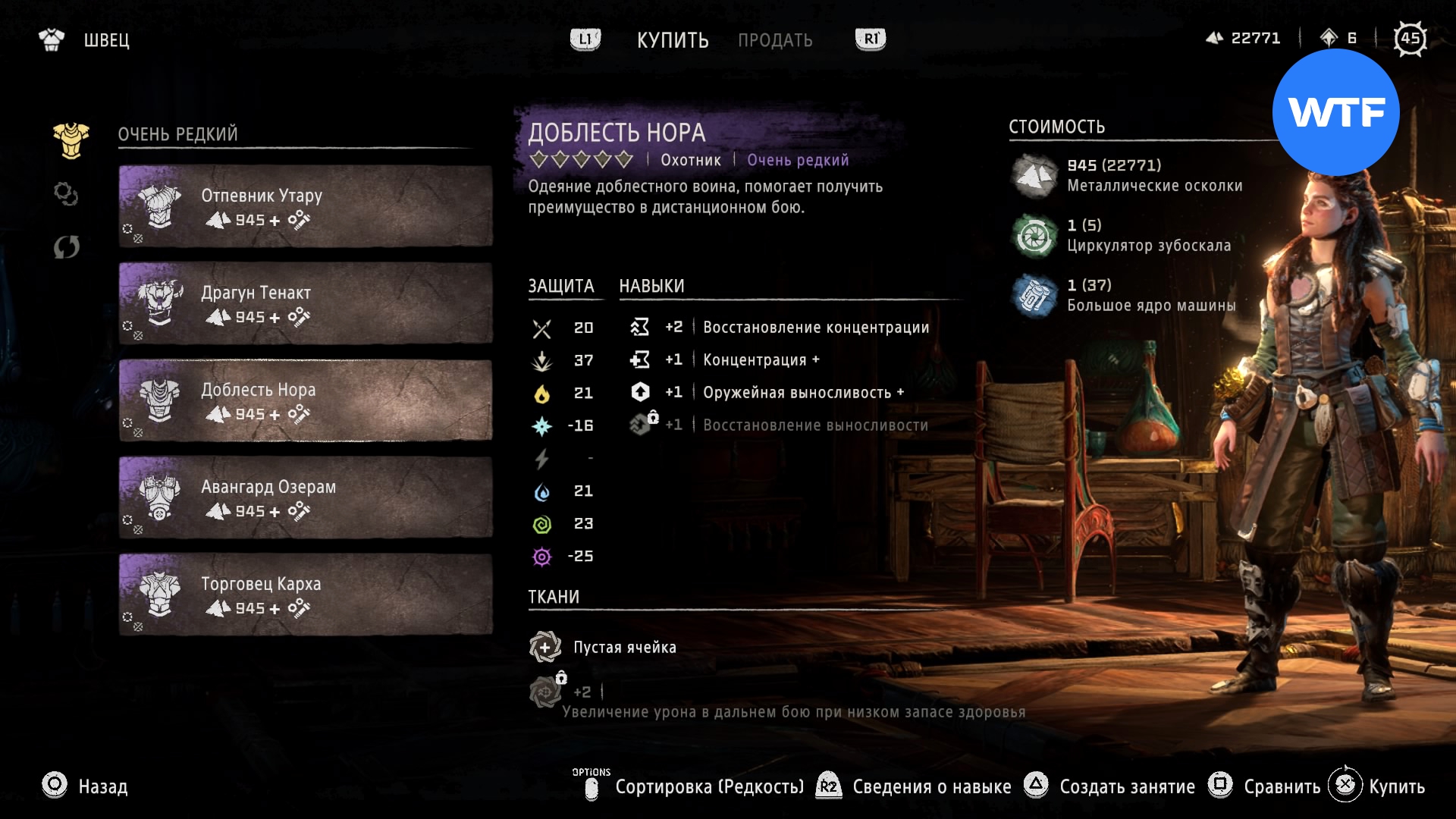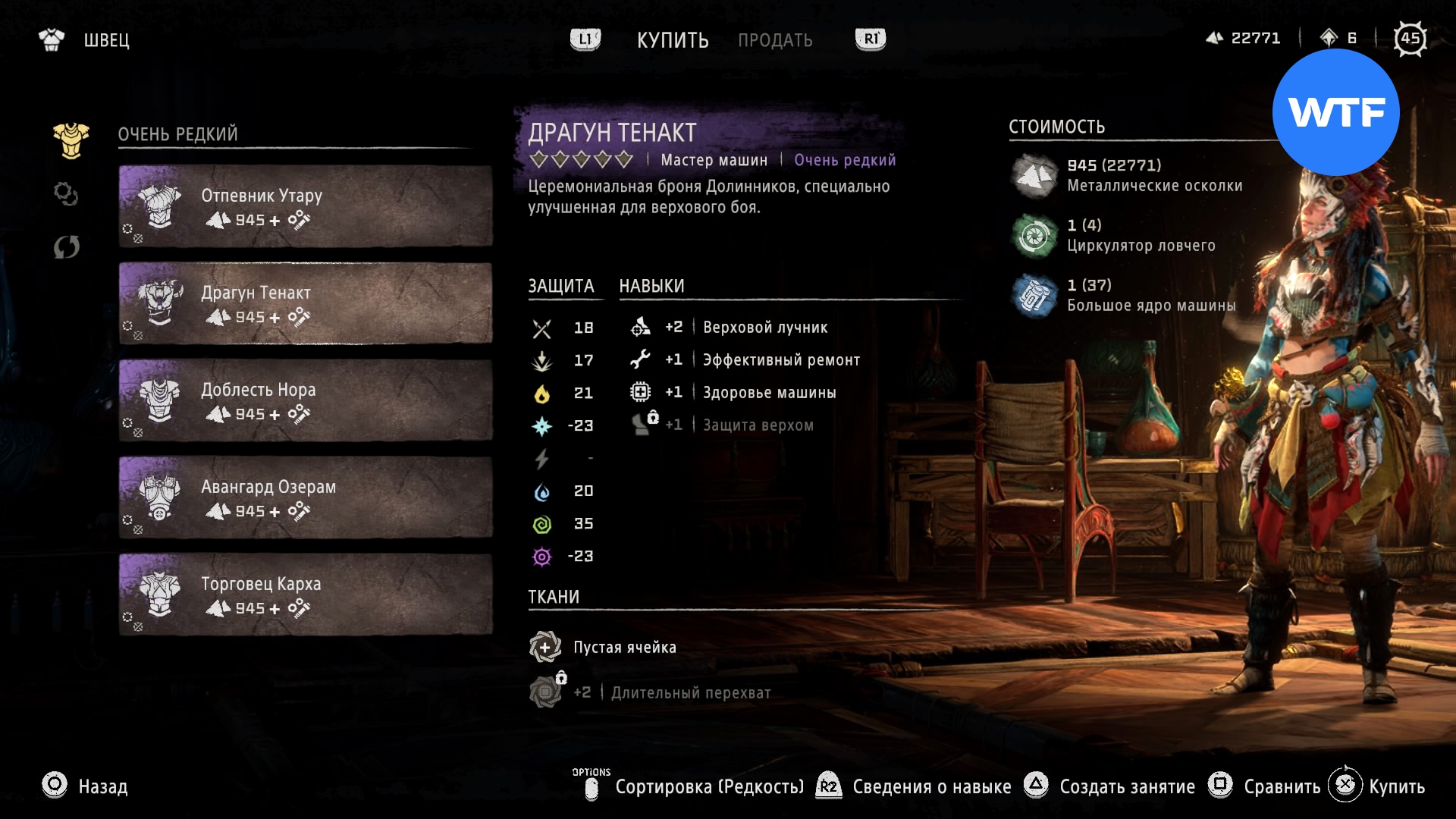 Где найти: покупается у Швеца в Причале Наследия или у охотника рядом с западным входом на Базу за 945 металлических осколков, 1 циркулятор зубоскала и 1 большое ядро машины.