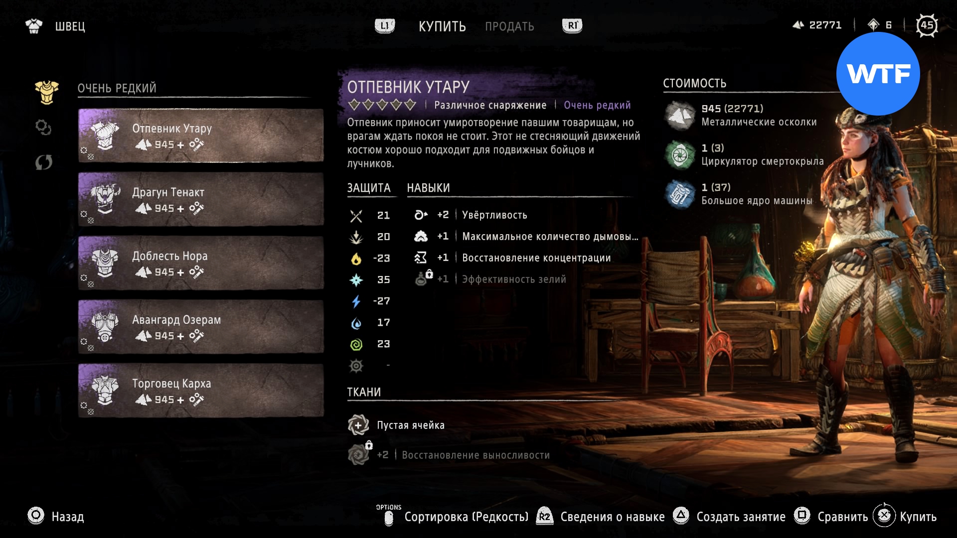 Где найти: покупается у Швеца в Колючей Топи или у охотника рядом с западным входом на Базу за 945 металлических осколков, 1 циркулятор смертокрыла и 1 большое ядро машины.