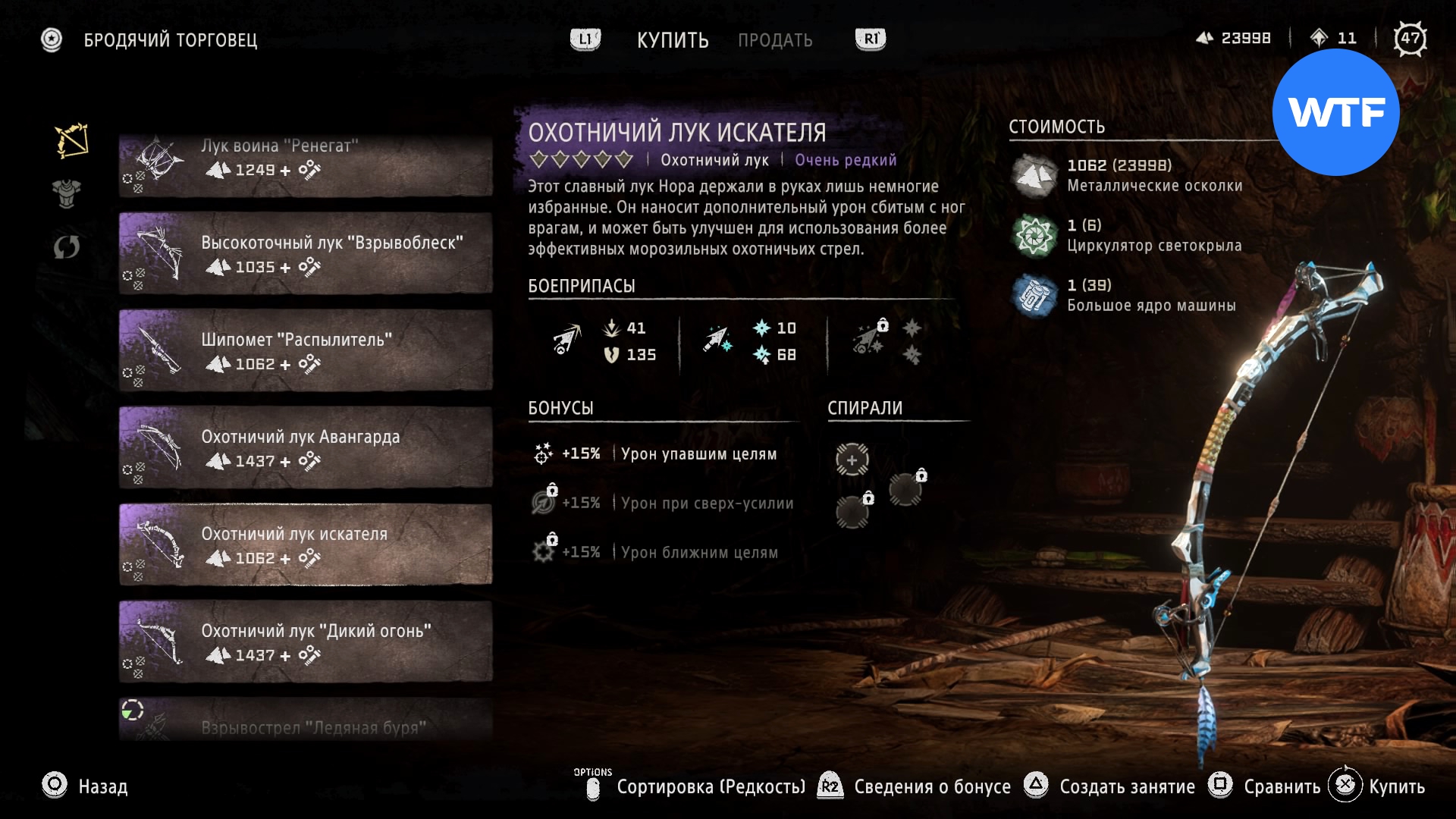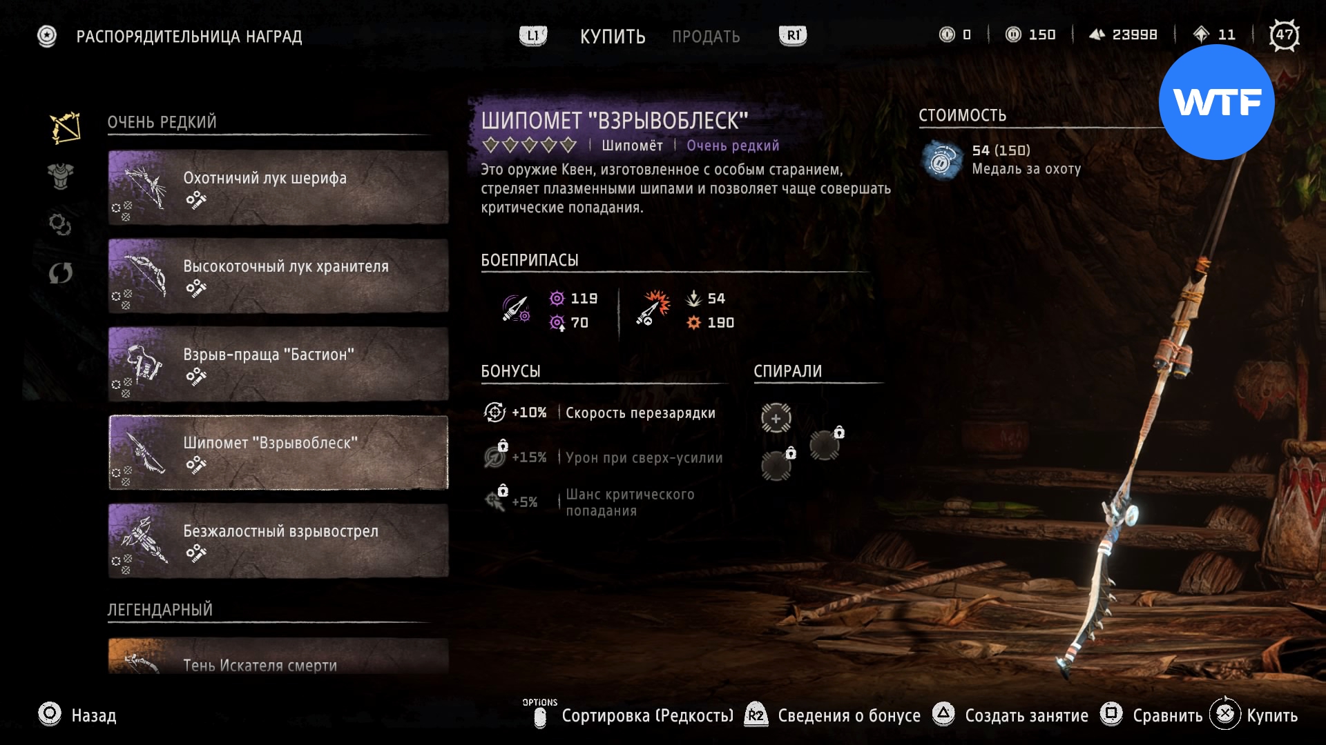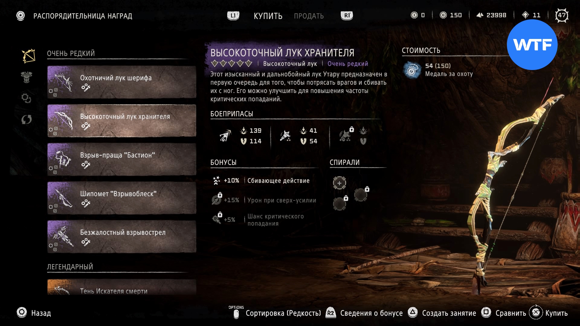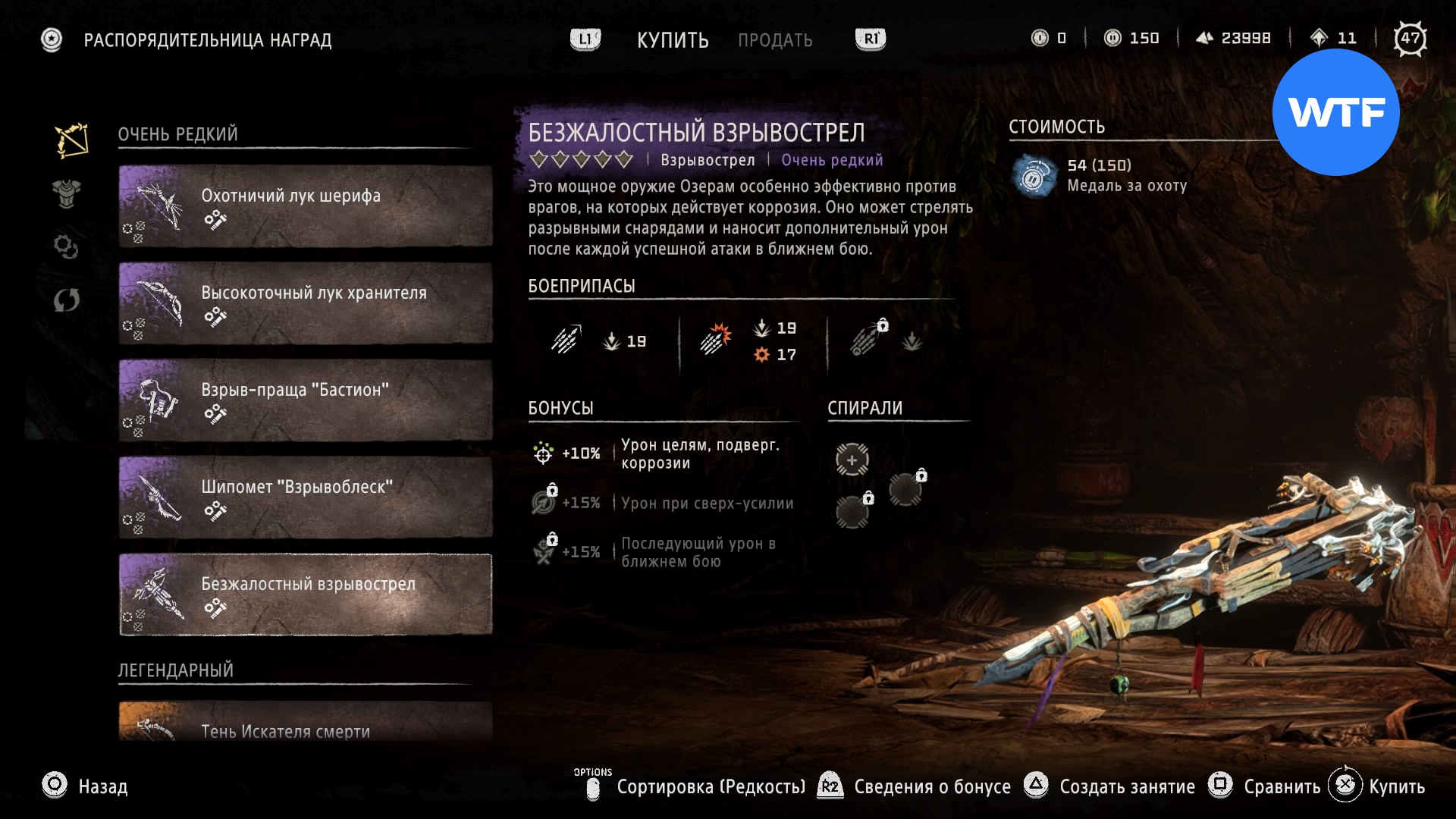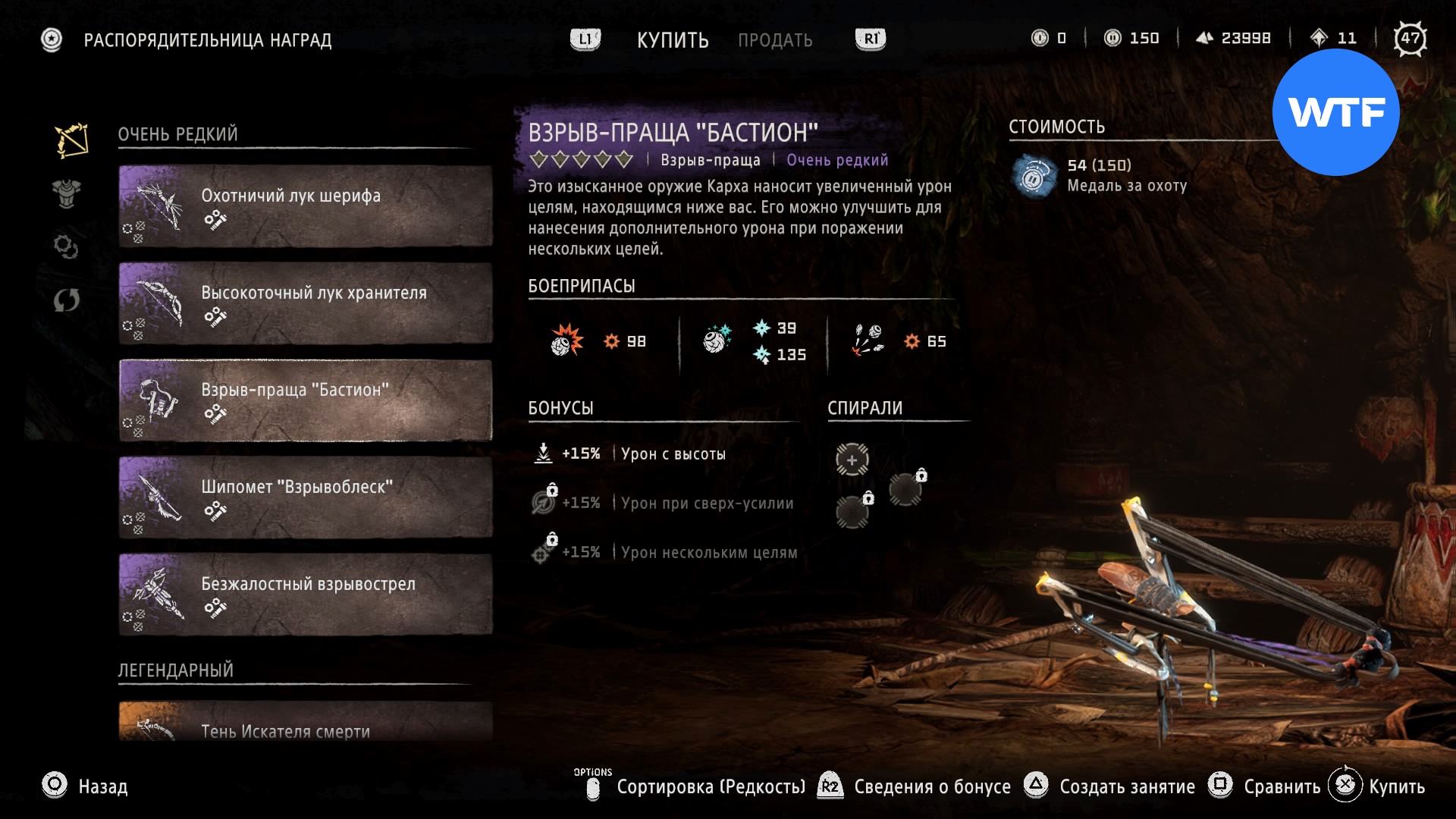 Где найти: покупается у распорядительницы наград в Устах Арены за 84 медали охоты. Чтобы разблокировать этого торговца, нужно выполнить дополнительное задание «Открытие Арены».