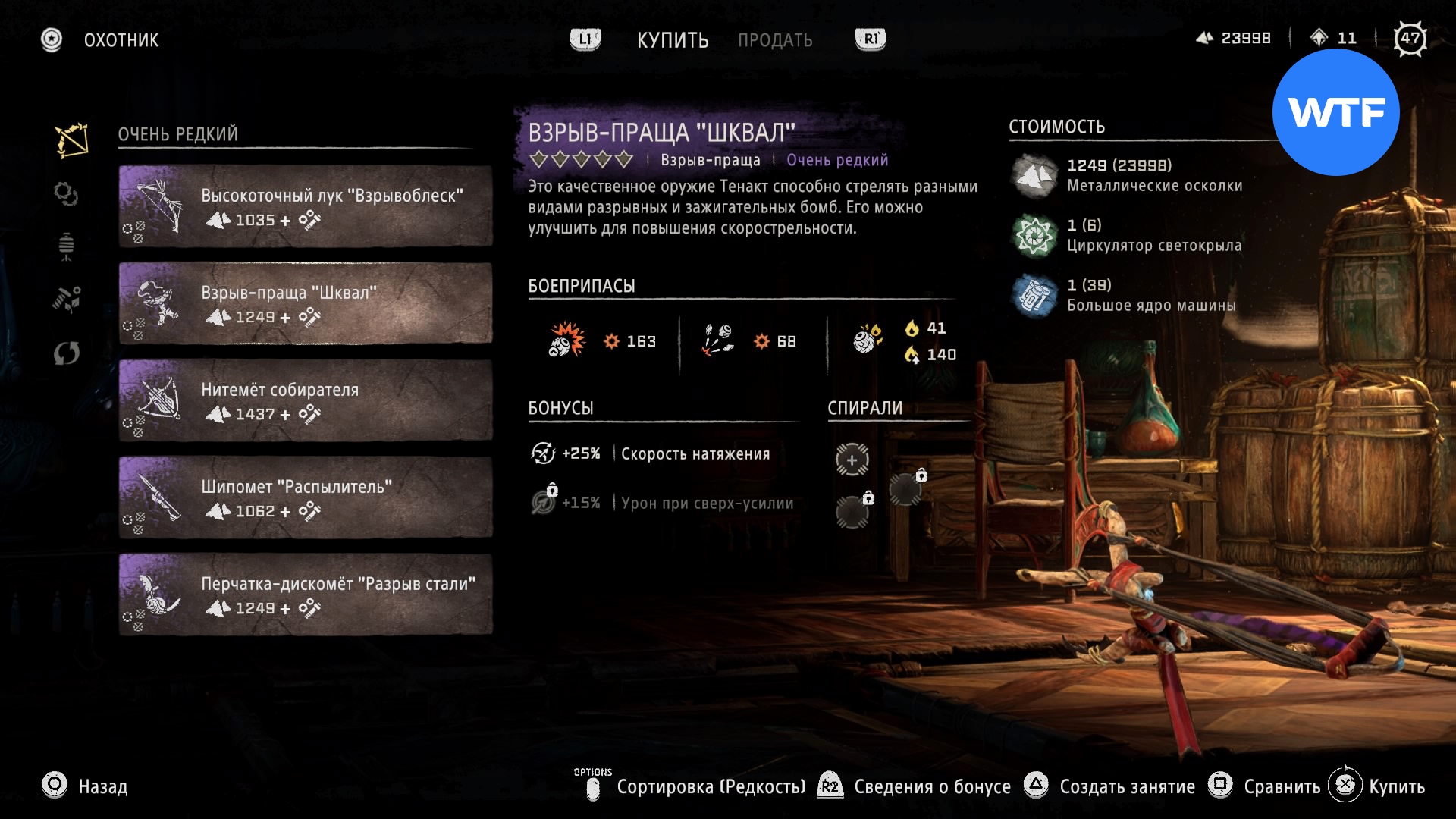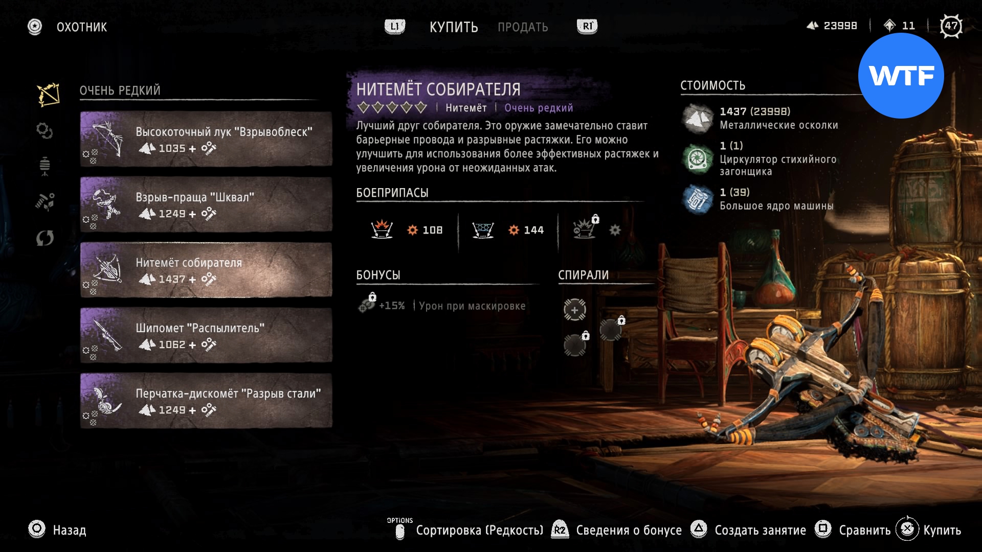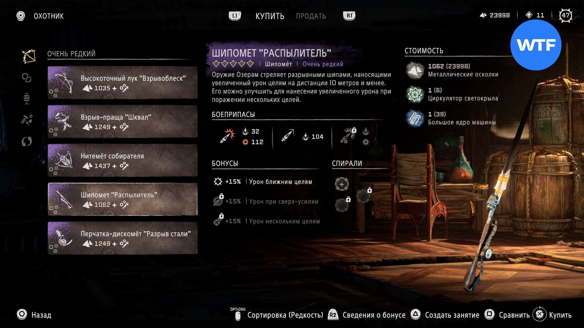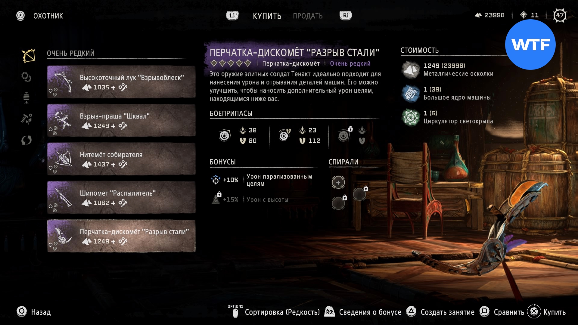 Где найти: покупается у Охотника в Колючей топи за 1249 металлических осколков, 1 циркулятор бегемота и 1 большое ядро машины.