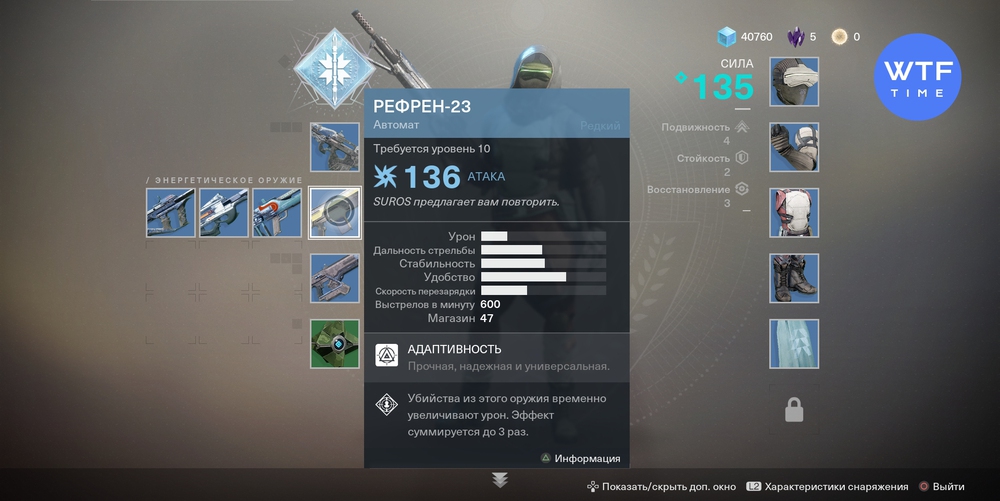 Одномоментно может быть надето всего лишь одно экзотическое оружие и одна экзотическая броня. Важный показатель любого оружия - сила. Именно от него зависит то, насколько мощный урон вы будете наносить. Все остальные показатели к ней привязаны. Т.е. если сила у нового оружия выше, то стойкость, выносливость и прочие тоже будут выше. Подробнее о прокачке силы персонажа мы писали в этом гайде.