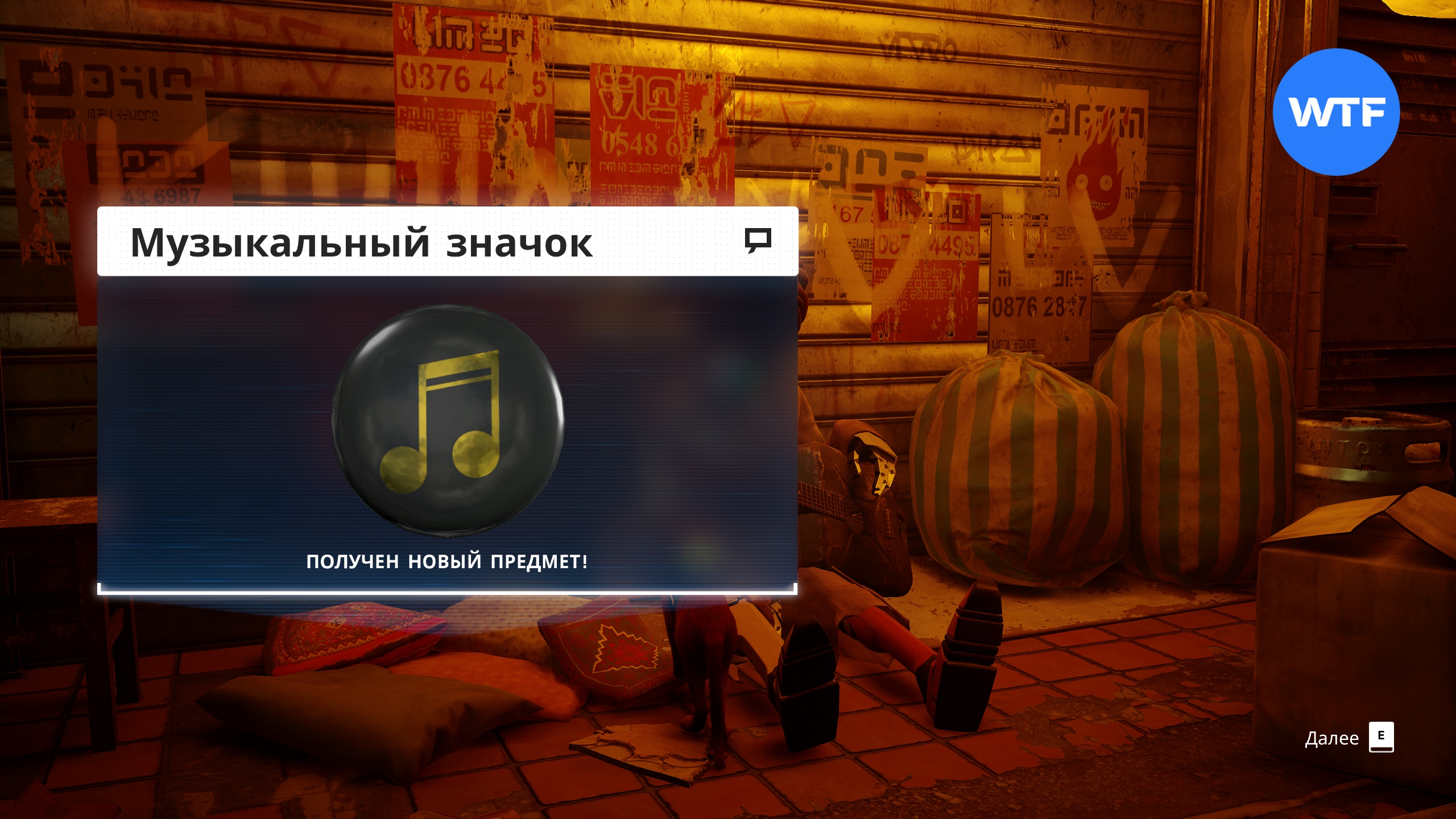 Этот значок вы получите от робота-музыканта Моруска в Трущобах. Найти его можно в переулке слева от Хранителя. Значок дается в награду за сбор всех 8 нот. Подробнее в этом гайде.