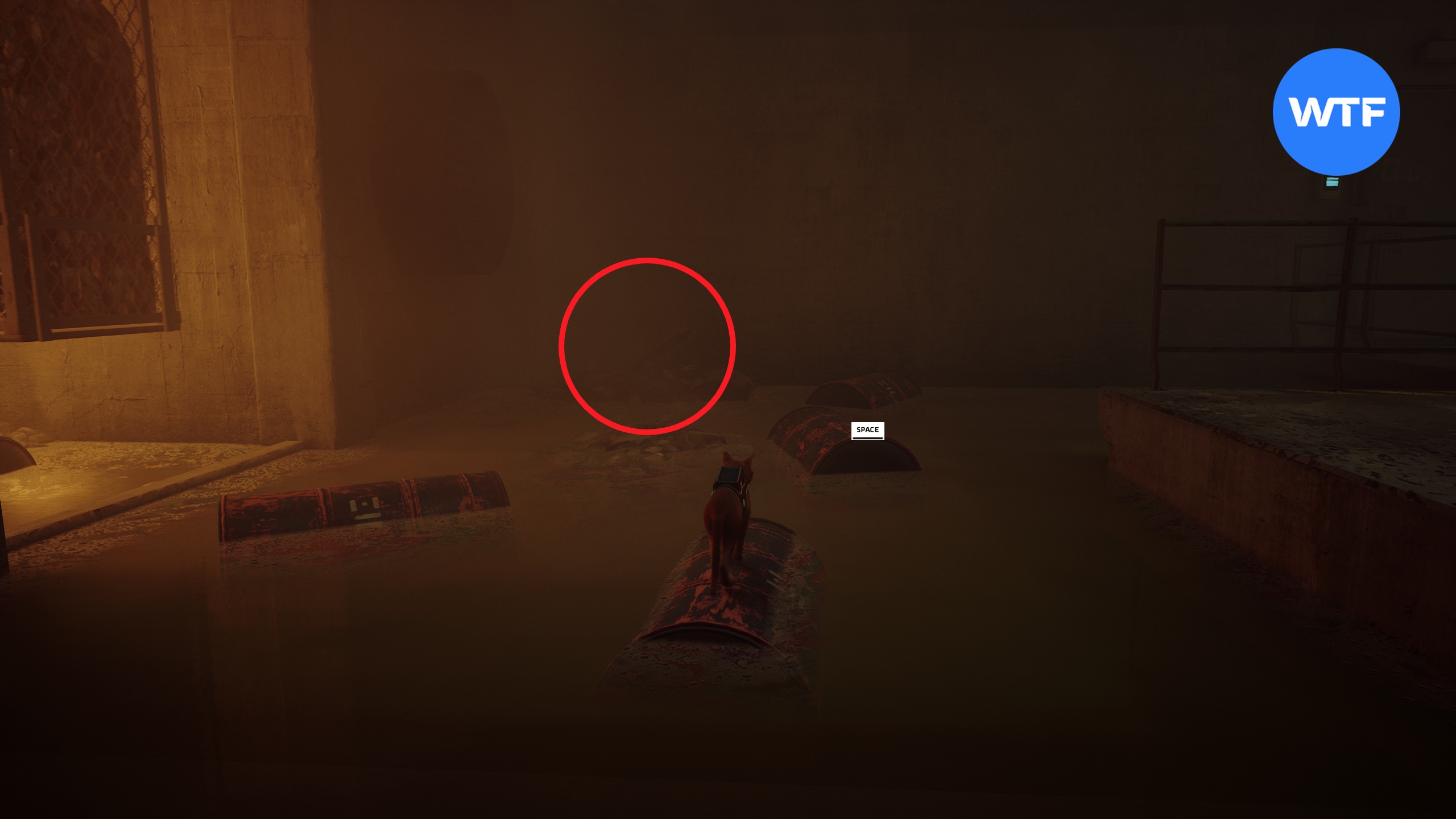 В этом же зале запрыгните на балку за дроном, а с неё — к переключателю, чтобы открыть дверь в комнату с номером 4 (см. скриншот 2). Доберитесь до левого края комнаты, прячась за передвижными блоками. Спрыгните на первую бочку в воде, а затем сразу же перепрыгните на бочку справа. Ключи лежат в куче мусора в углу (см. скриншот 3).