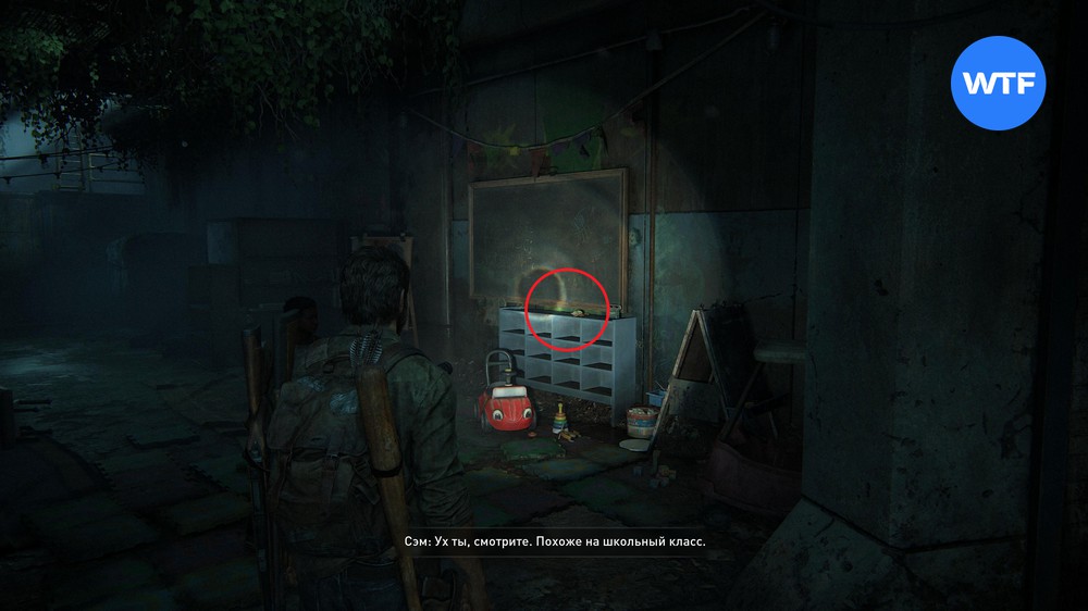 После того как вы разделитесь, вам придется прорываться через большую область с зараженными. Прямо перед тем местом, где Сэм должен спустить для вас лестницу, есть классная доска. Рисунок лежит на стеллаже под ней.