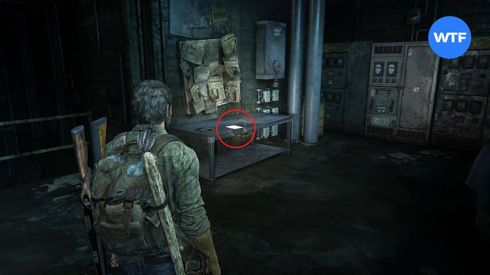 На следующей развилке идите вместе с Элли. Выломайте решетку вентиляционного отверстия, чтобы она смогла открыть вам дверь справа. После этого заберите записку со стола.