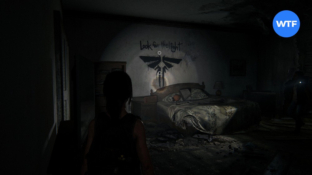 Следуйте за Райли наверх. После того как пролезете под заколоченной дверью, сможете забрать этот плакат со стола в комнате.