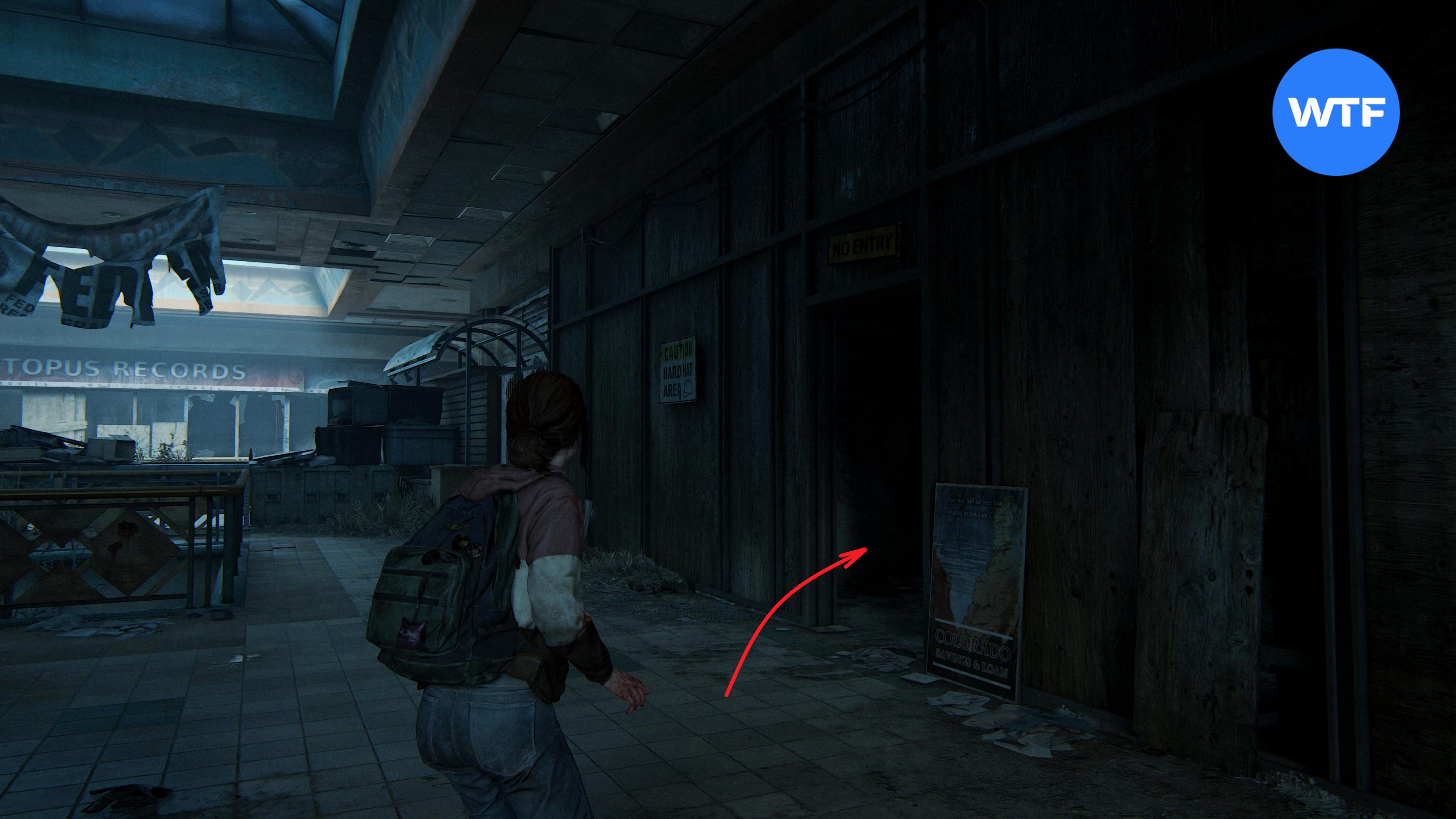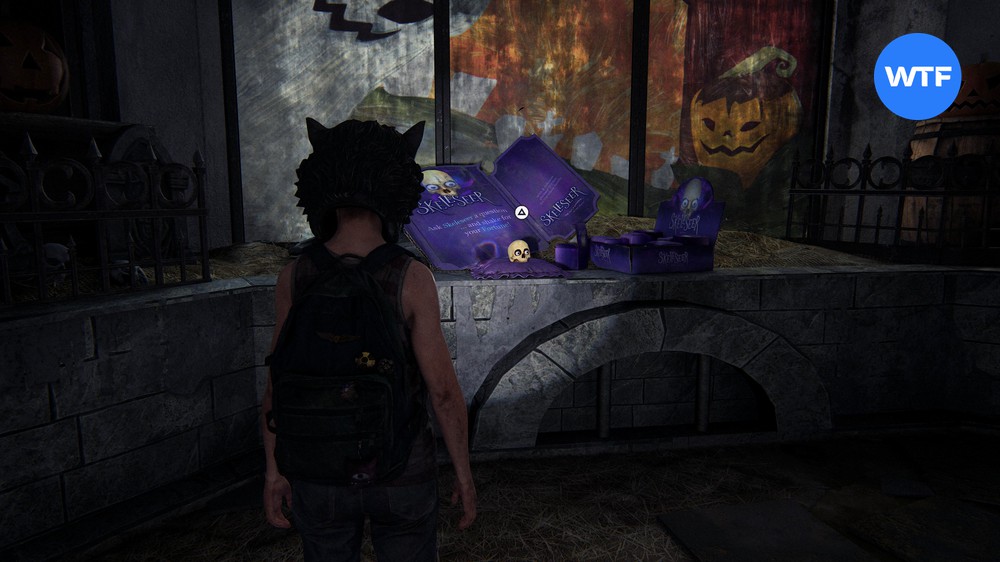 Слева от входа в магазин есть фиолетовый череп с предсказаниями. Дождитесь, пока Элли исчерпает все варианты диалогов. Затем череп возьмет Райли и вы сможете послушать её.
