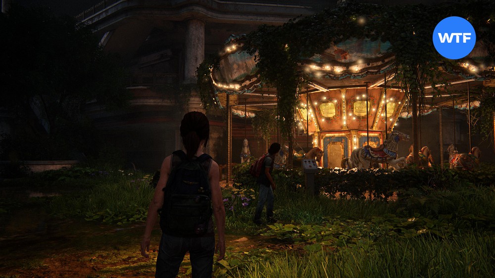 Слезьте с карусели и дождитесь, пока Элли расскажет все припасенные шутки. После этого вы получите достижение «Больше у меня нет».