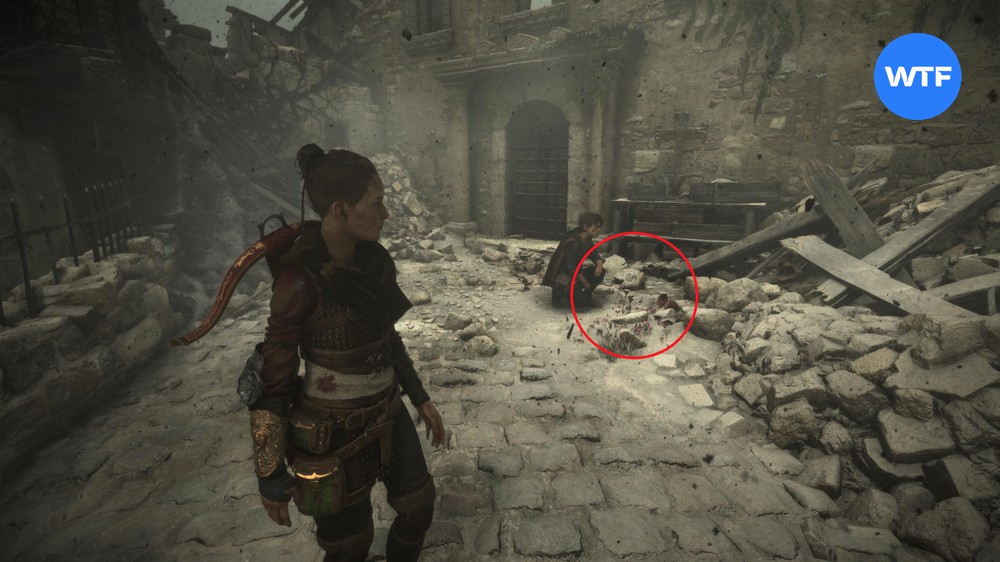 Ближе середине главы вы узнаете, что Арно жив и отправитесь его спасать. Пройдя через первую открытую область с врагами, вы должны проползти под обломками в белой разрушенной башне возле церкви.