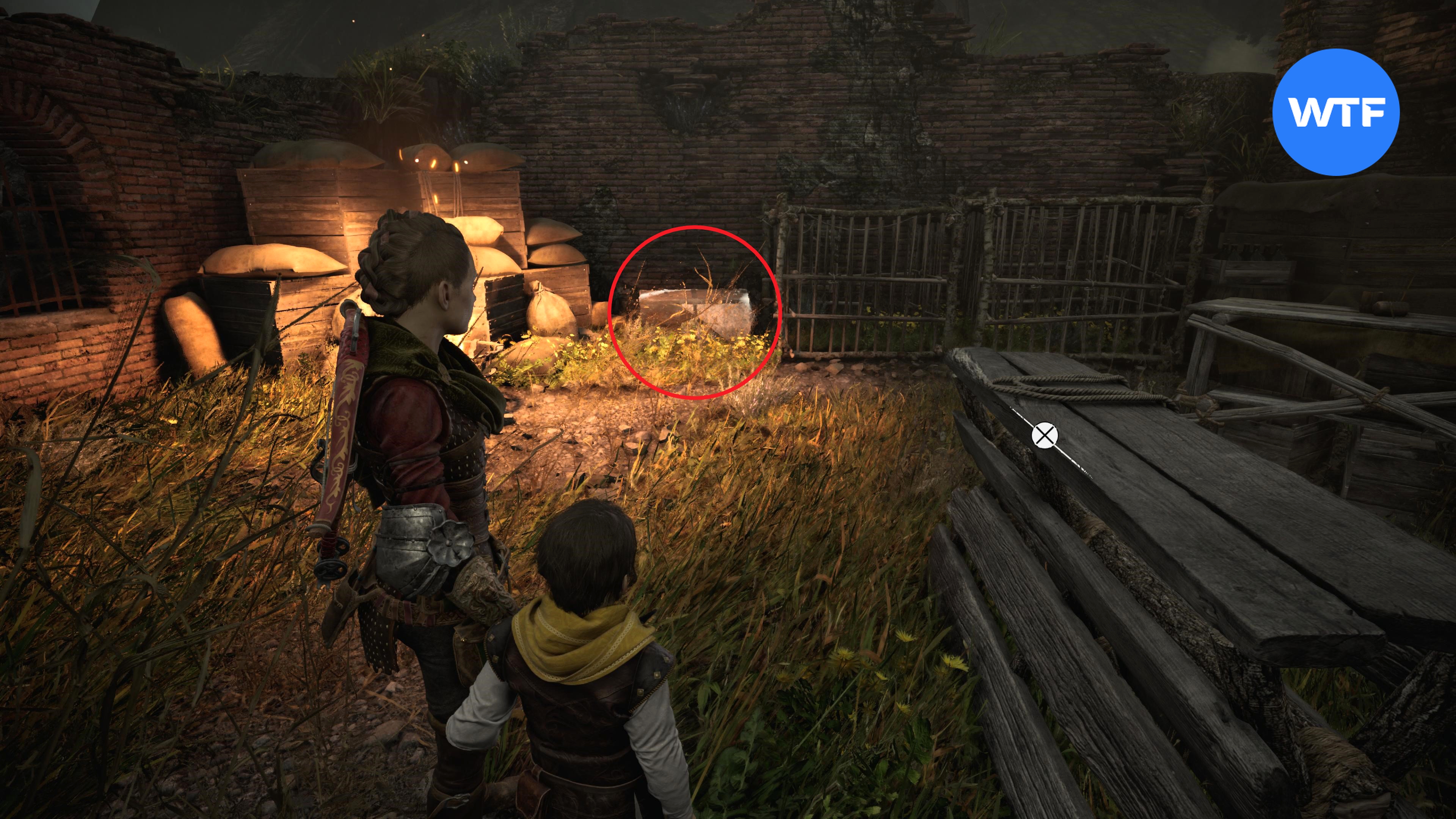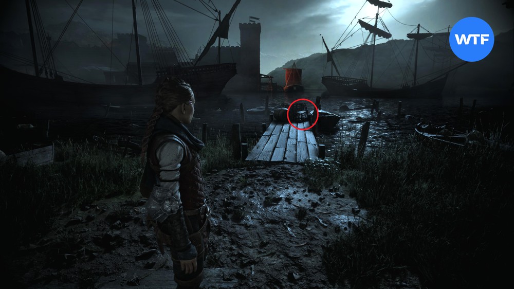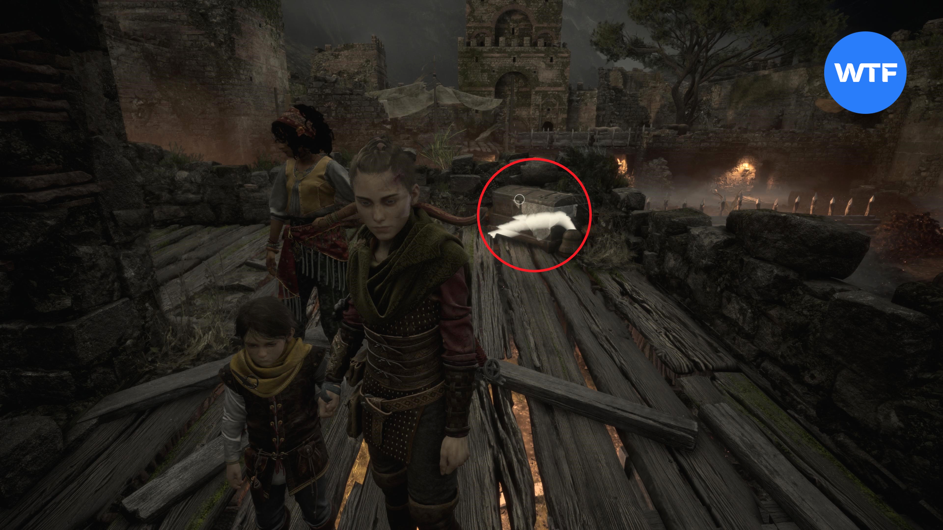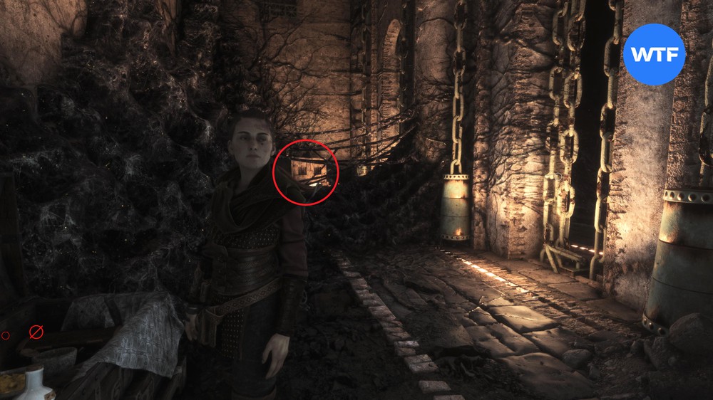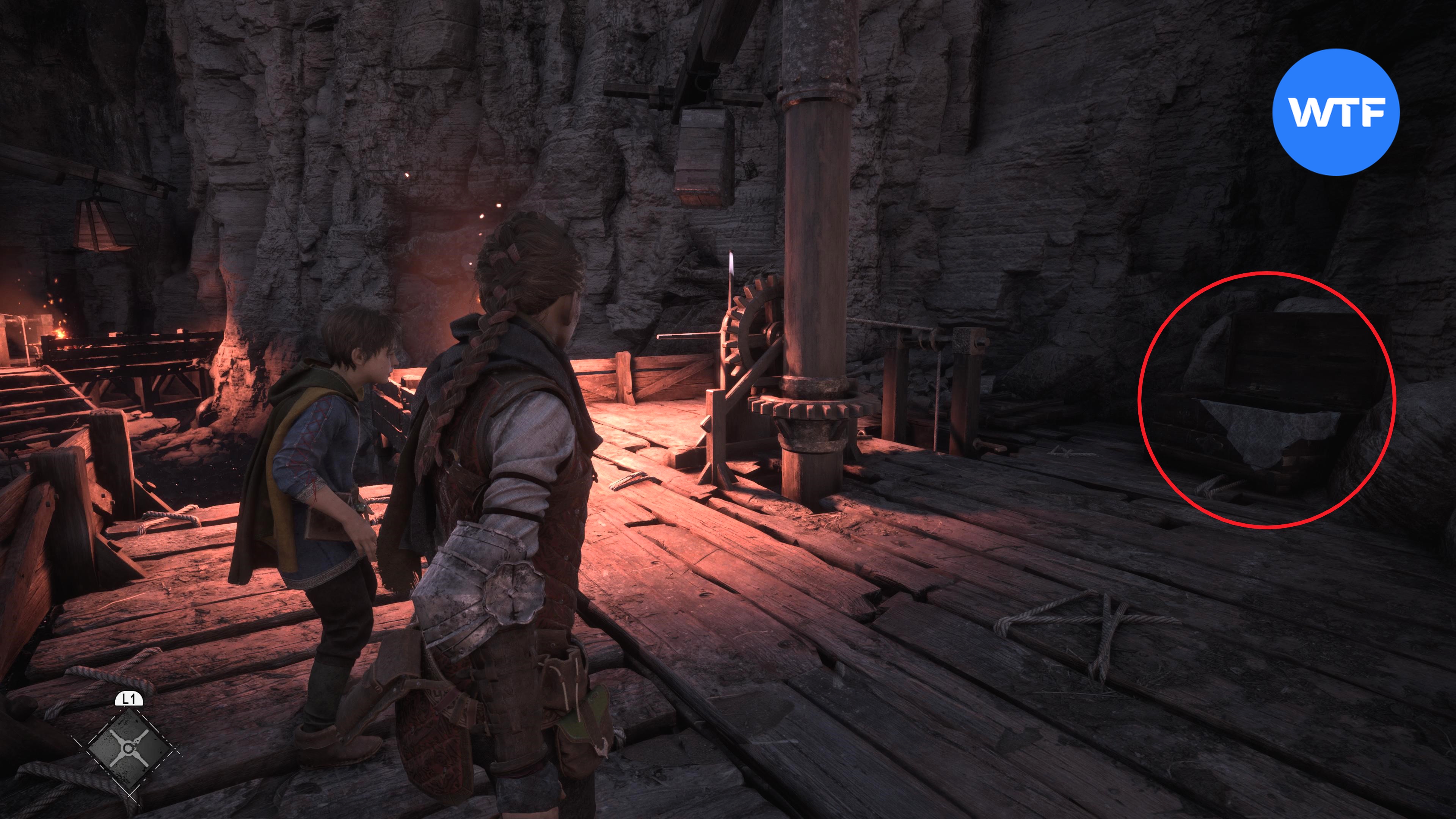 Продолжайте идти по сюжету, пока слезая с большого моста, Амиция не свалится вниз к крысам. После этого вам придется сбить замки с двух групп цепей с противовесами, чтобы продвинуться вперед. Возле вторых есть тайный сундук, к которому вы сможете пробраться.