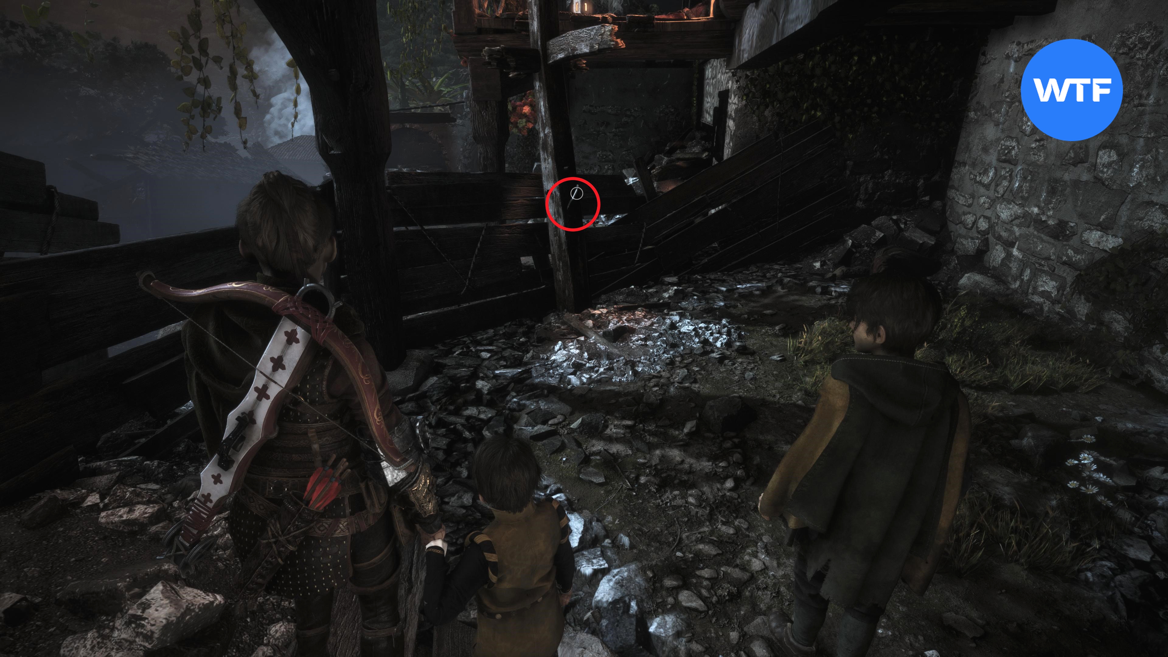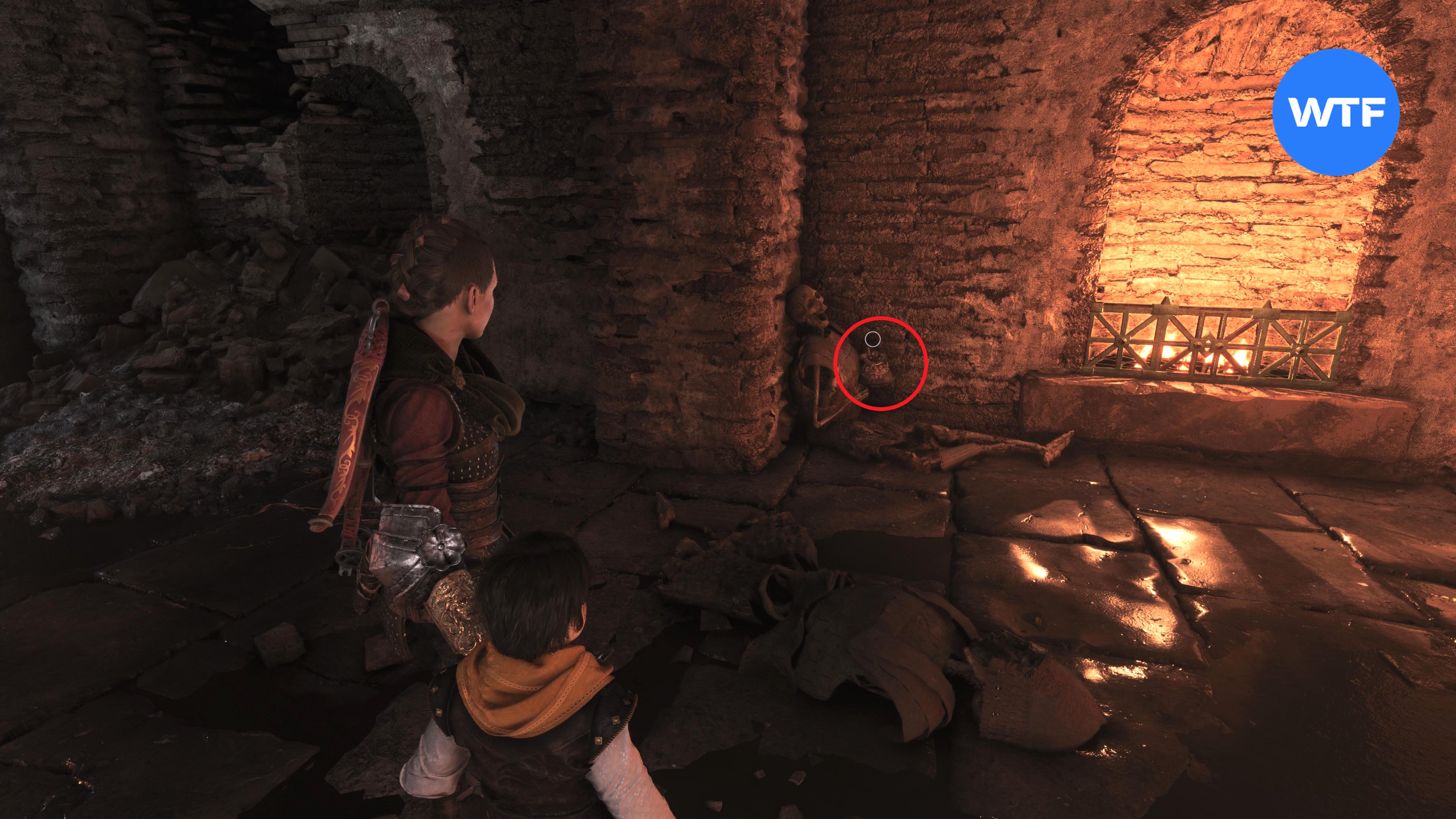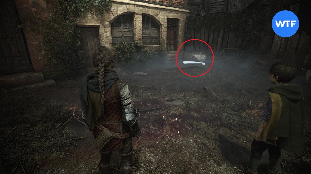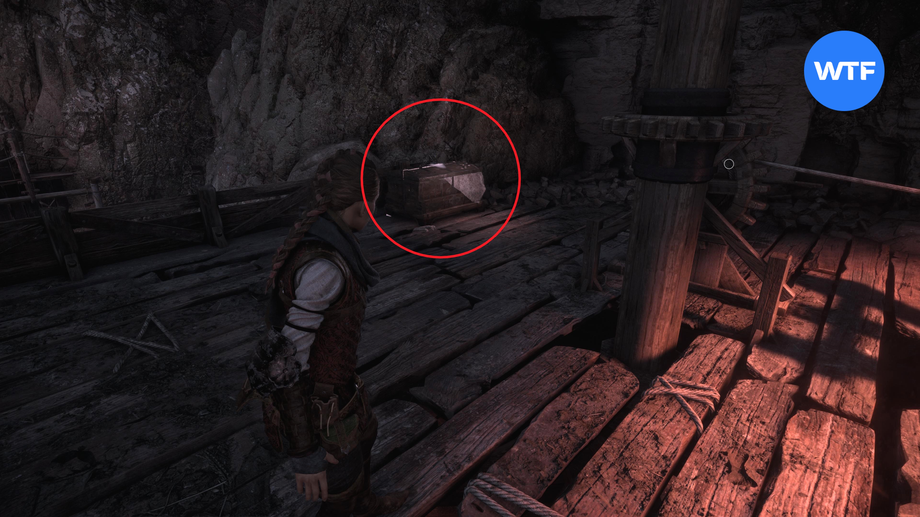 Продолжайте идти по сюжету, пока слезая с большого моста, Амиция не свалится вниз к крысам. После этого вам придется сбить замки с двух групп цепей с противовесами, чтобы продвинуться вперед. Возле вторых есть тайный сундук, к которому вы сможете пробраться.