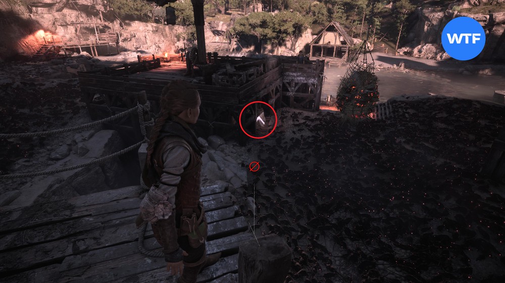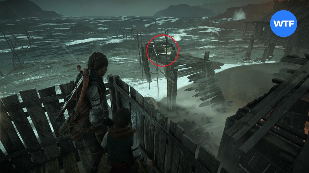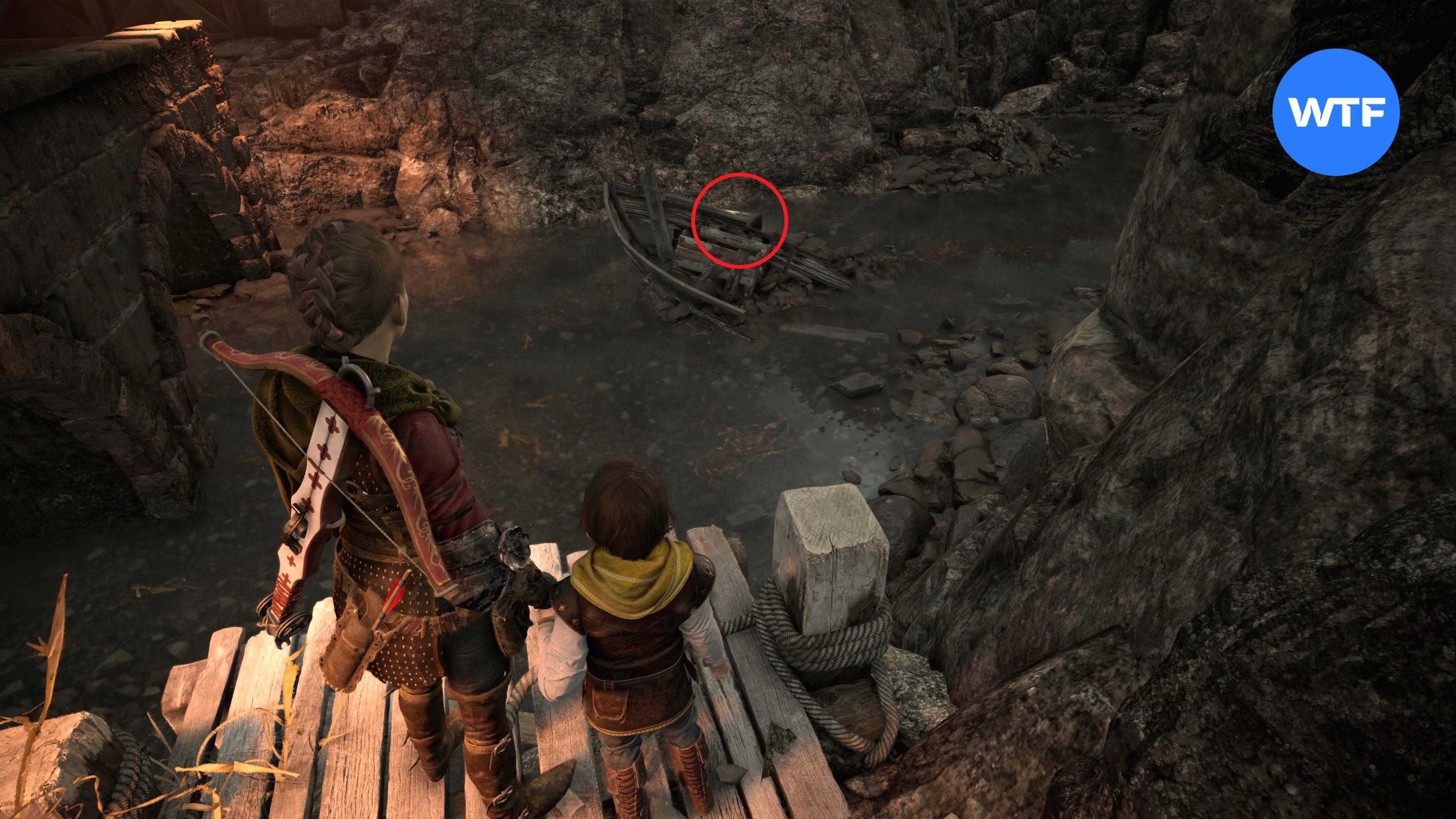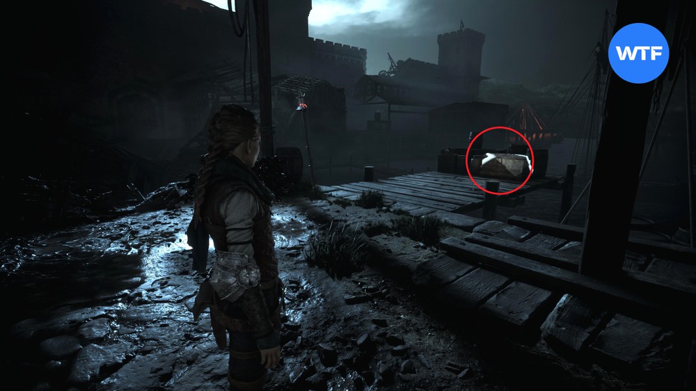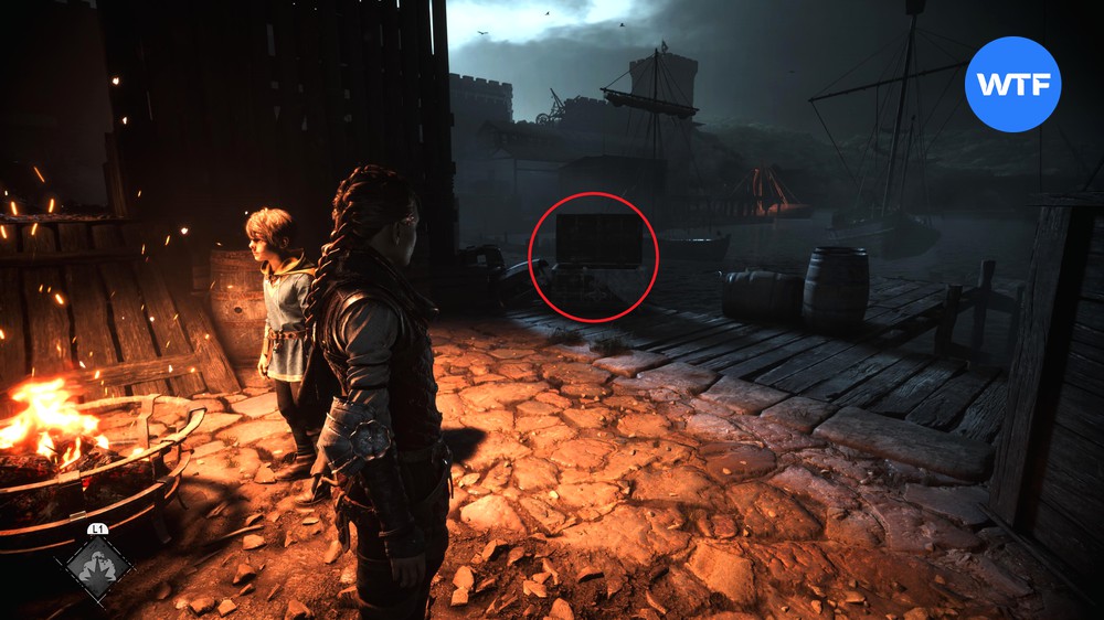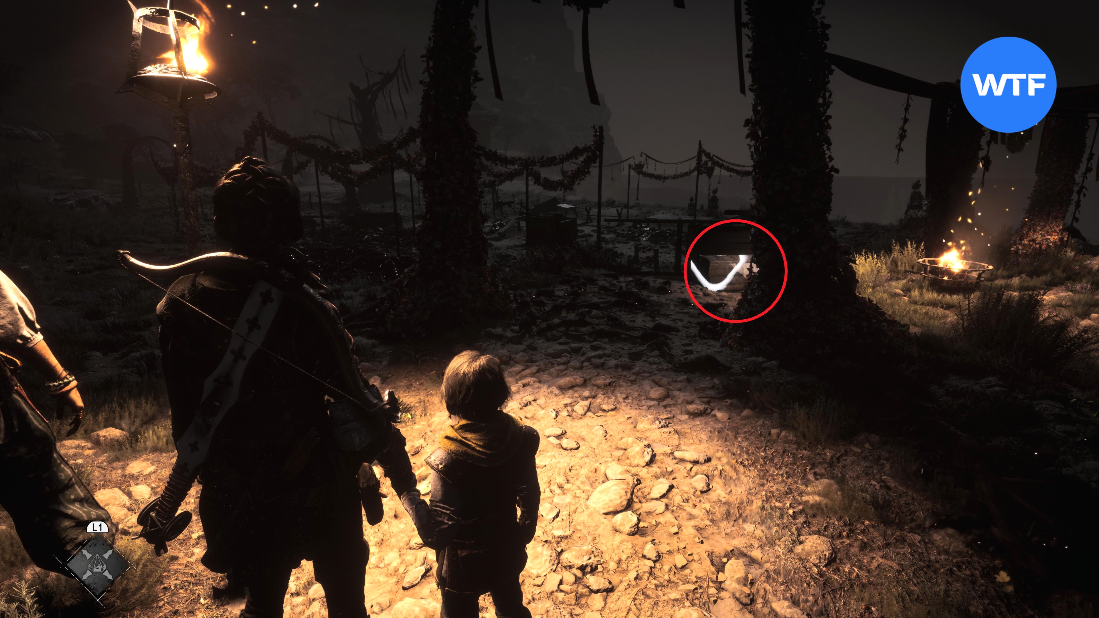 Продолжайте идти по сюжету, пока слезая с большого моста, Амиция не свалится вниз к крысам. После этого вам придется сбить замки с двух групп цепей с противовесами, чтобы продвинуться вперед. Возле вторых есть тайный сундук, к которому вы сможете пробраться.