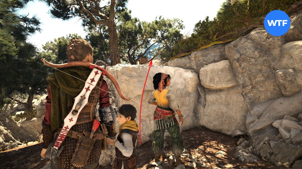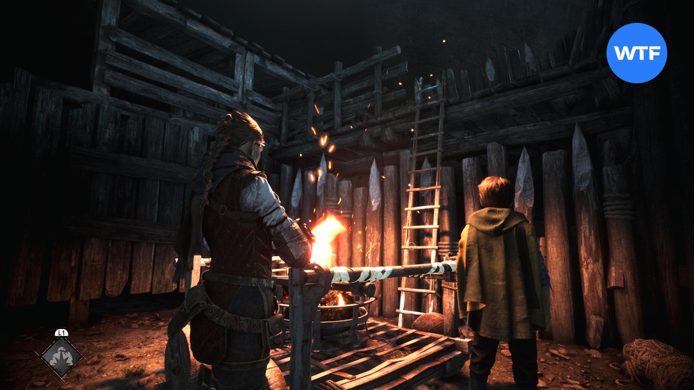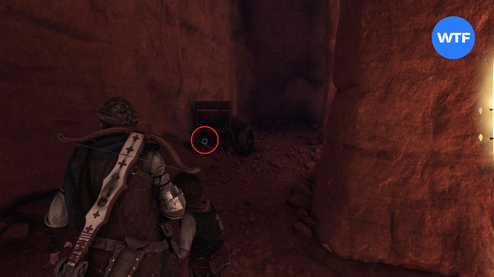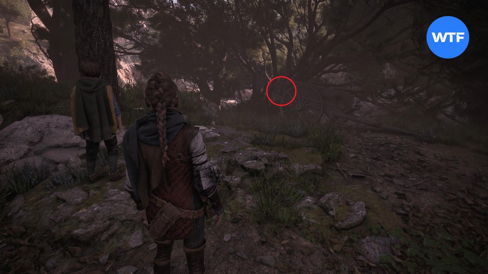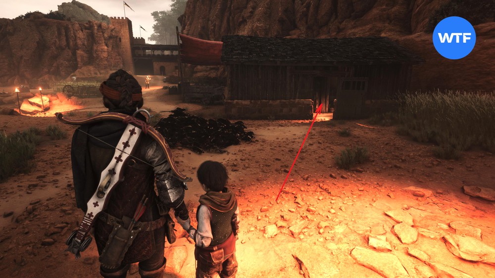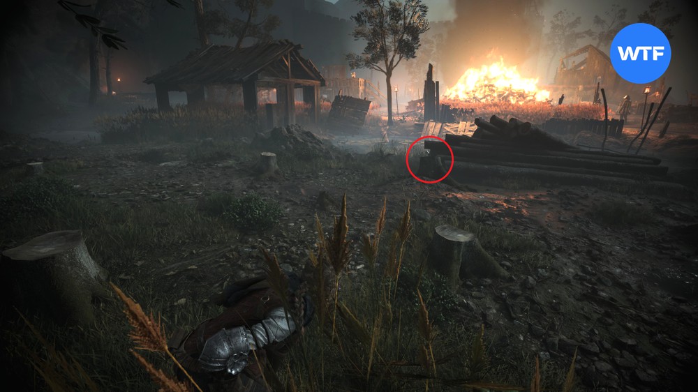 Двигайтесь по сюжету, пока не отправитесь на поиски святилища в горах. В какой-то момент на вашем пути встретится стадо коз, преграждающих путь. Продолжайте идти по дороге, пока не увидите разрушенную башню слева, из которой слышно блеяние. Чтобы попасть внутрь, подпалите траву справа от входа, а затем попросите Гуго пролезть в дыру и открыть дверь.