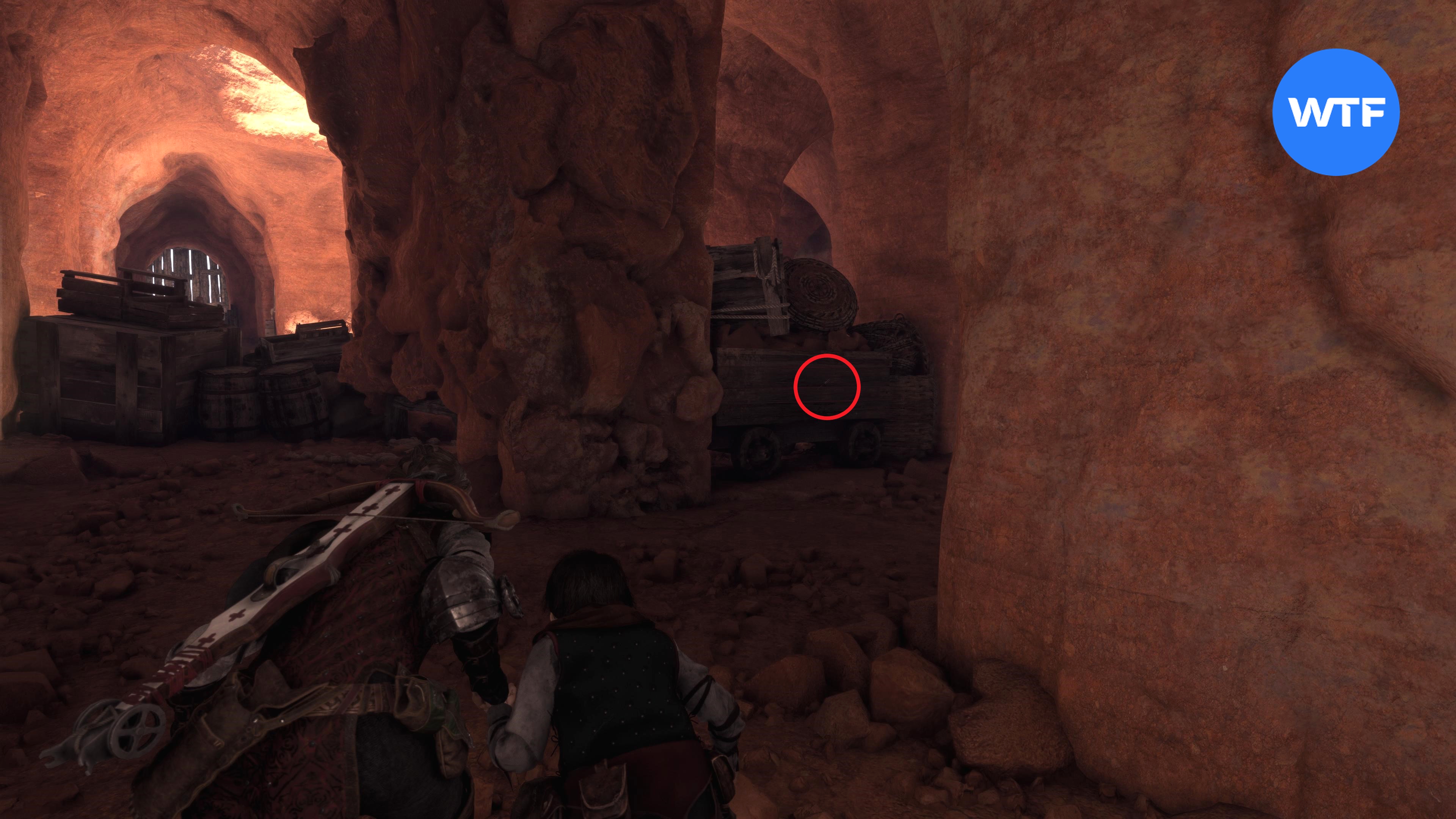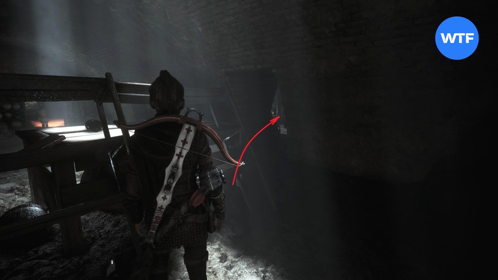 Чтобы воссоединиться со своими спутниками, вы должны толкать вперед тележку, затем взорвать бочонок и снова толкать тележку. Прежде чем подниматься по лестнице в конце пути, заберите сундук с инструментами слева.