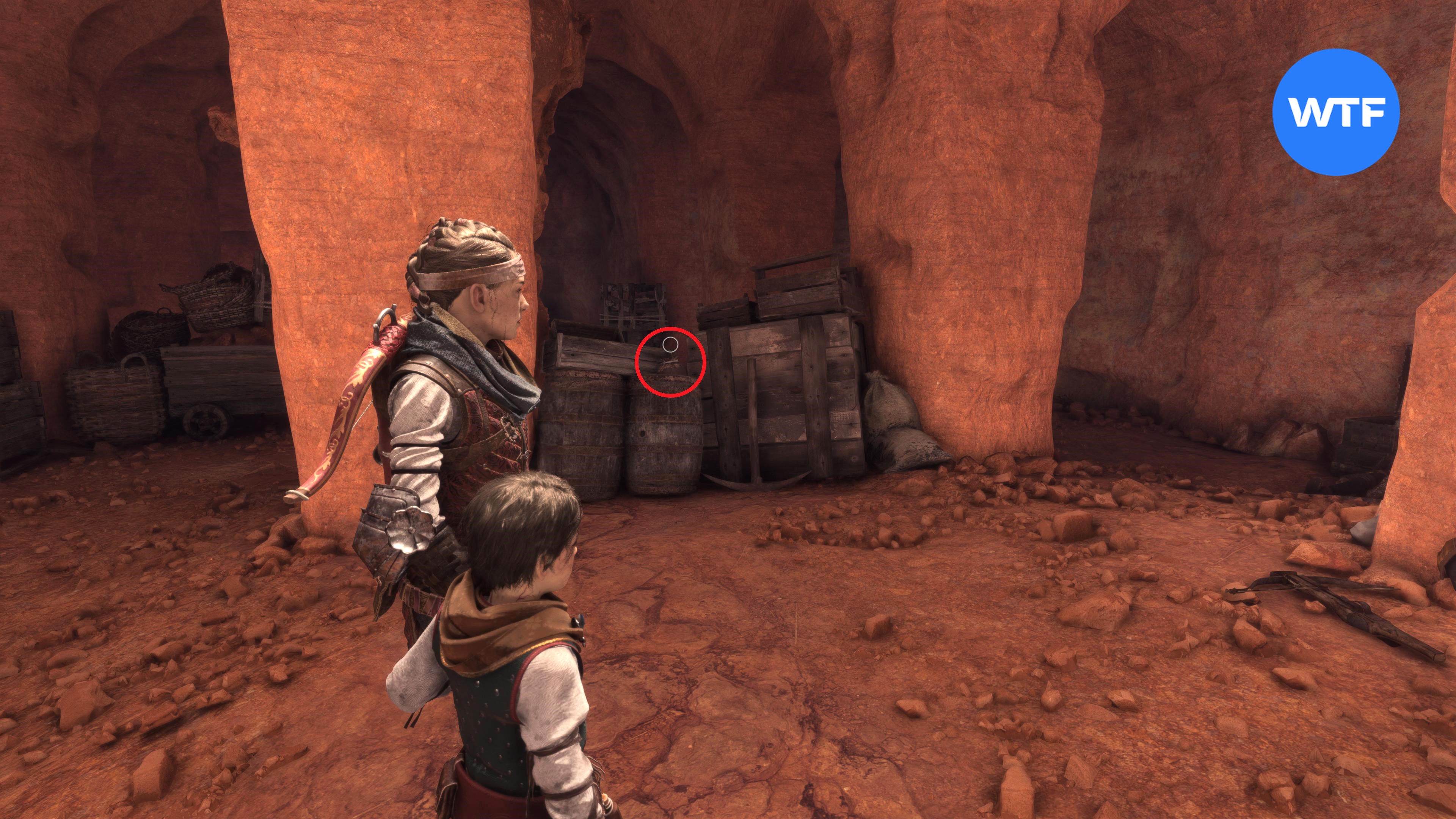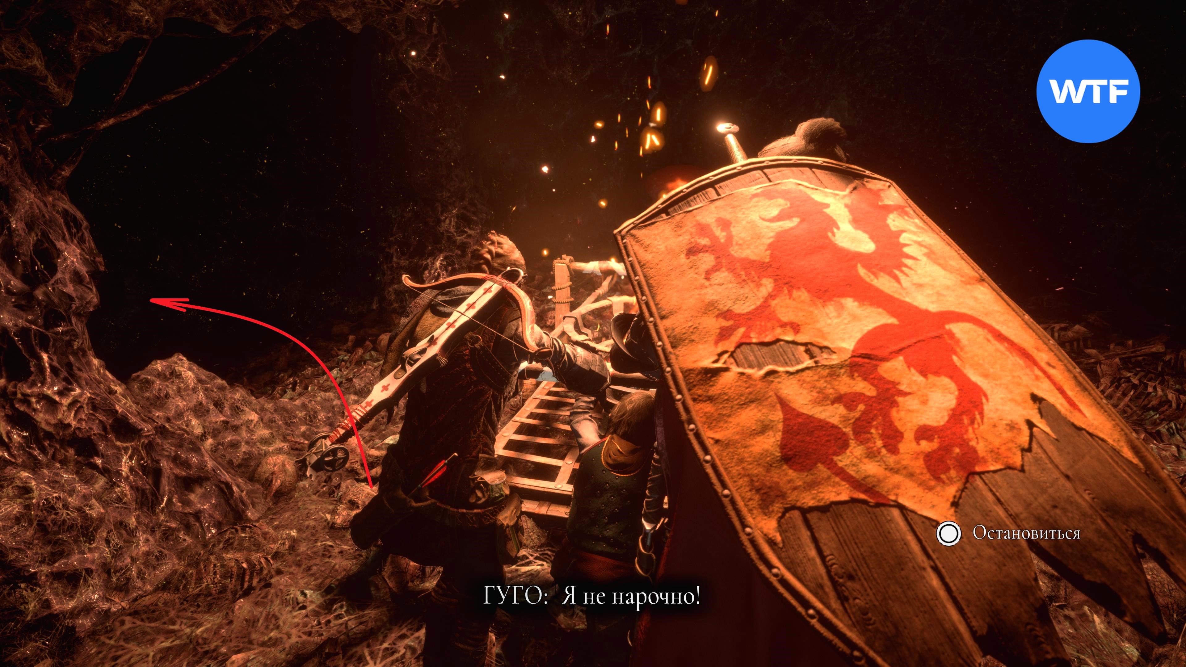 Продолжайте двигаться вперед, пока не доберетесь до следующей большой открытой локации с врагами (после того как Гуго натравит крыс на работорговцев в кат-сцене и после разговора с Софией).