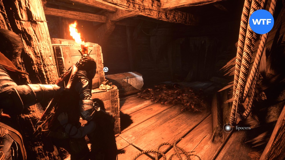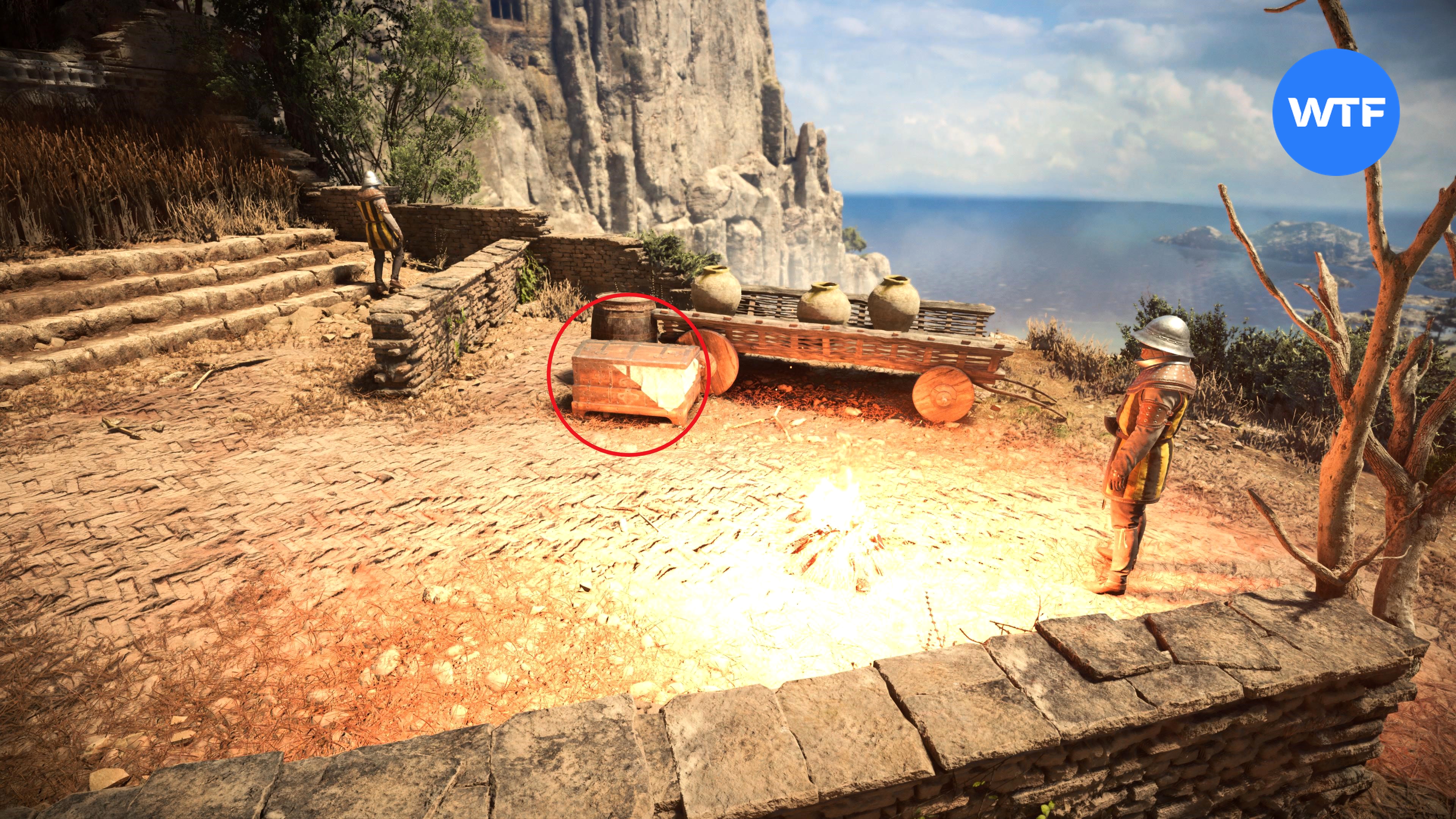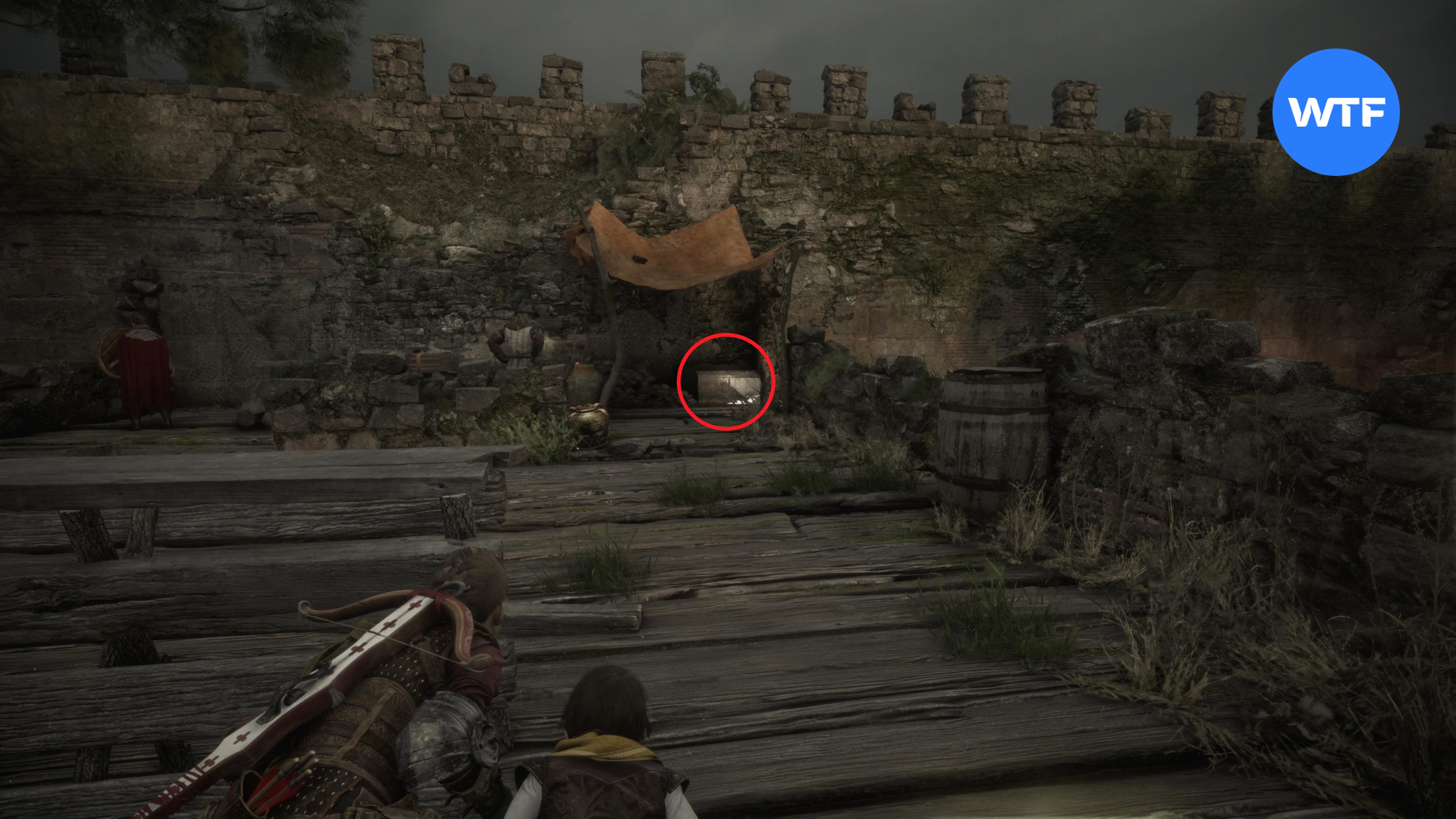 Перебравшись через первый огненный ров, вы найдете большой сундук на балконе слева от вас и сундук с инструментами внизу за зданием, слева от предыдущего сундука.