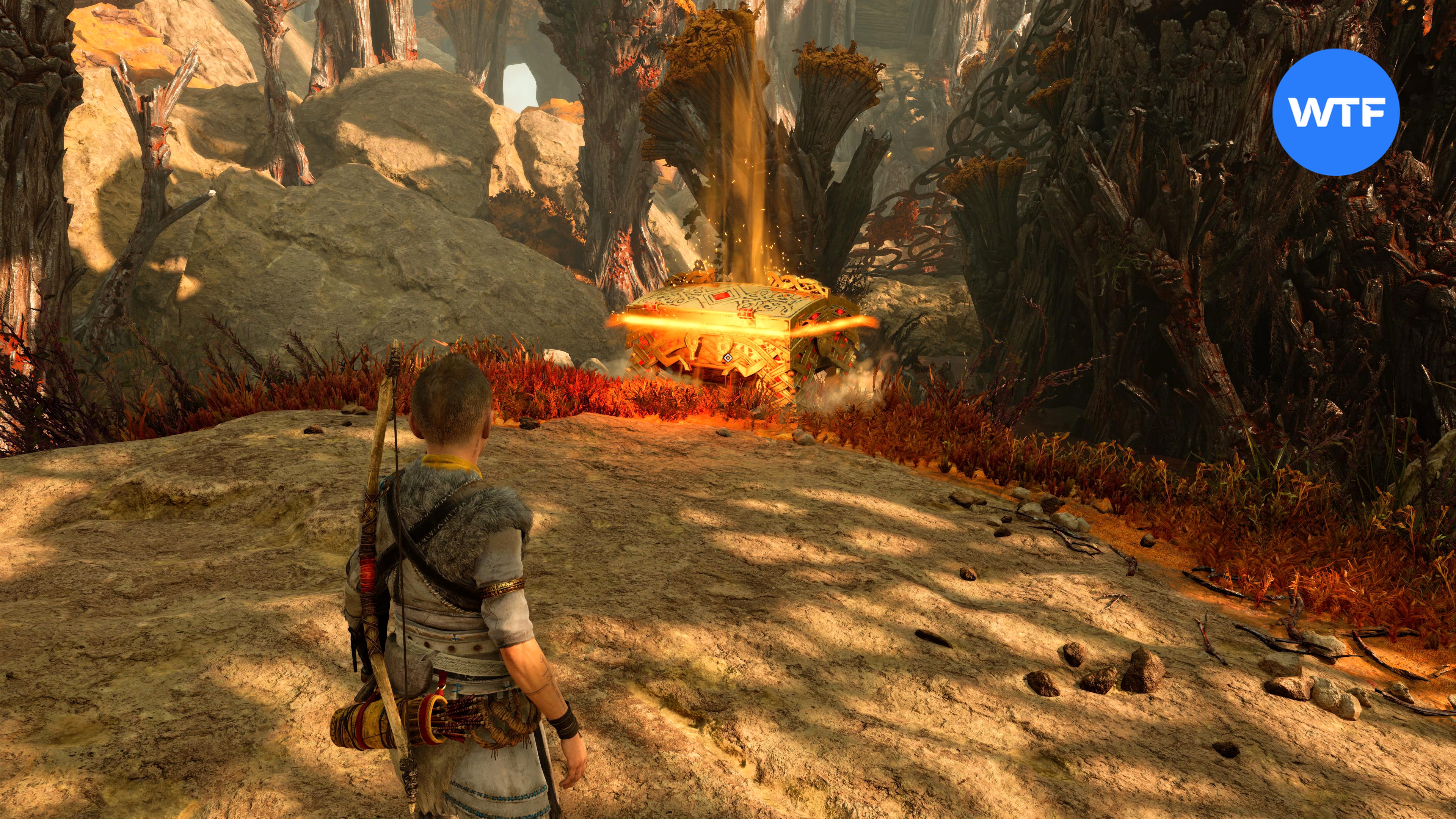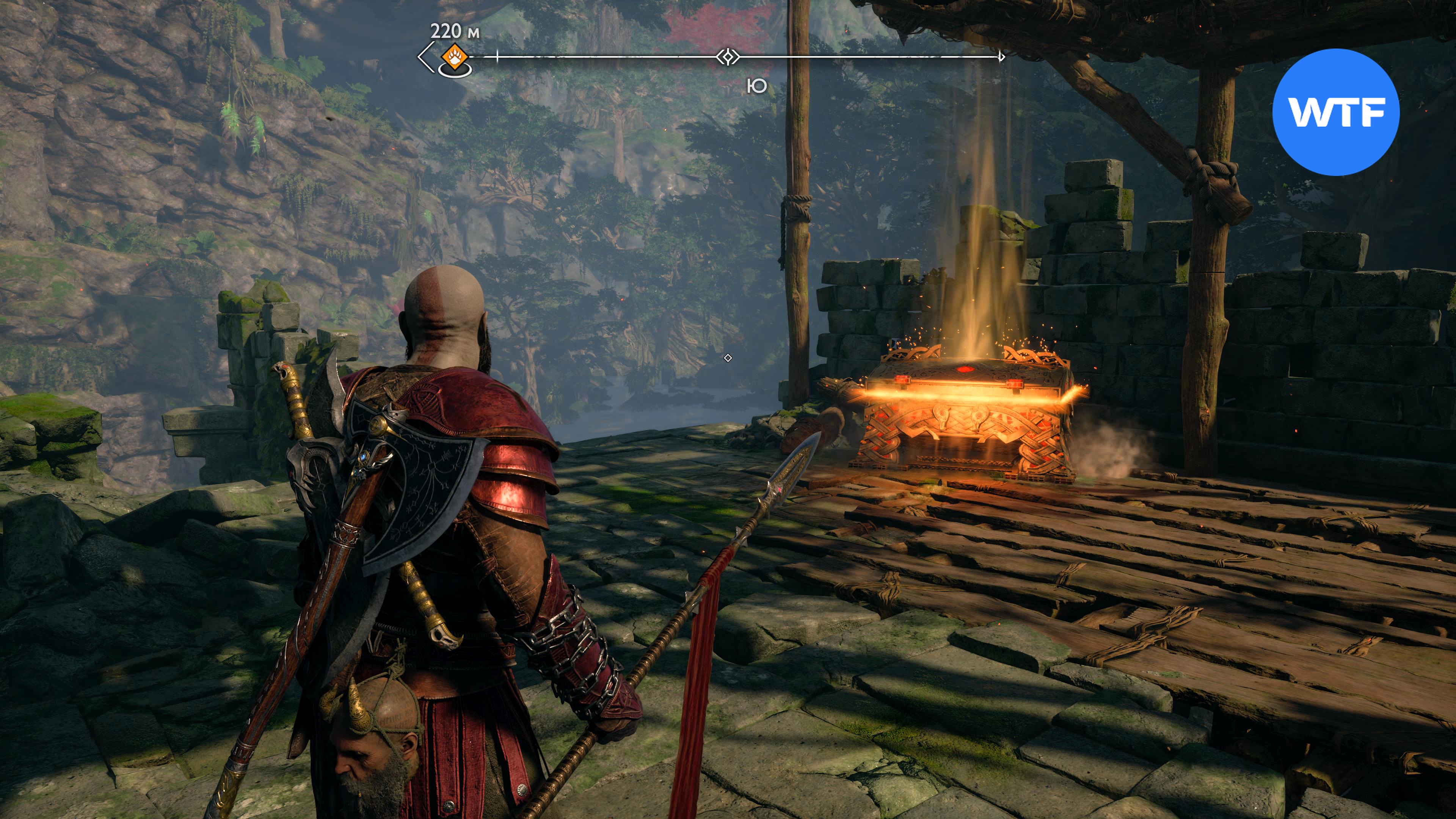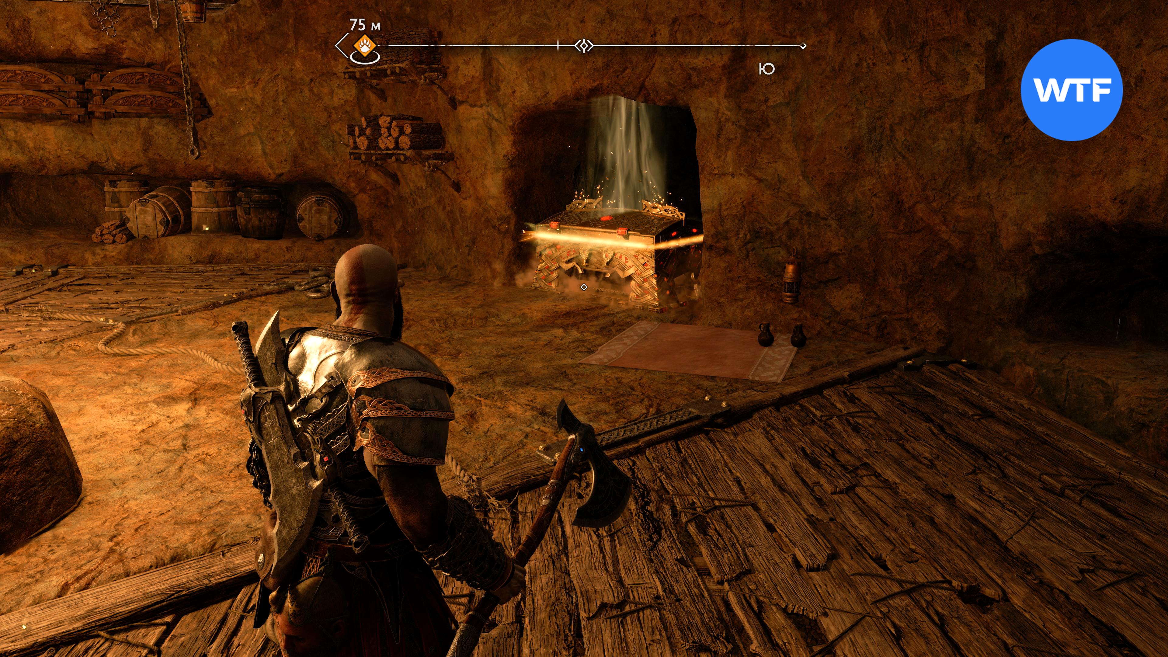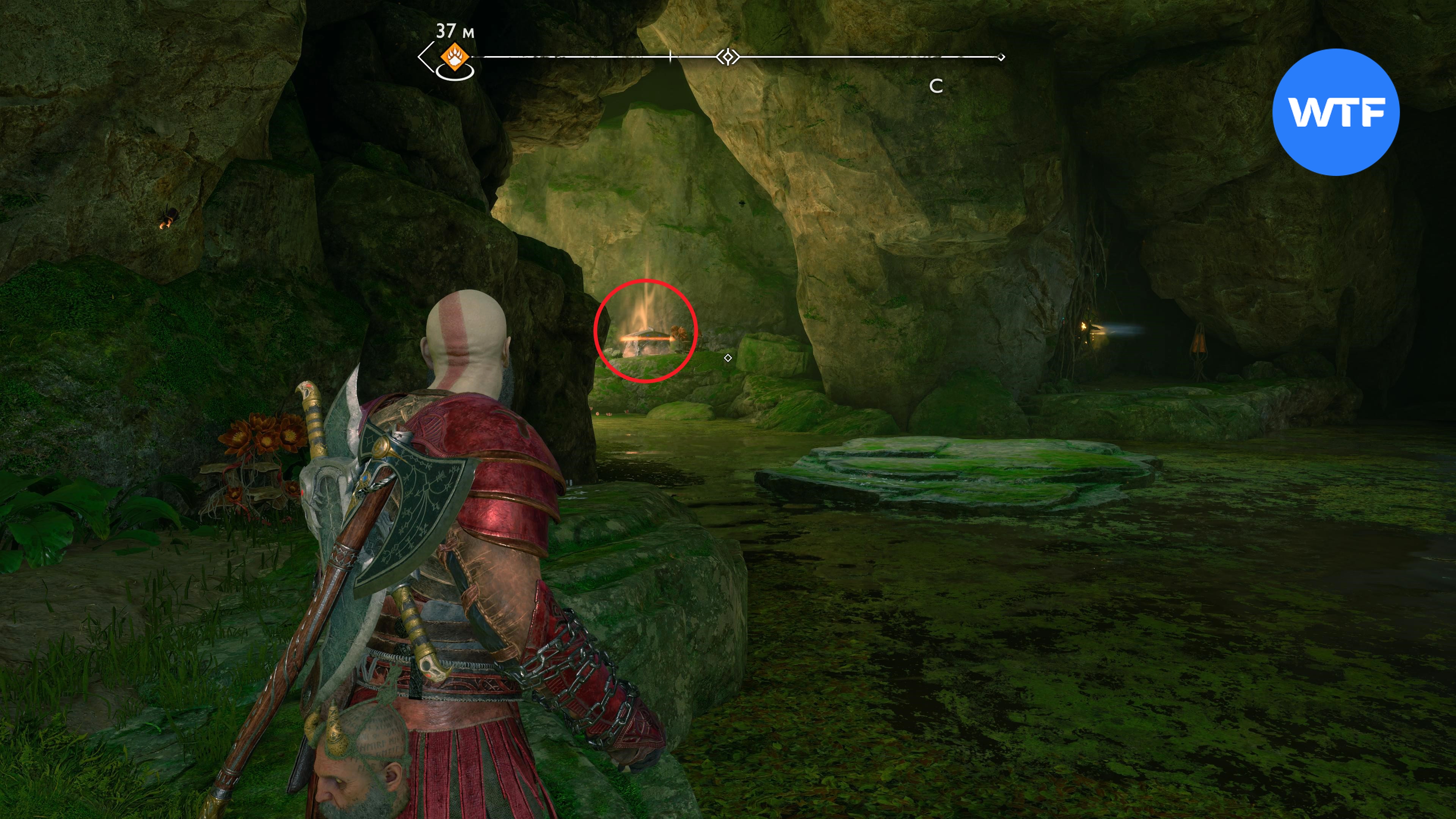 Вскоре после вторых ворот, в которые нужно кидать топор, Кратос снова должен будет метнуть копье в стену. После этого вы будете проходить мимо этого сундука.