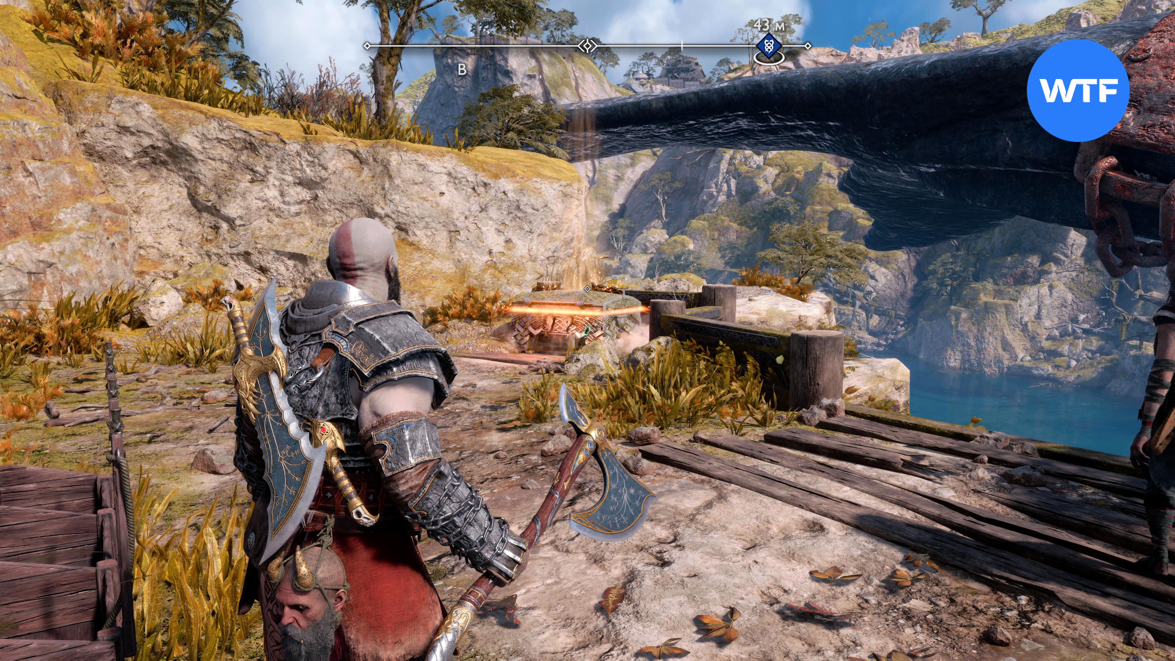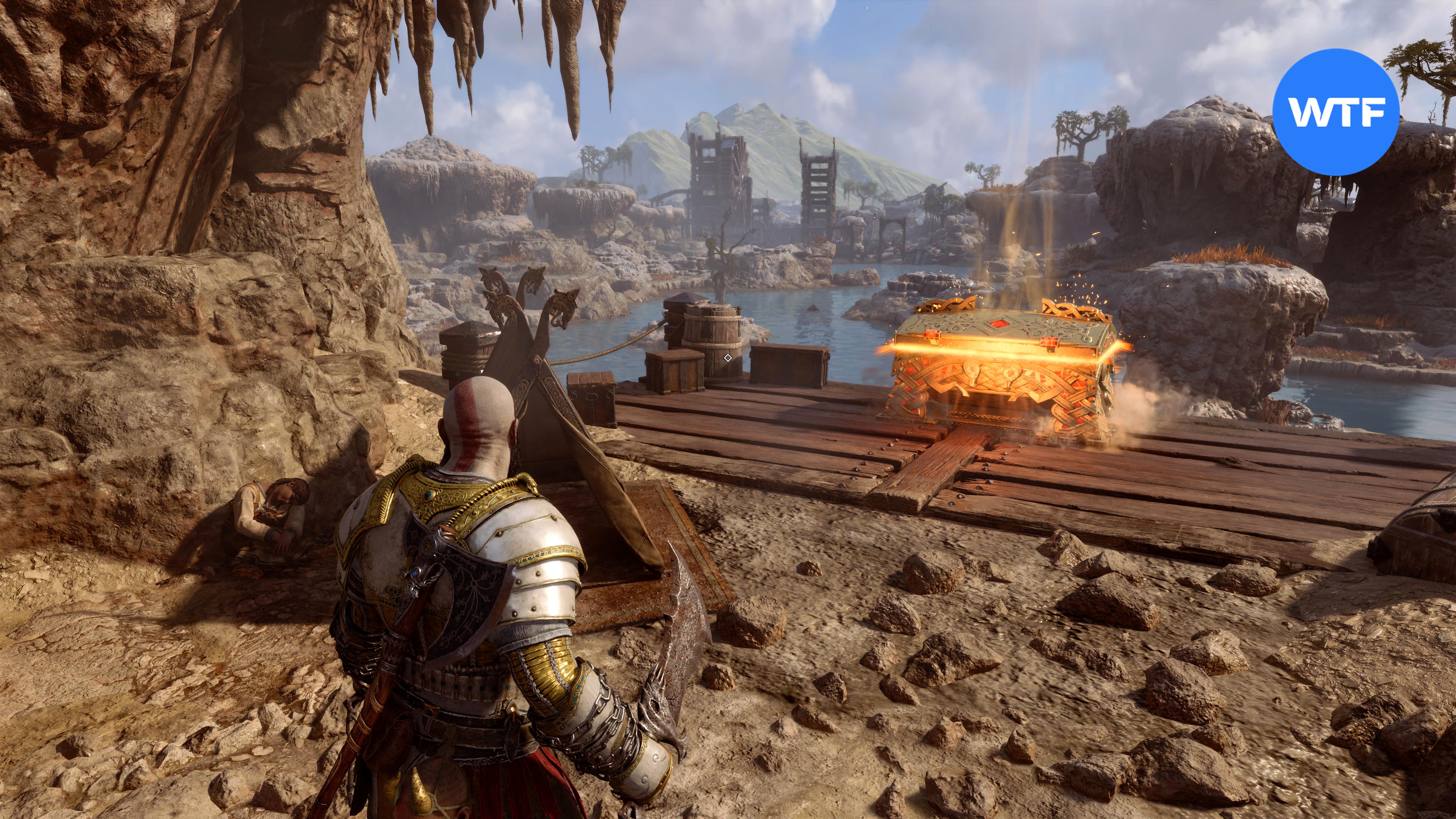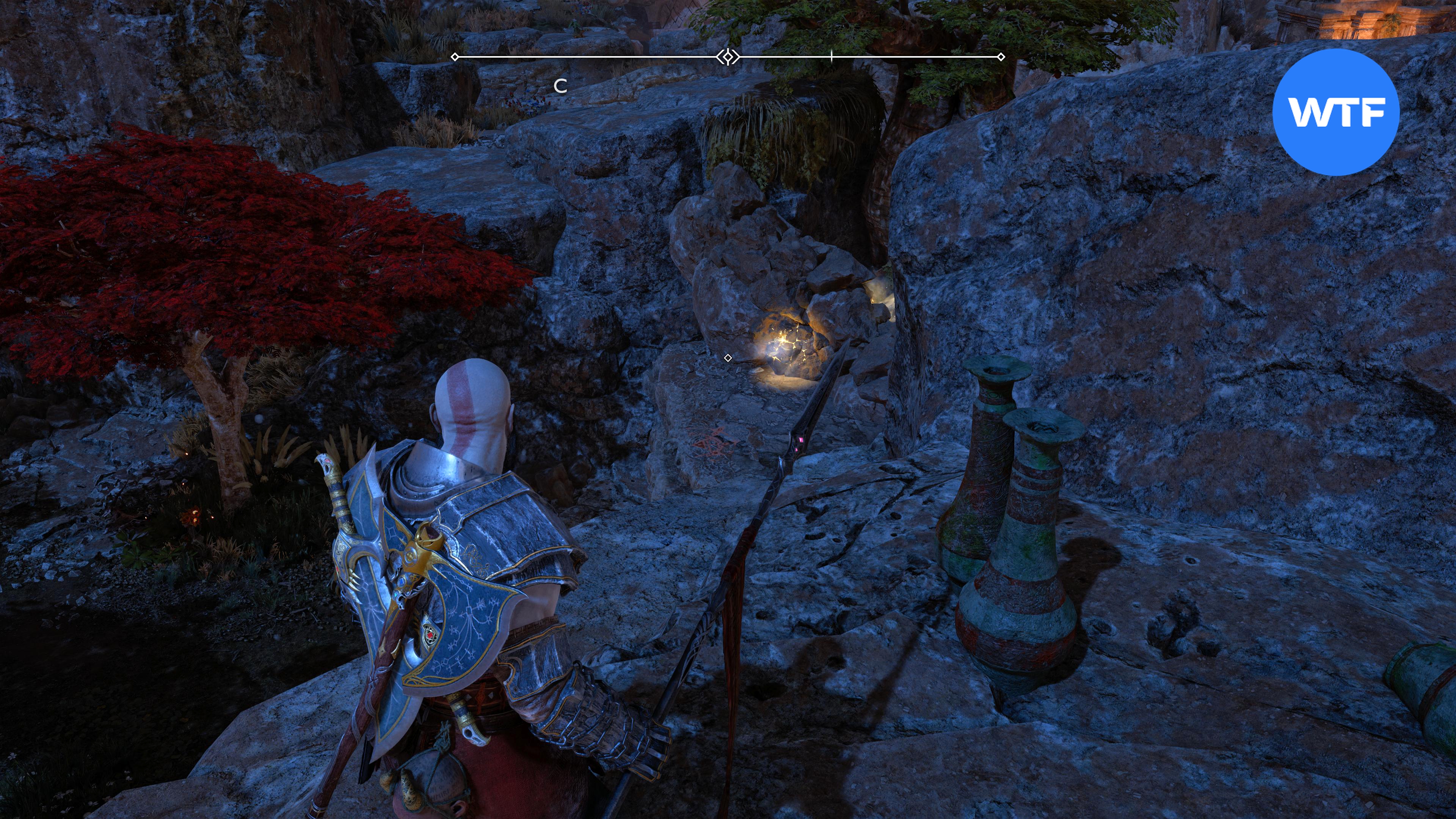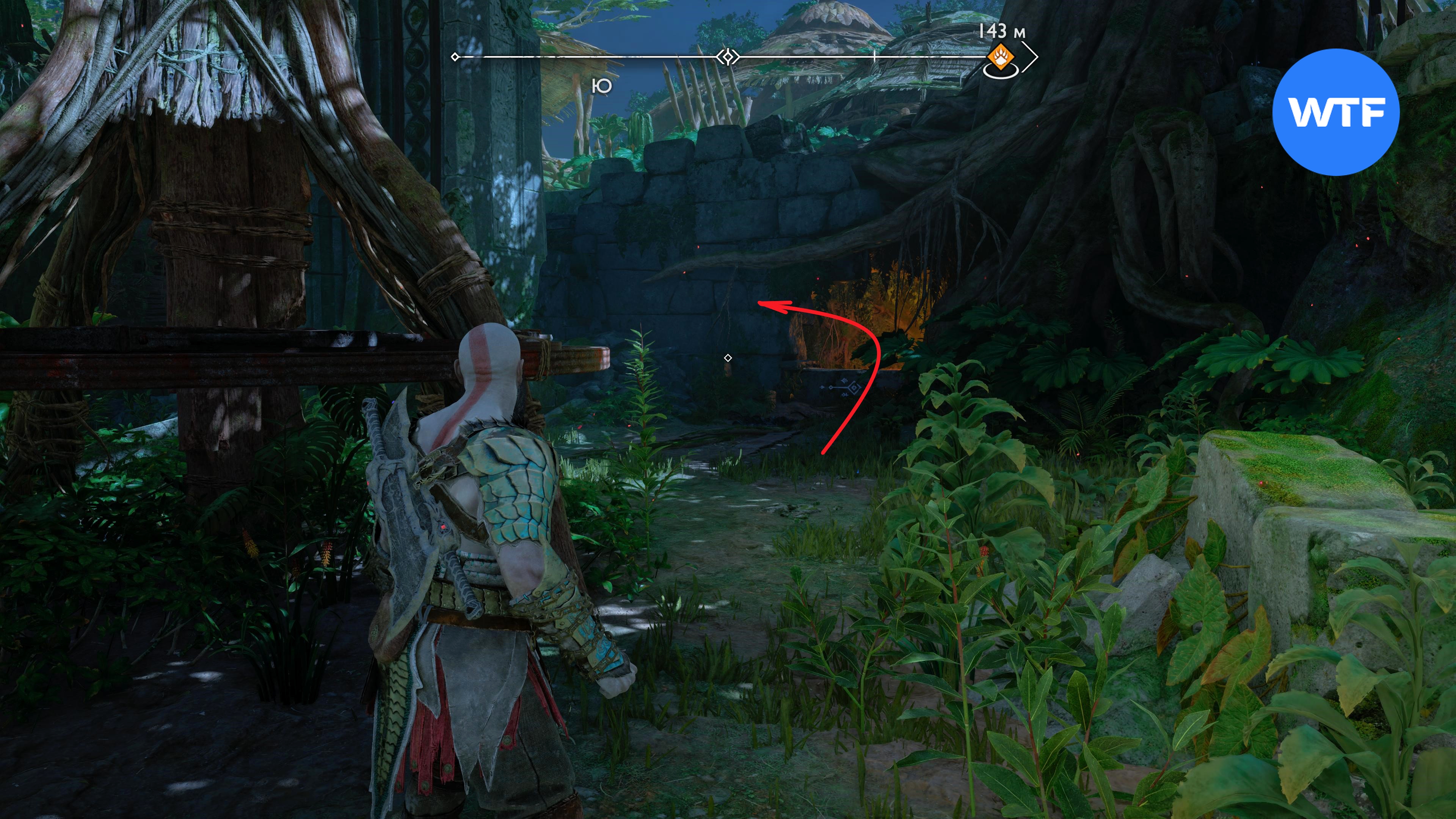 Вскоре после вторых ворот, в которые нужно кидать топор, Кратос снова должен будет метнуть копье в стену. После этого вы будете проходить мимо этого сундука.