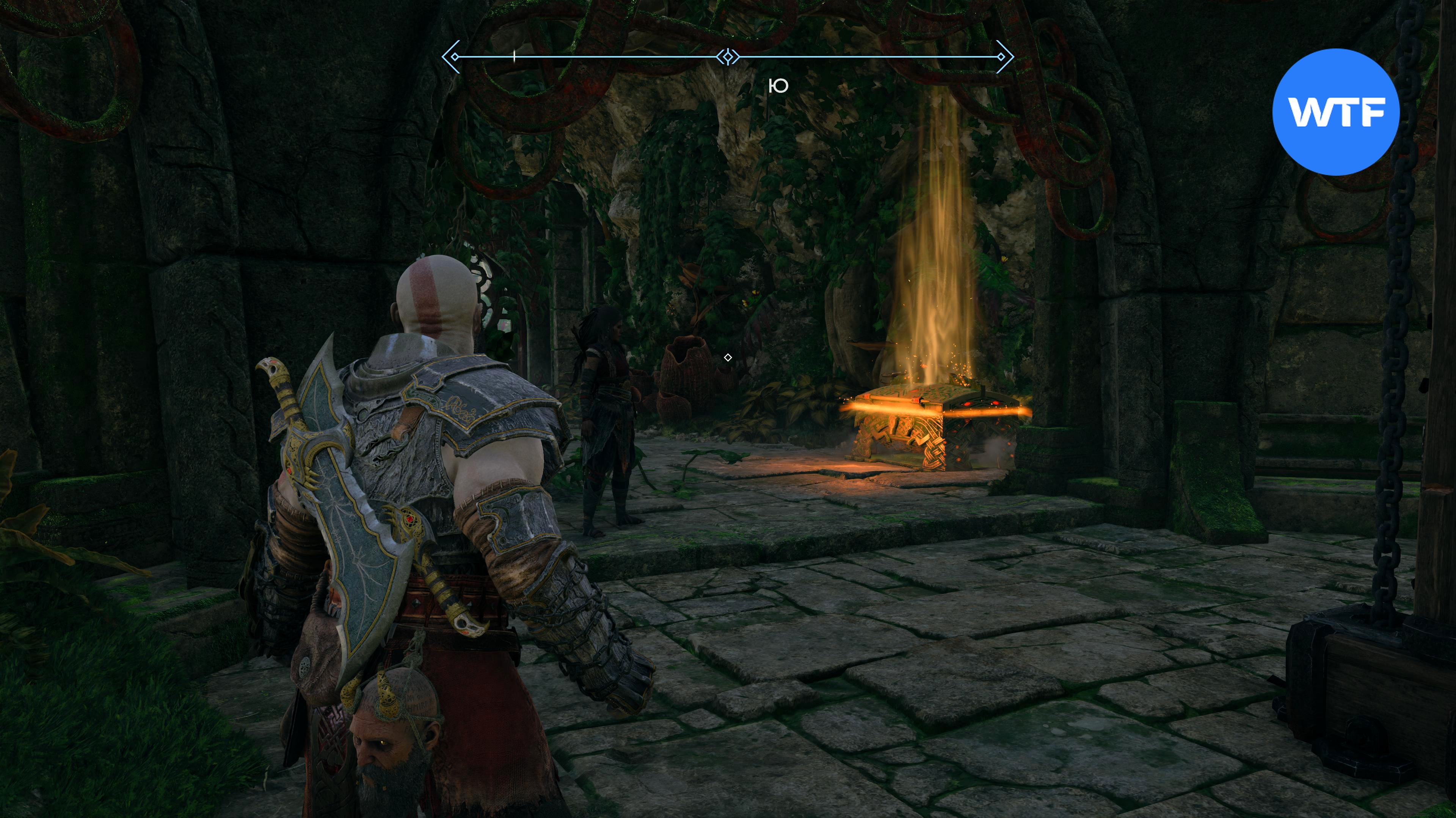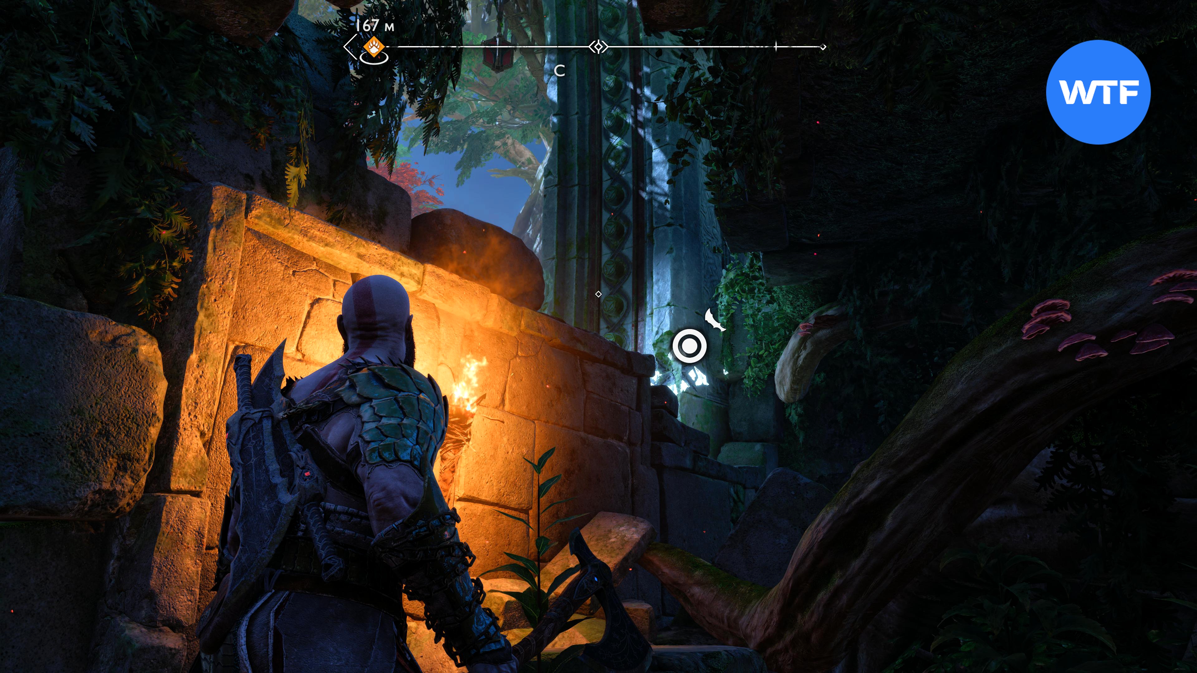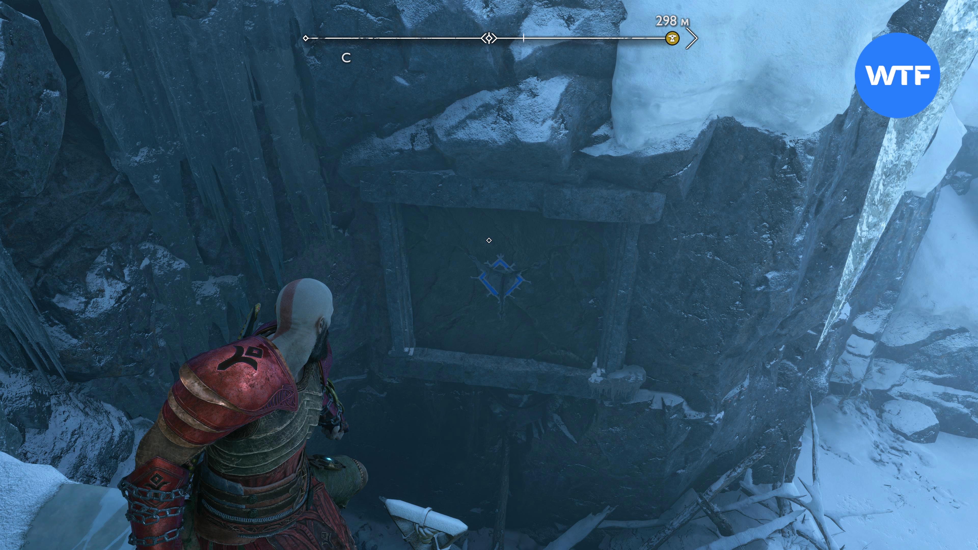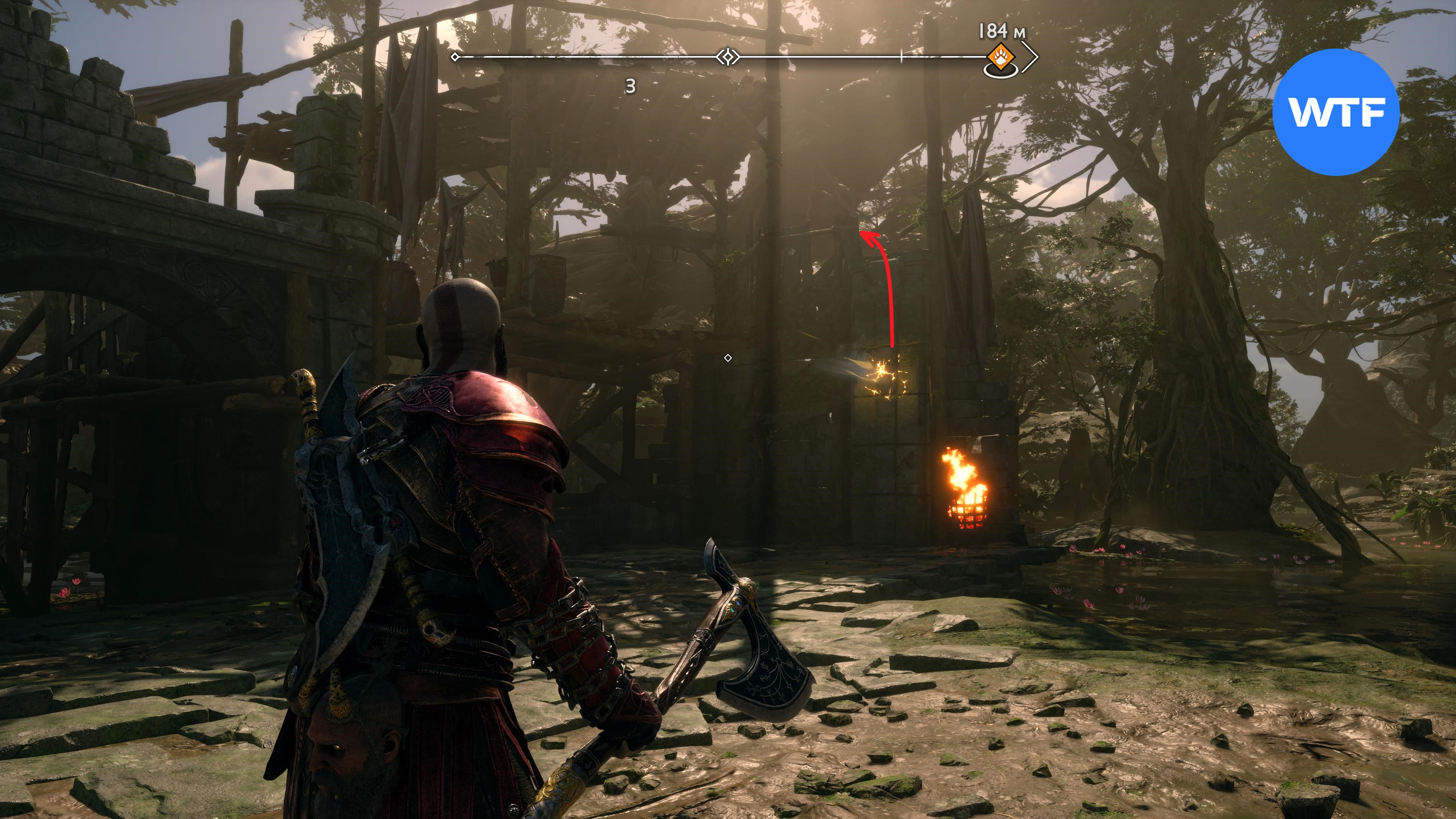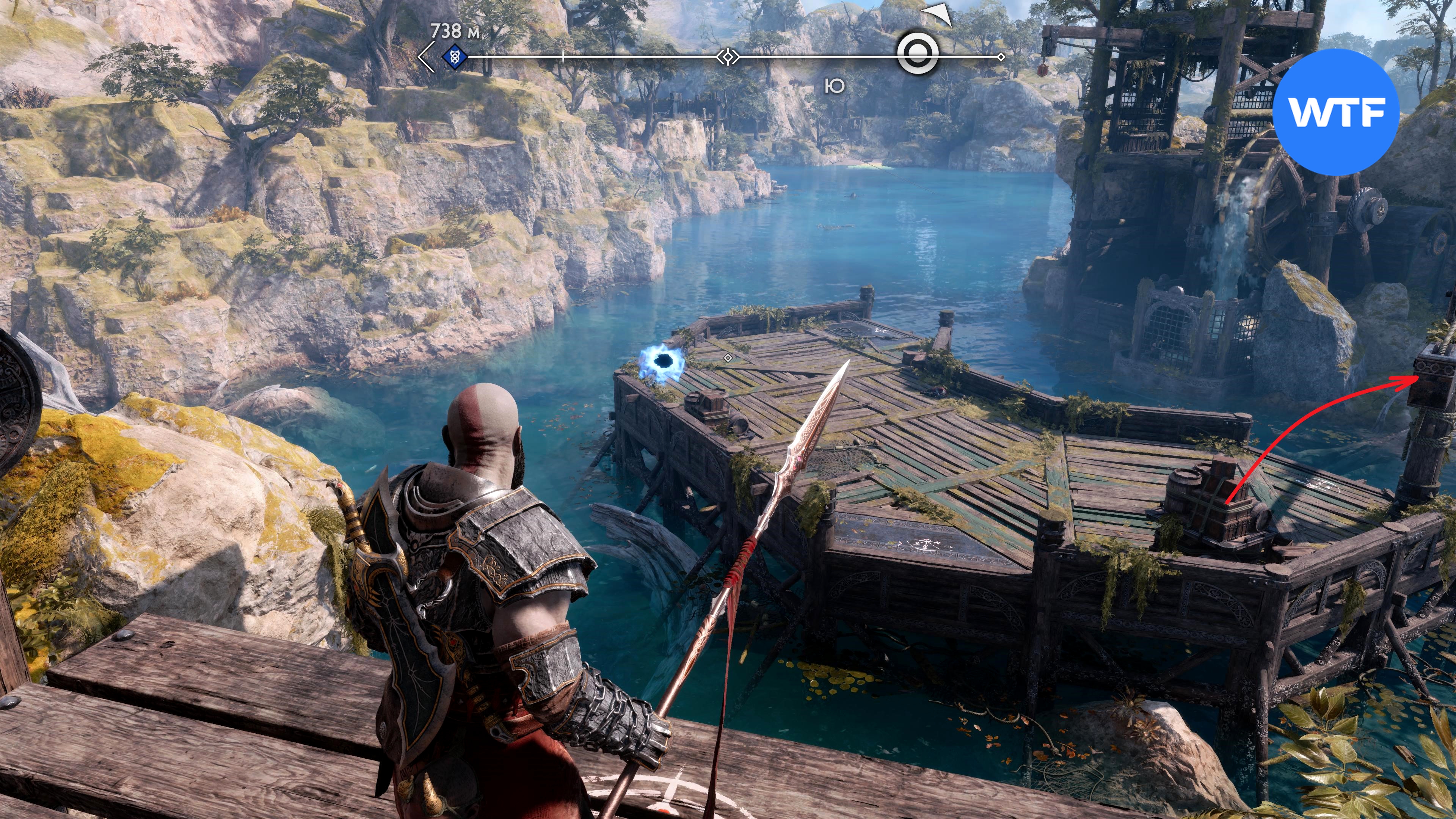 Вскоре после первых ворот, которые вам нужно открыть, замораживая замок, Кратос должен будет метнуть копье в колонну, чтобы продвинуться дальше. Сундук будет стоять у вас на пути.
