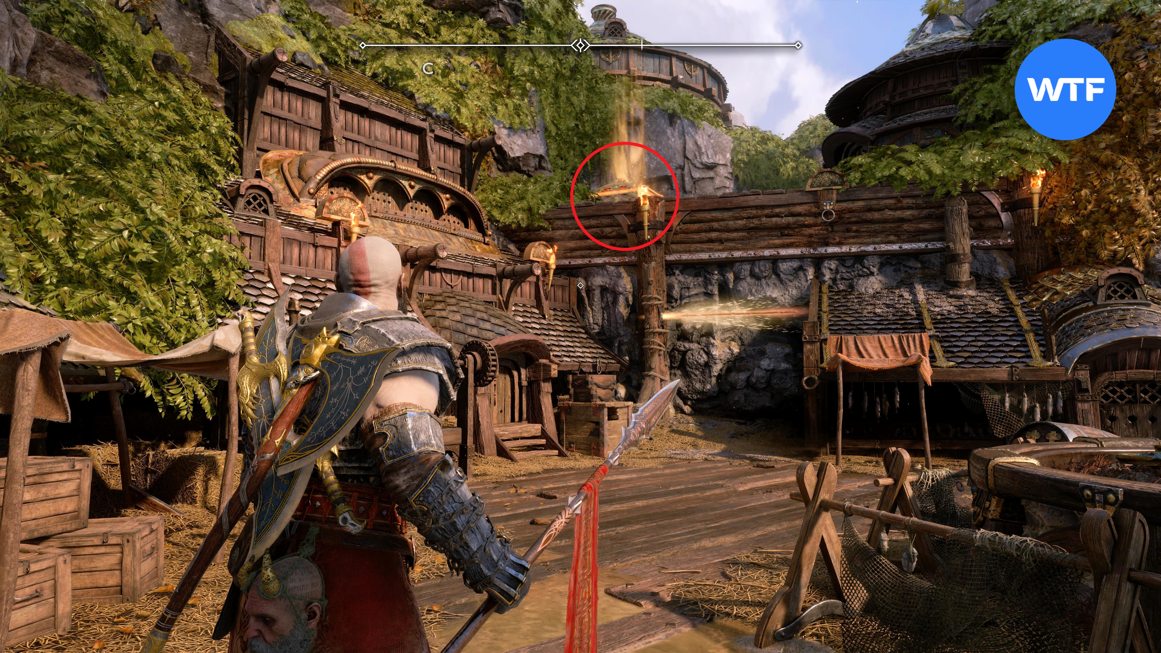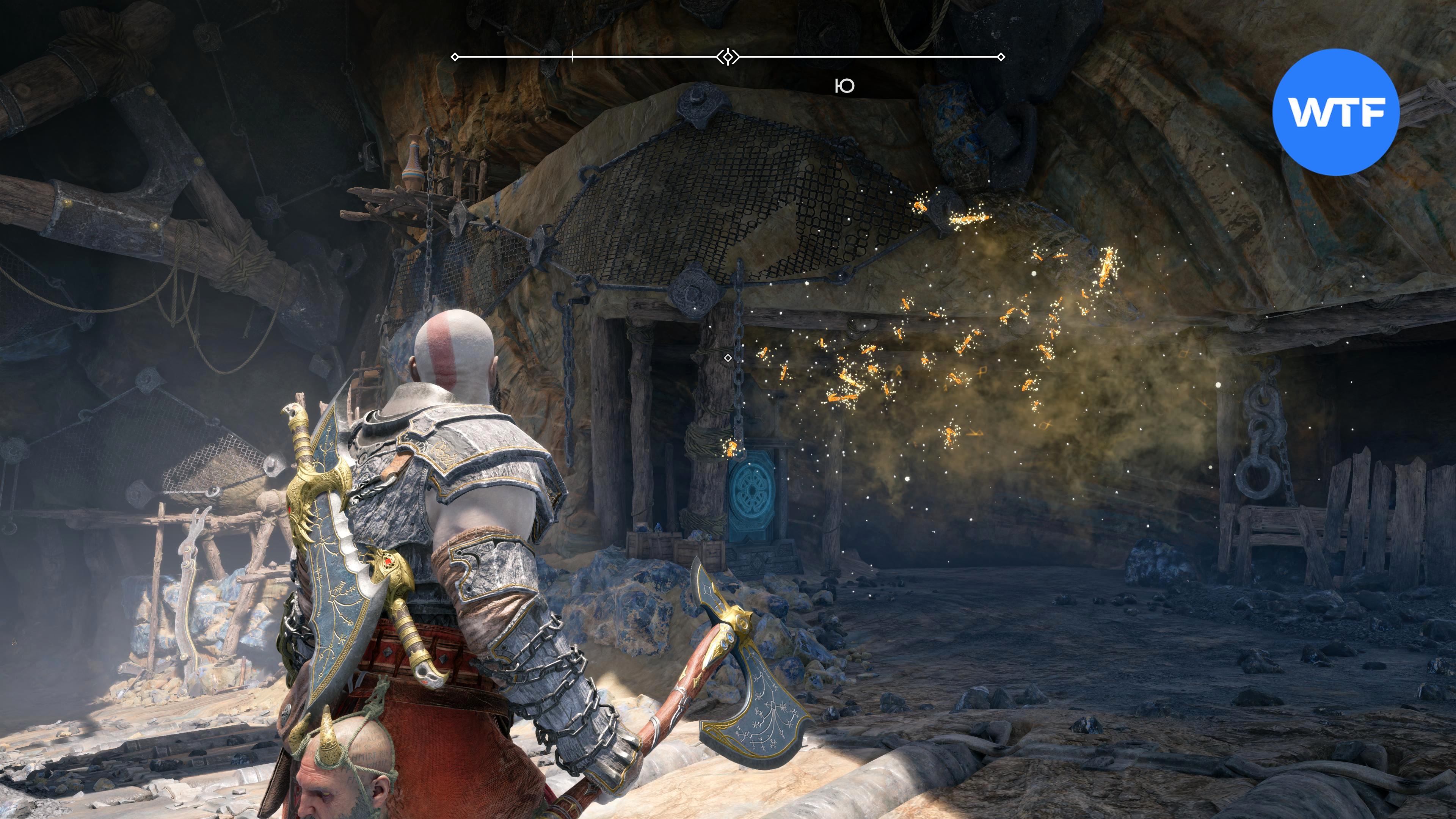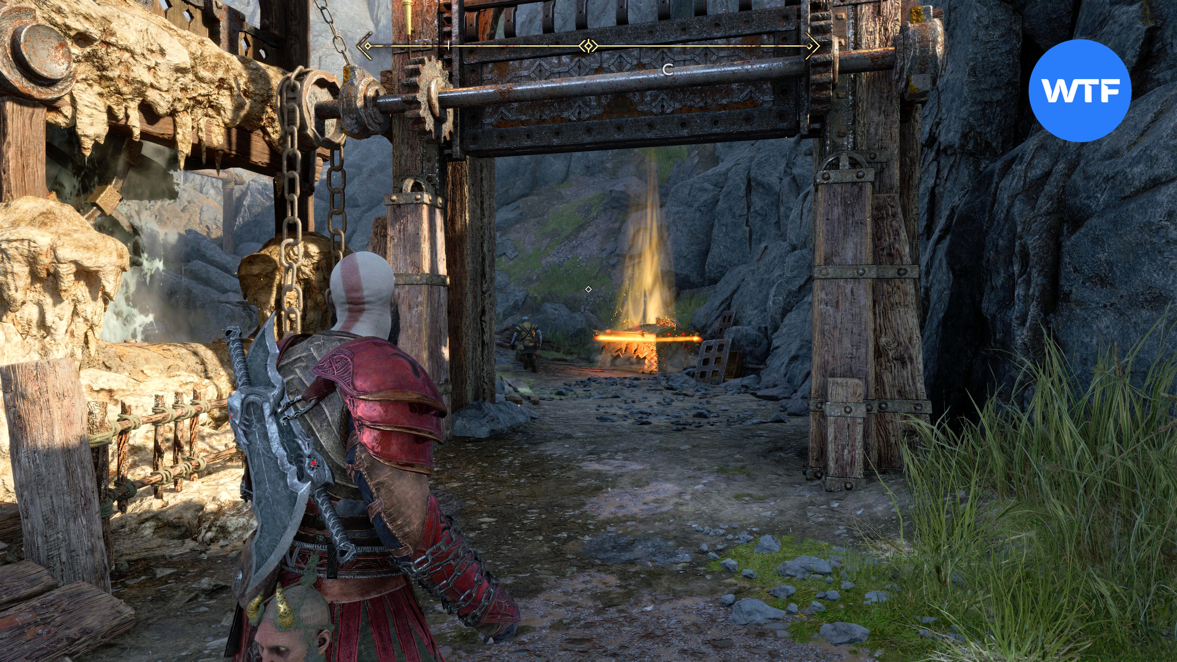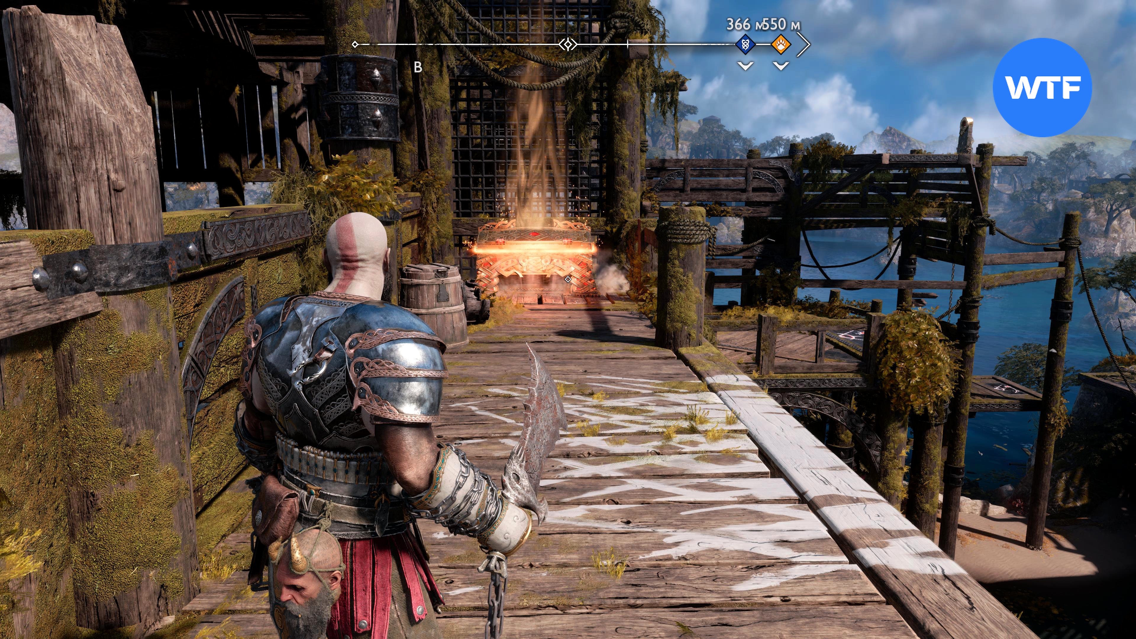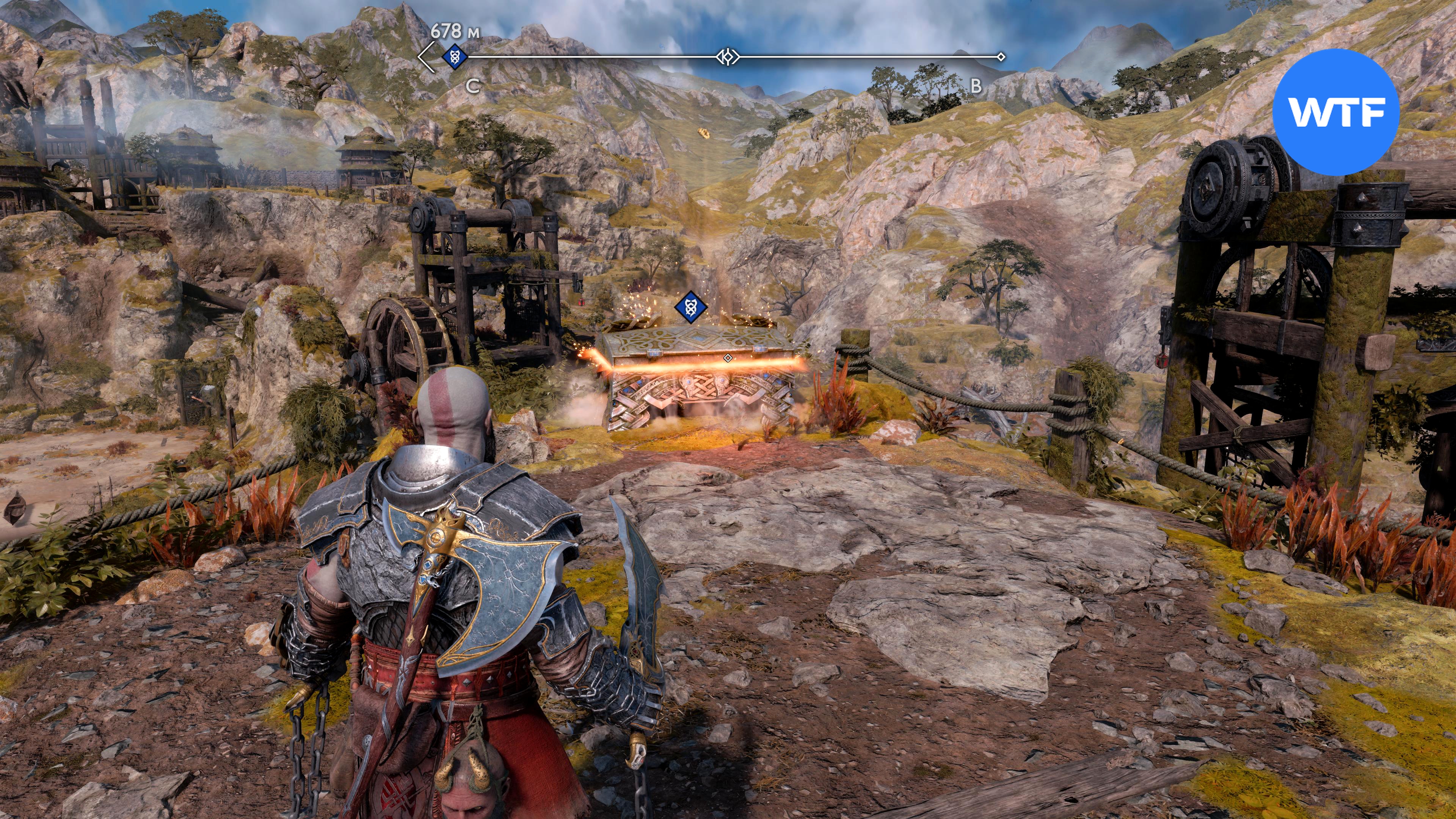 Вскоре после первых ворот, которые вам нужно открыть, замораживая замок, Кратос должен будет метнуть копье в колонну, чтобы продвинуться дальше. Сундук будет стоять у вас на пути.