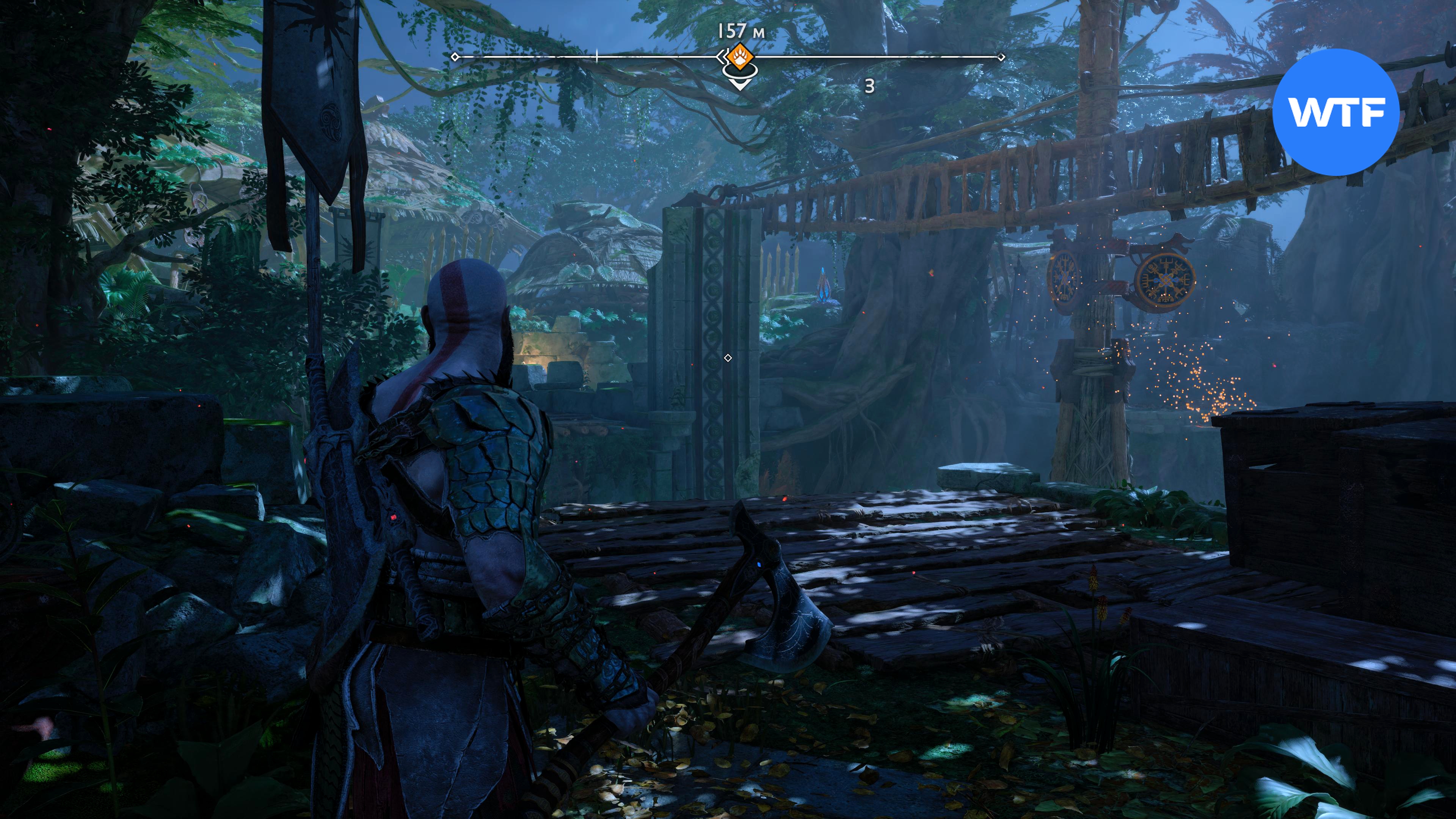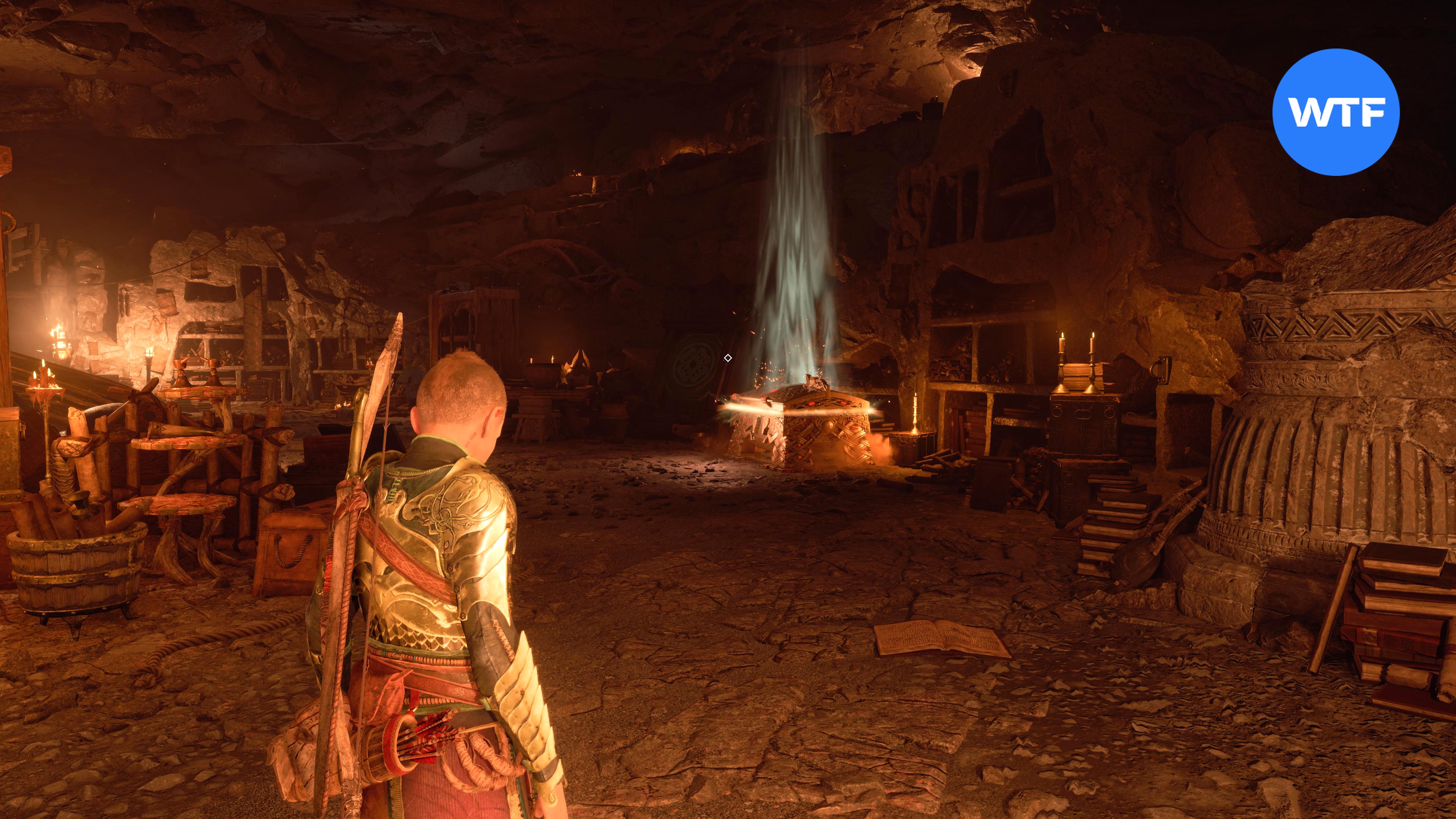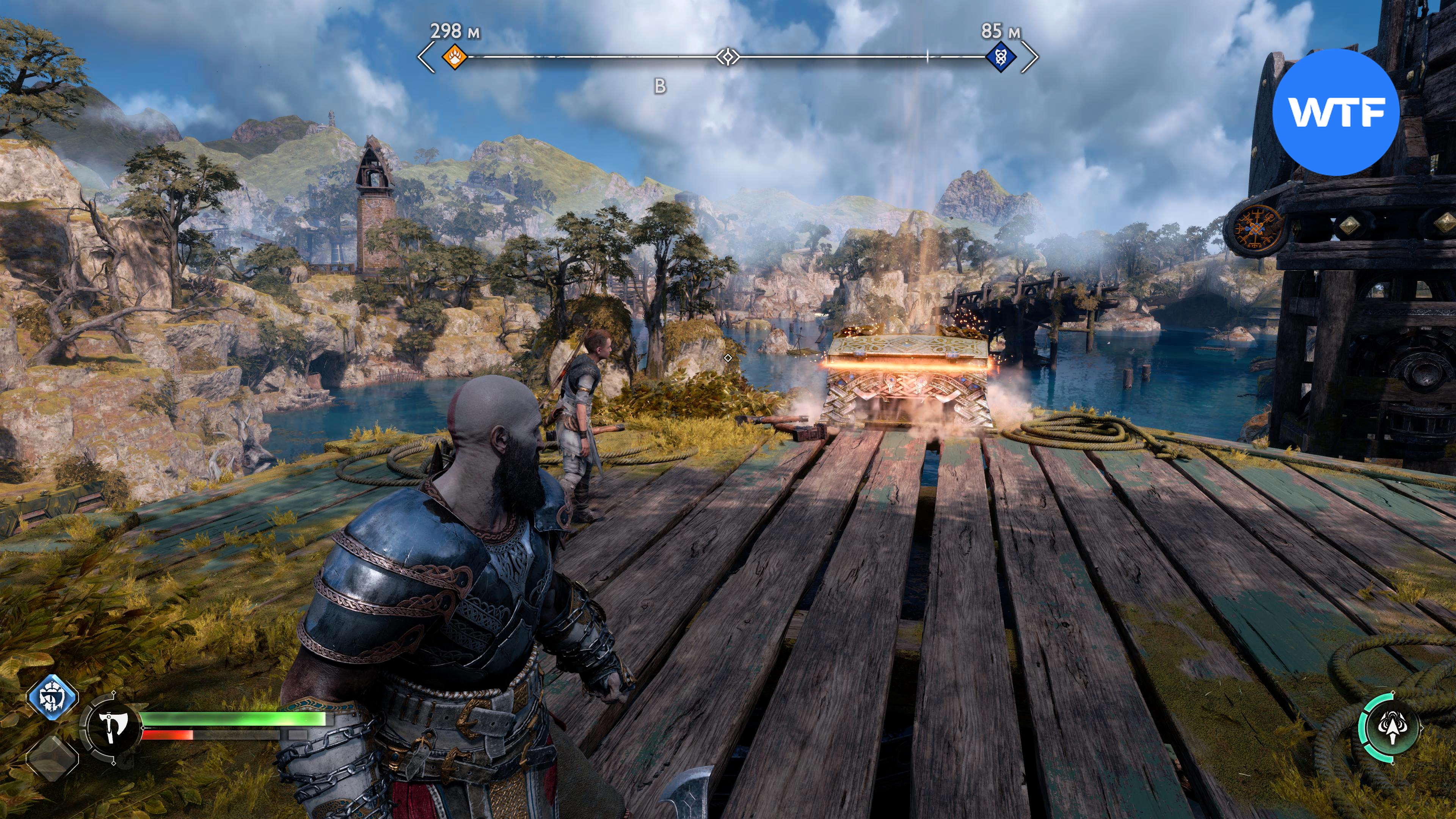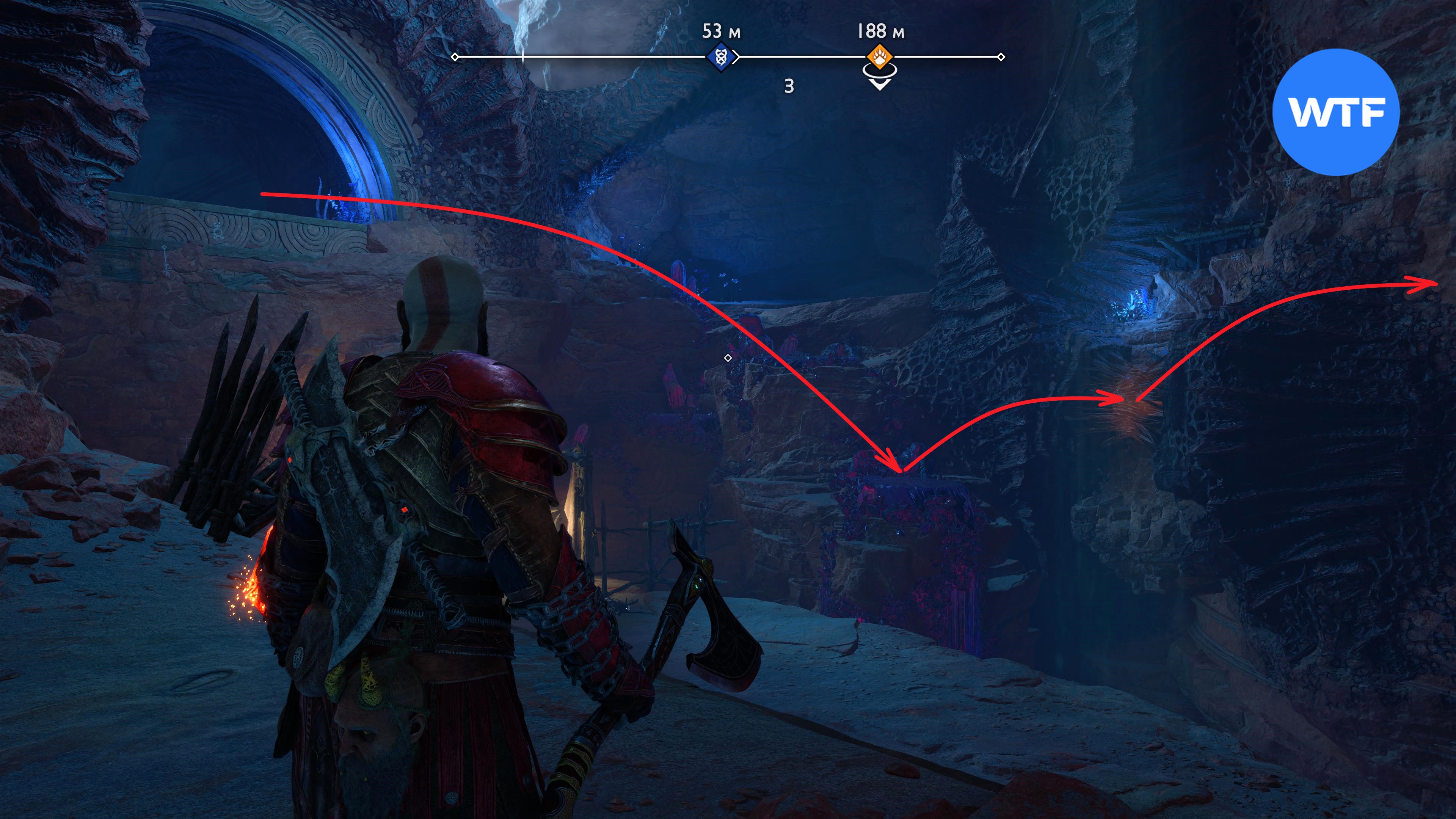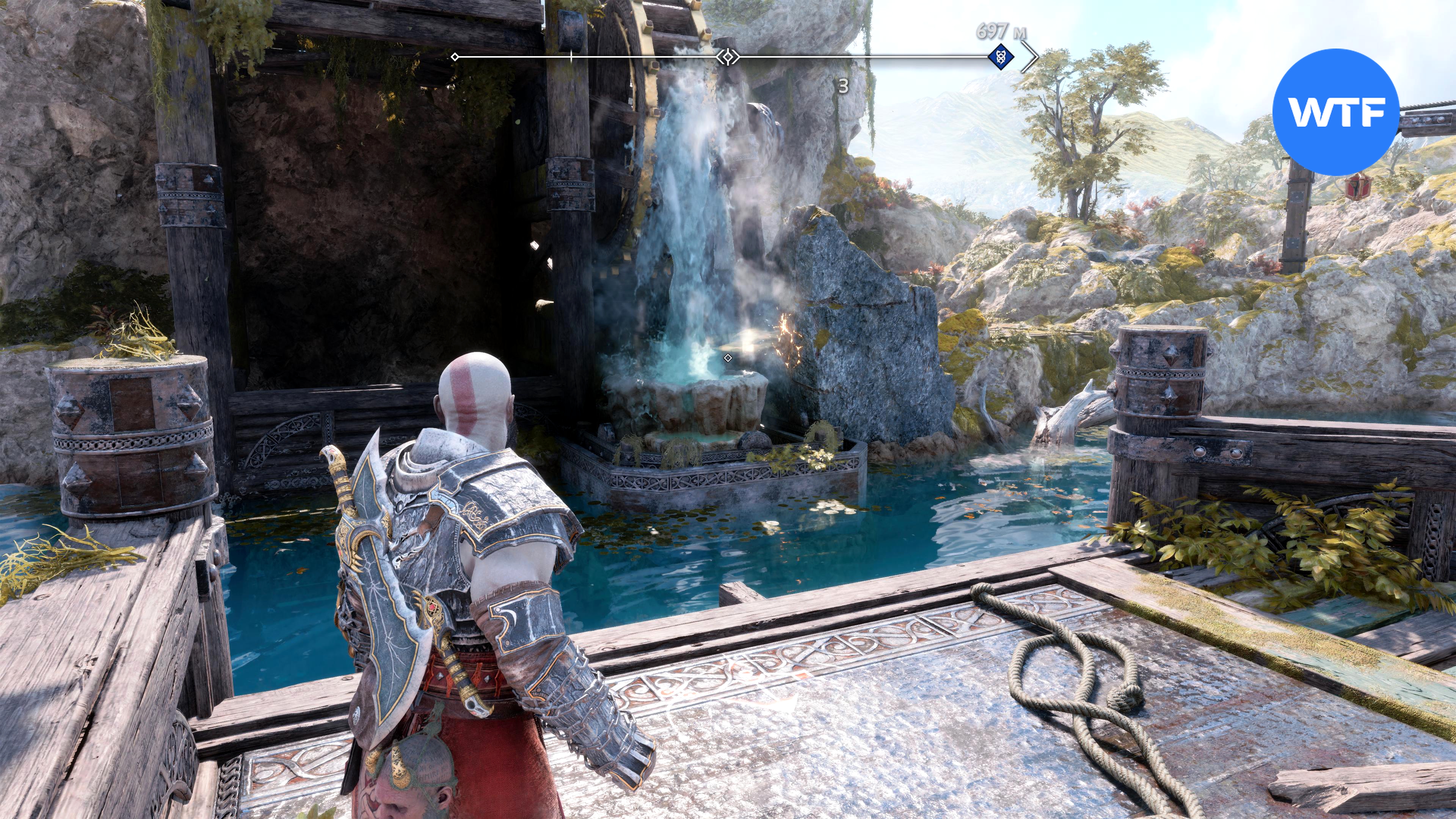 Вскоре после первых ворот, которые вам нужно открыть, замораживая замок, Кратос должен будет метнуть копье в колонну, чтобы продвинуться дальше. Сундук будет стоять у вас на пути.