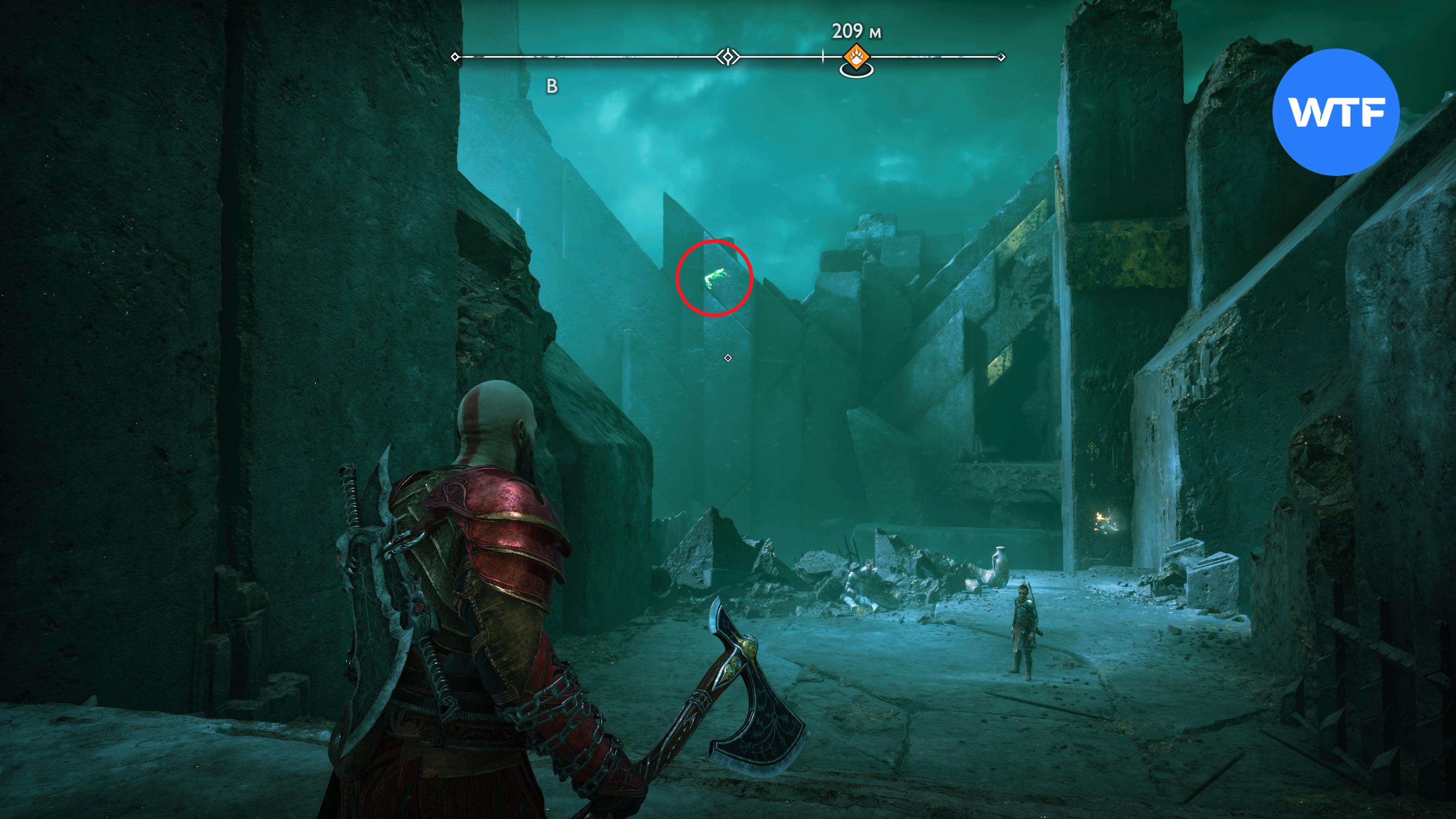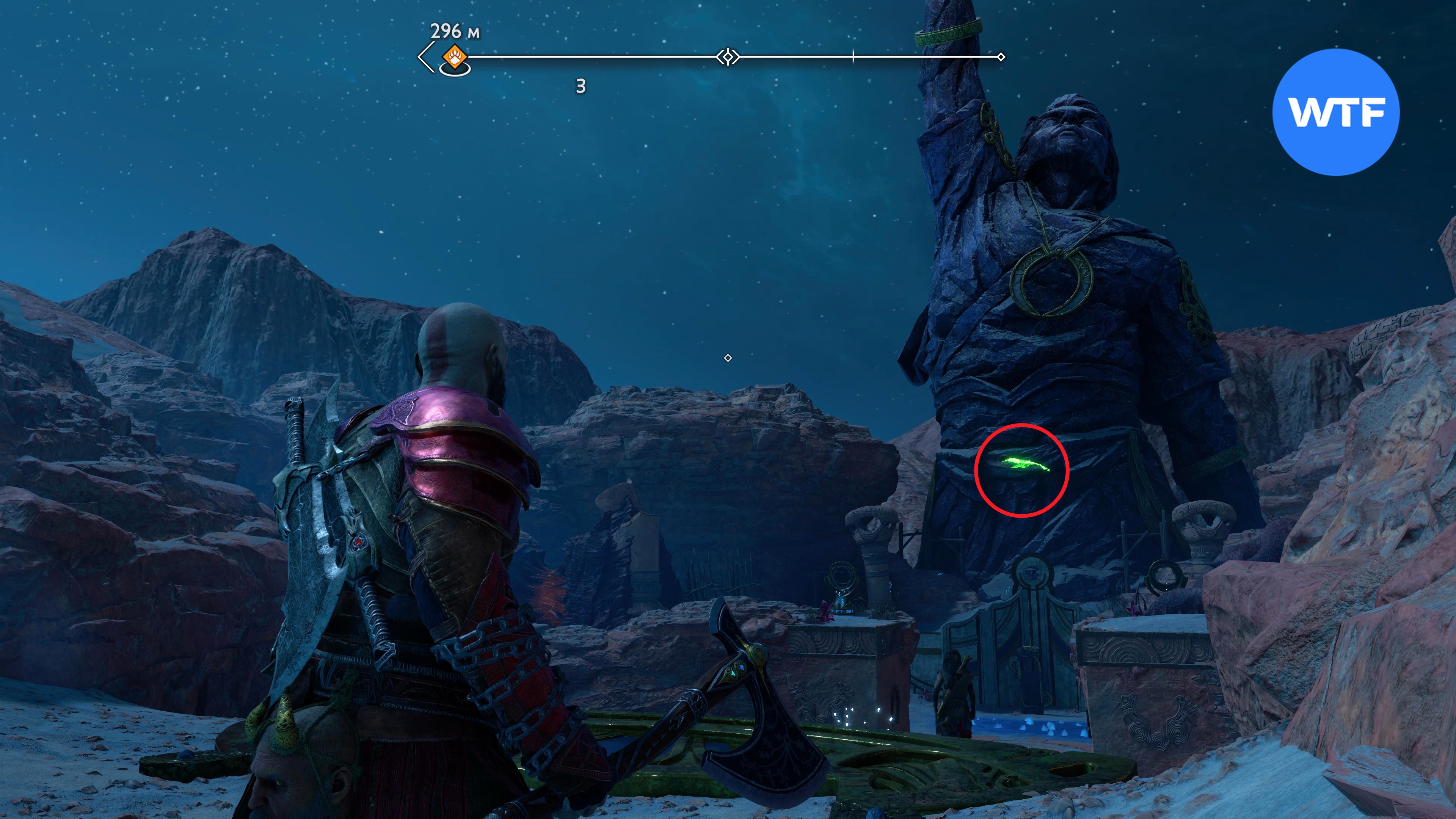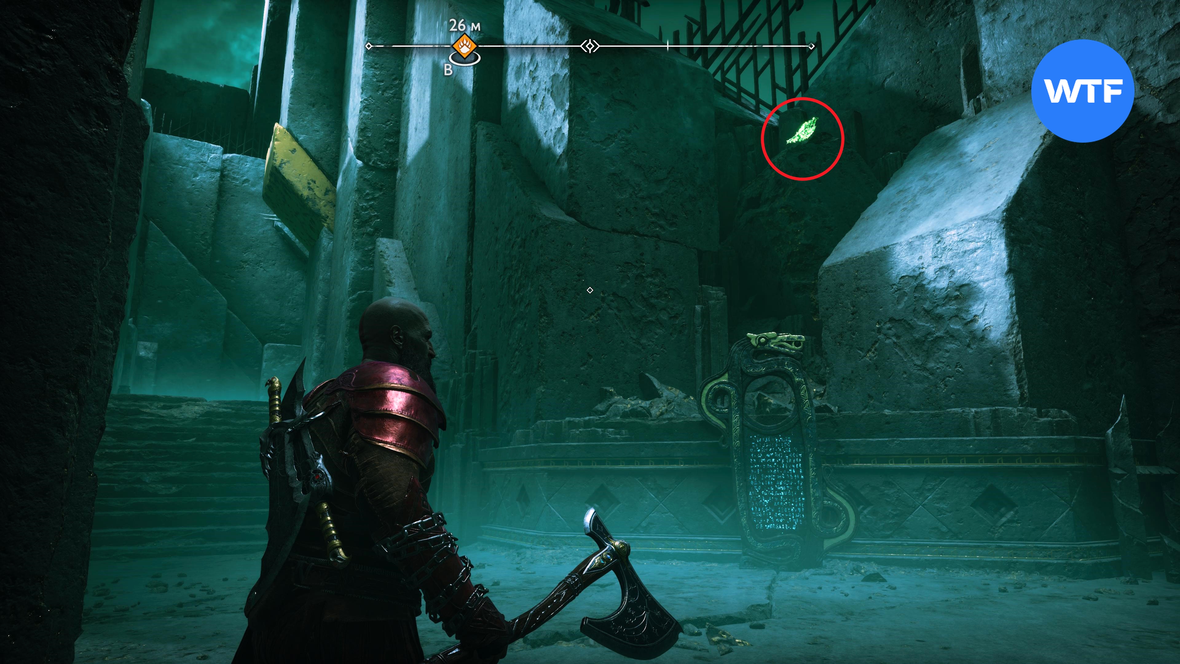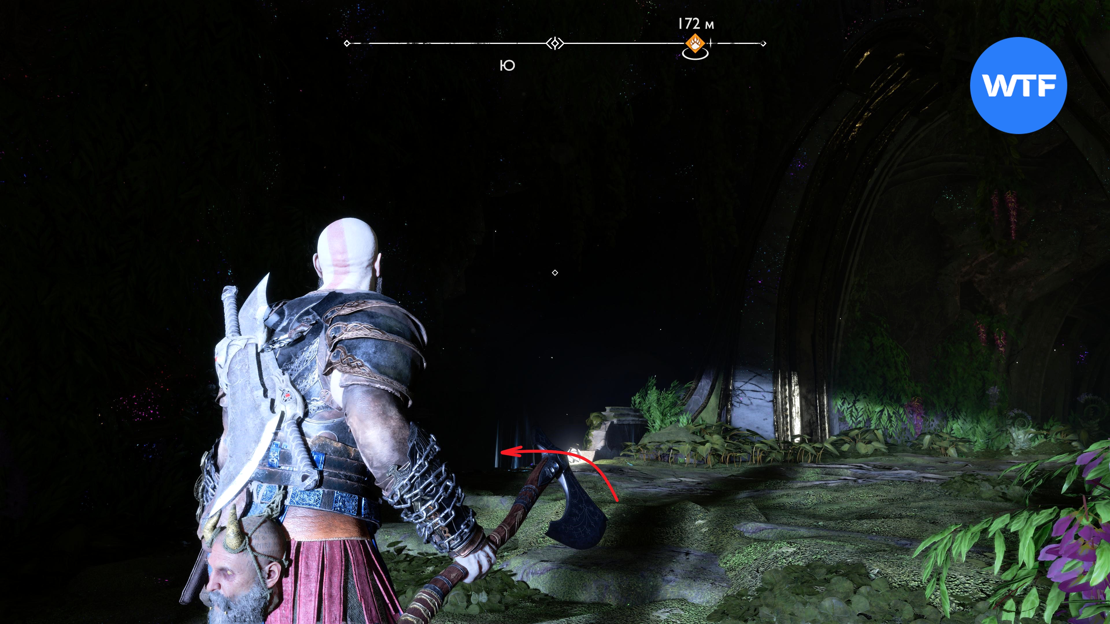 Завершив сюжетную задачу «Воссоединение», вы должны вернуться к мистическим вратам с другой стороны. Ворон сидит над меткой легенды. Если идти от мистических врат, то вам нужно повернуть налево, залезть на уступ и пройти по коридору немного вперед.