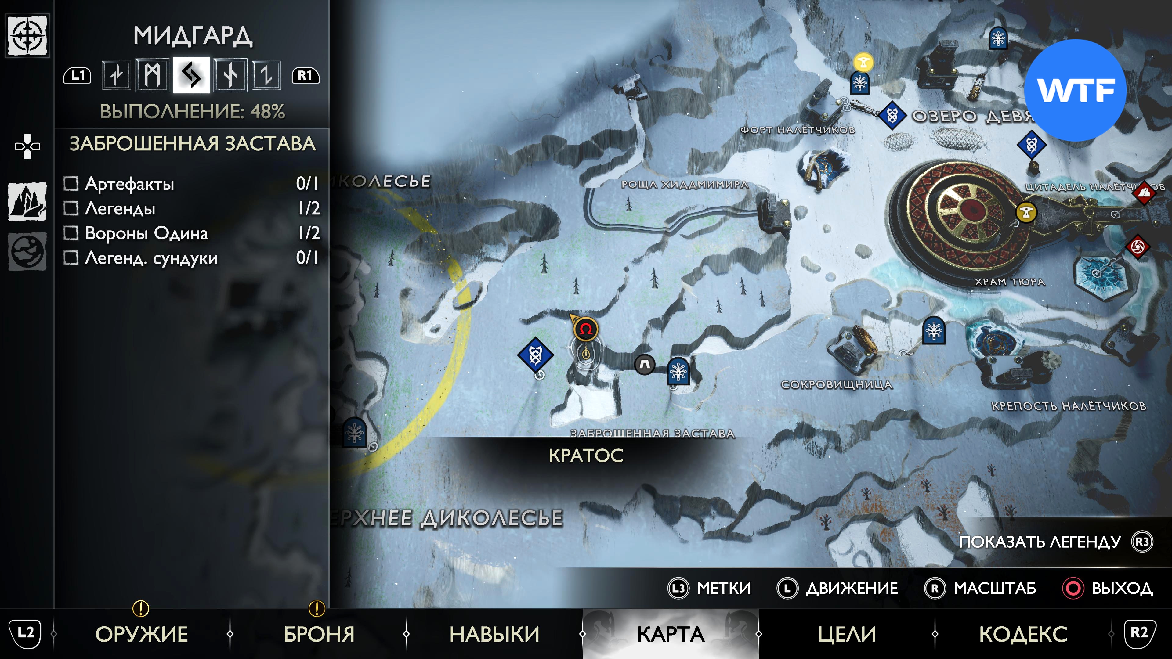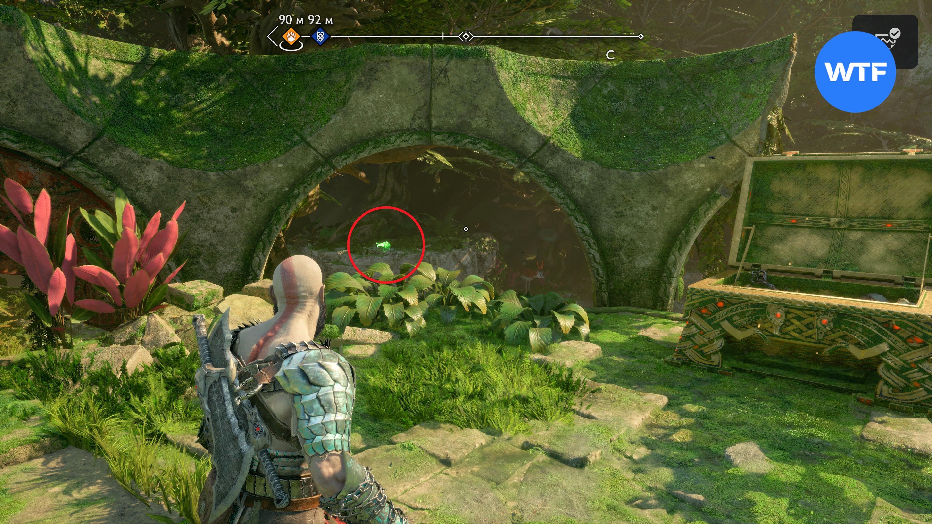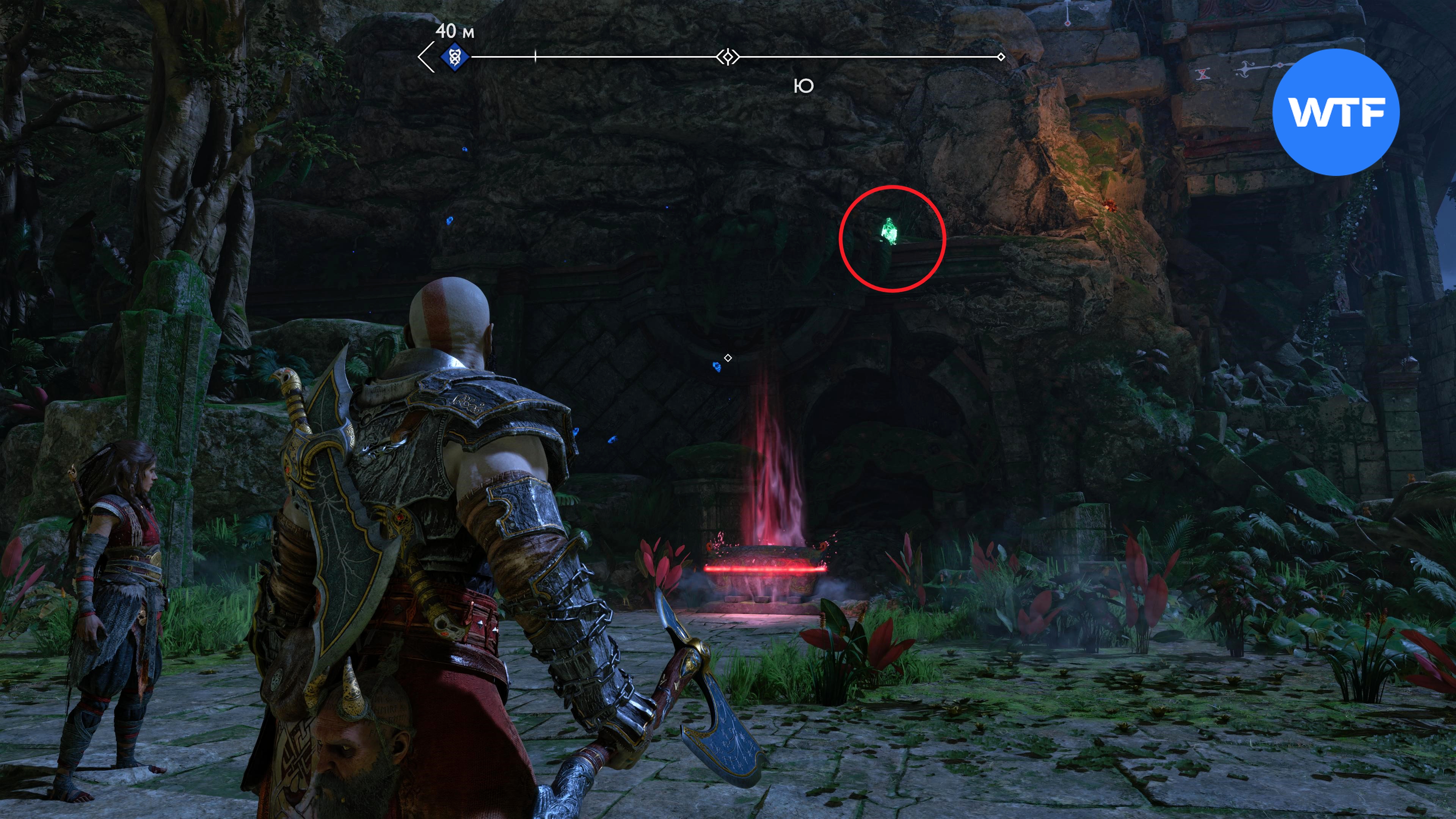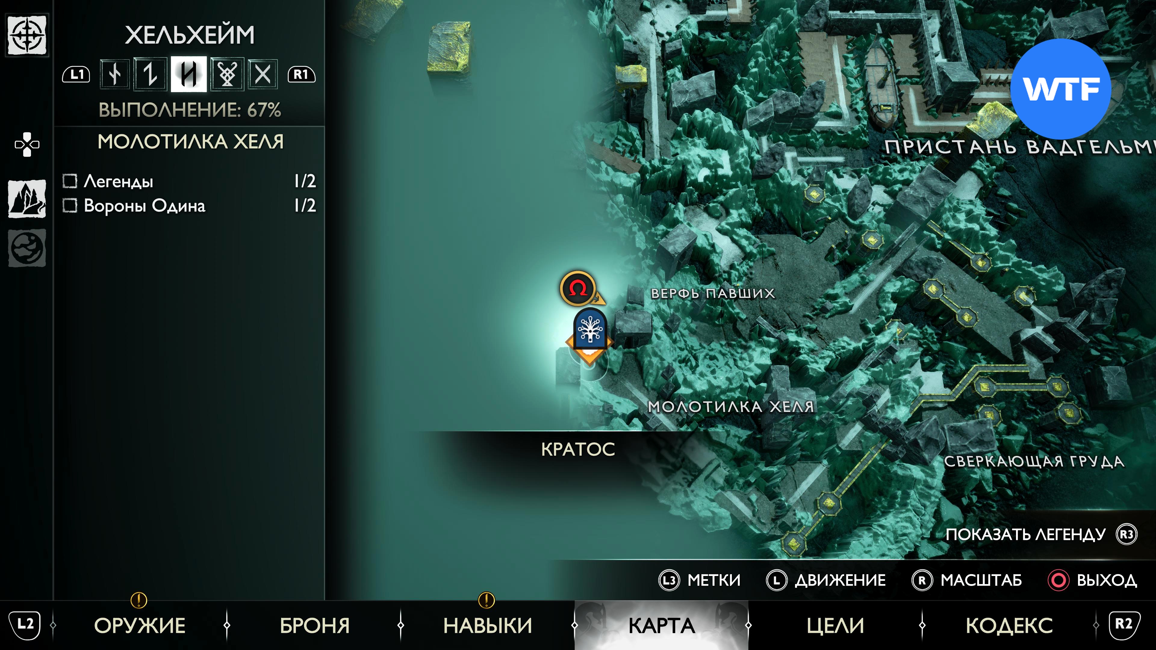 Завершив сюжетную задачу «Воссоединение», вы должны вернуться к мистическим вратам с другой стороны. Ворон сидит над меткой легенды. Если идти от мистических врат, то вам нужно повернуть налево, залезть на уступ и пройти по коридору немного вперед.