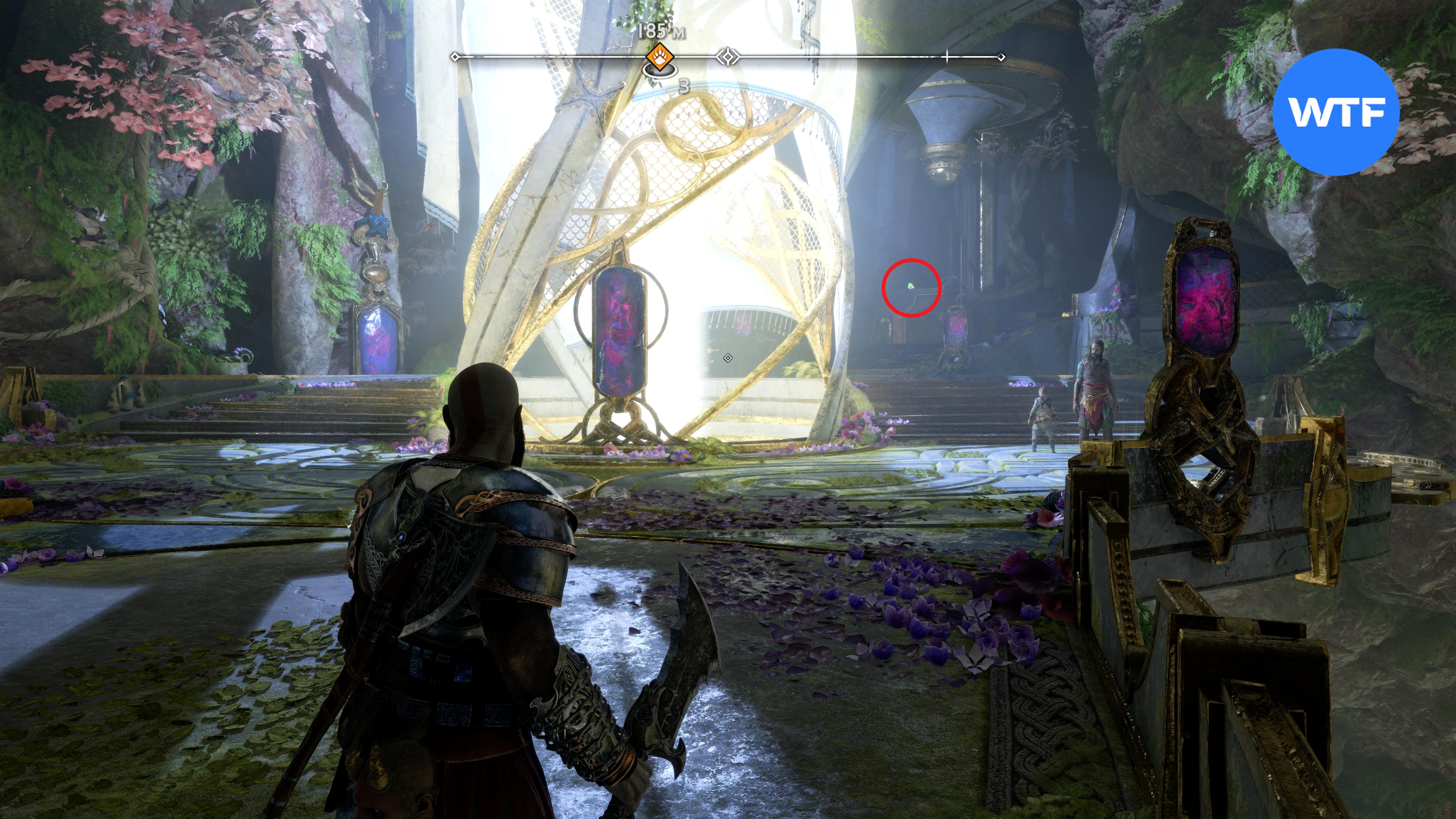 После завершения сюжетной задачи «Расплата» в Ванахейме вы получите новую способность, которая позволит вам открыть проход в Запретные пески к северо-западу от Равнин. Можно взять квест «Святилище эльфов» в Лагере Фрейра и метка приведет вас прямо сюда.