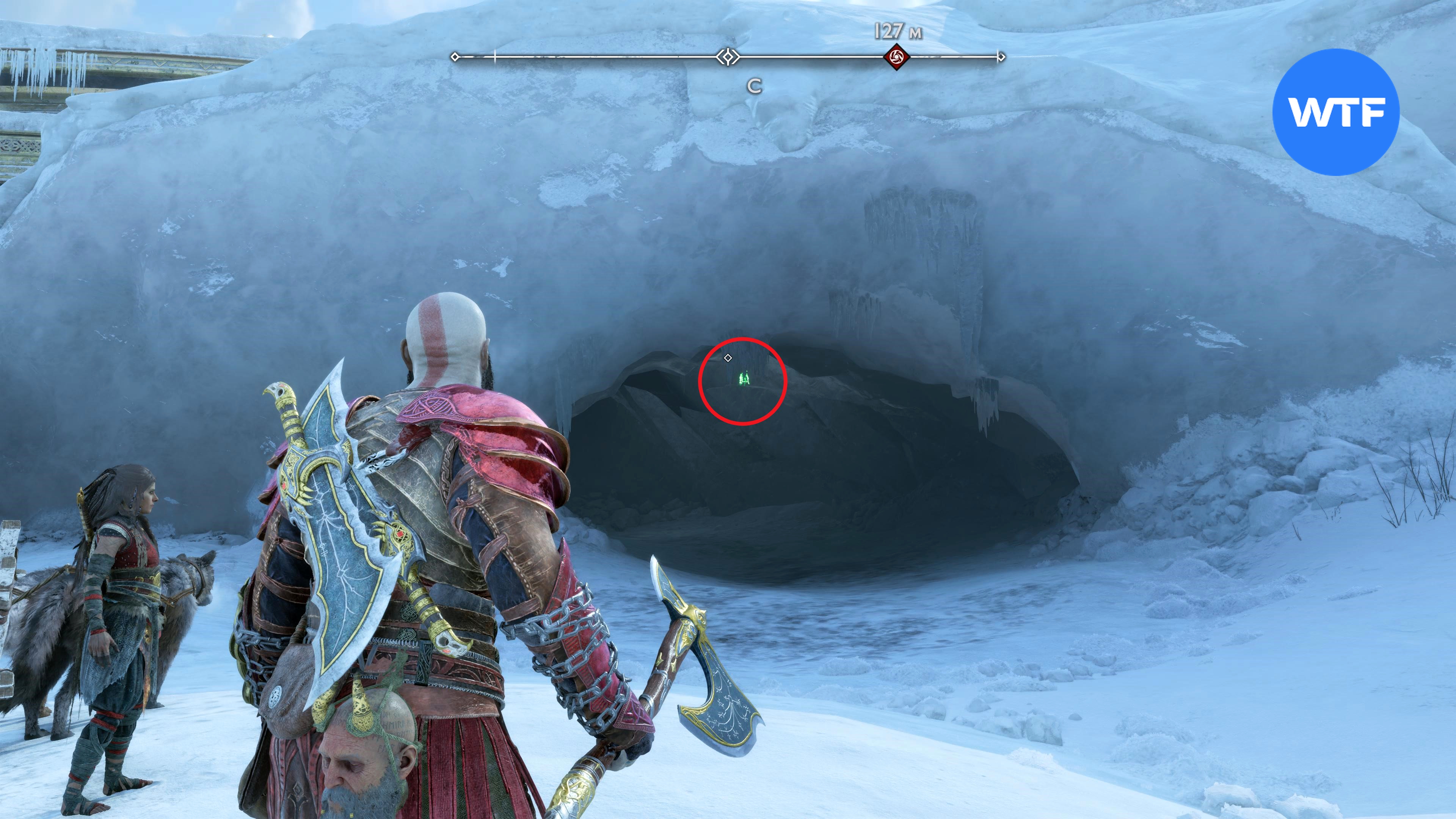 Ворон сидит в ледяной пещере к югу от стены храма Тюра. Для точного места ориентируйтесь на карту со скриншота 2.