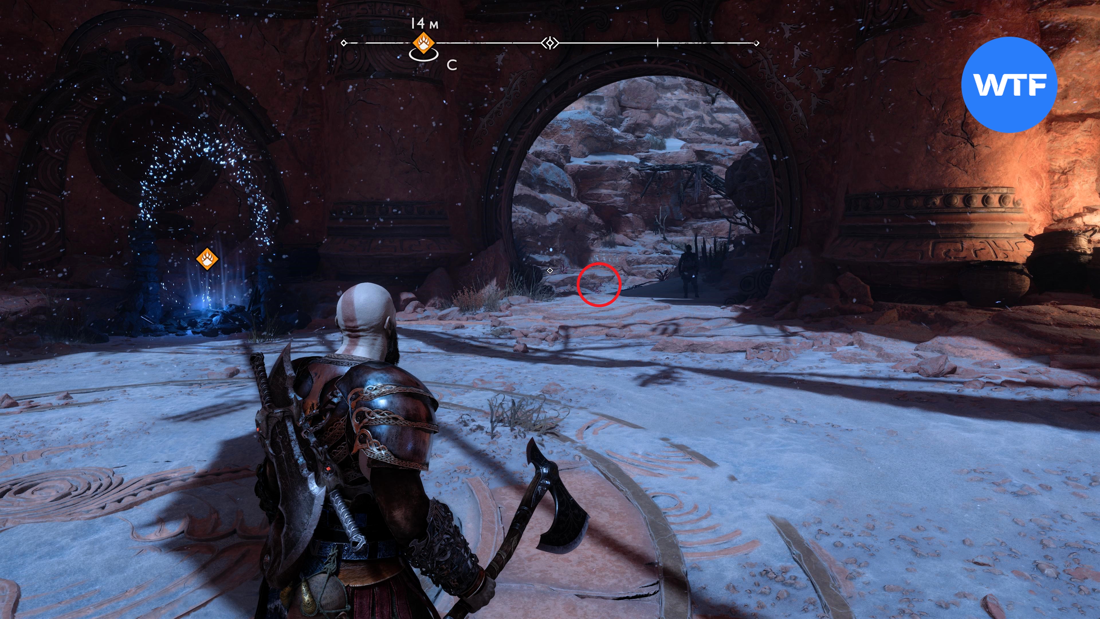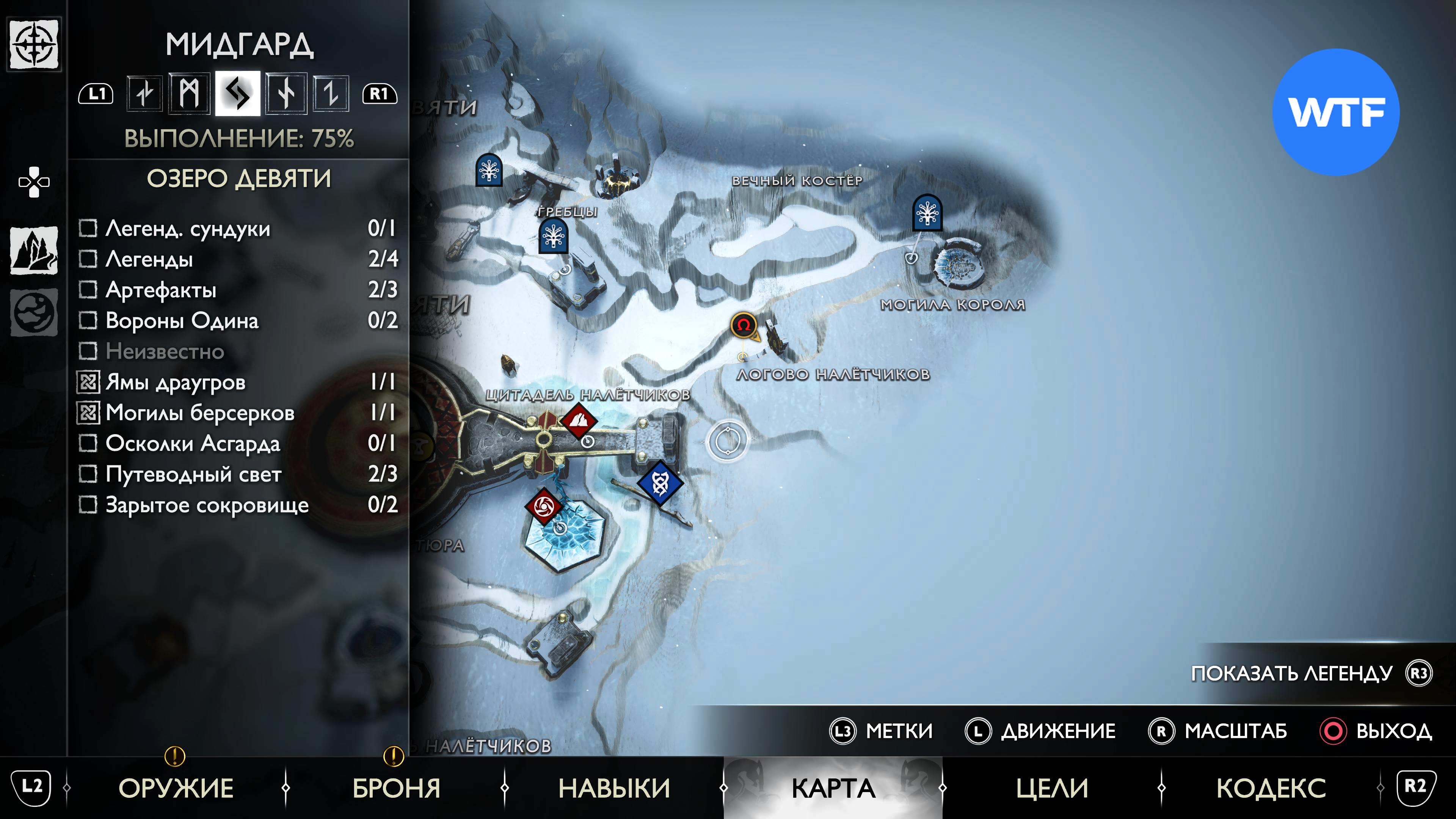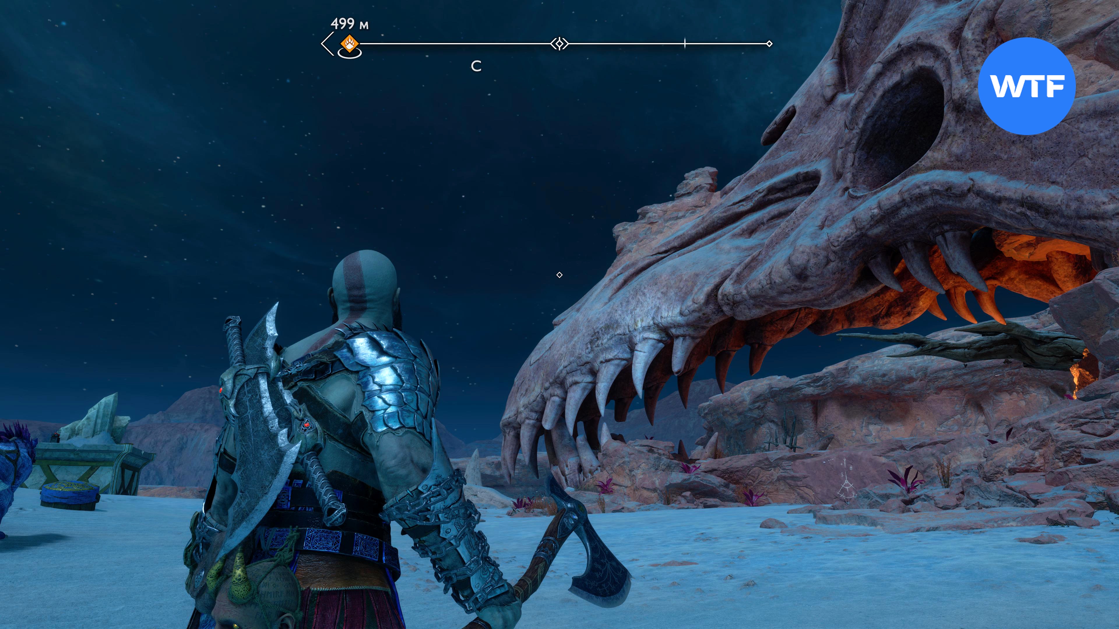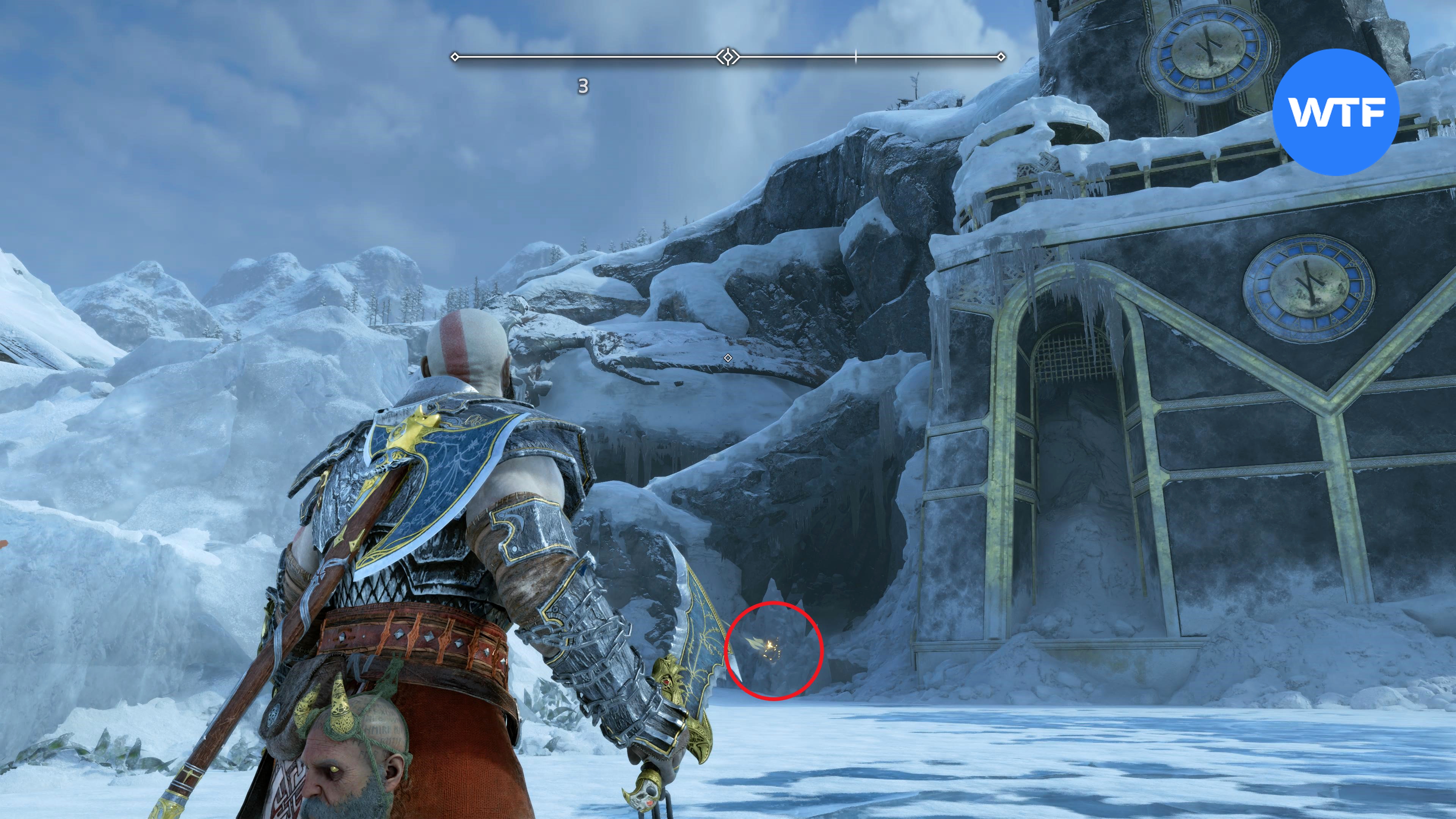 - Где сокровище: в Мидгарде, слева от одной из башен на западе Озера Девяти, есть ледяная скала, которую можно разрушить копьем. За ней открывается проход, который в итоге и приведет вас к дракону с сокровищем.