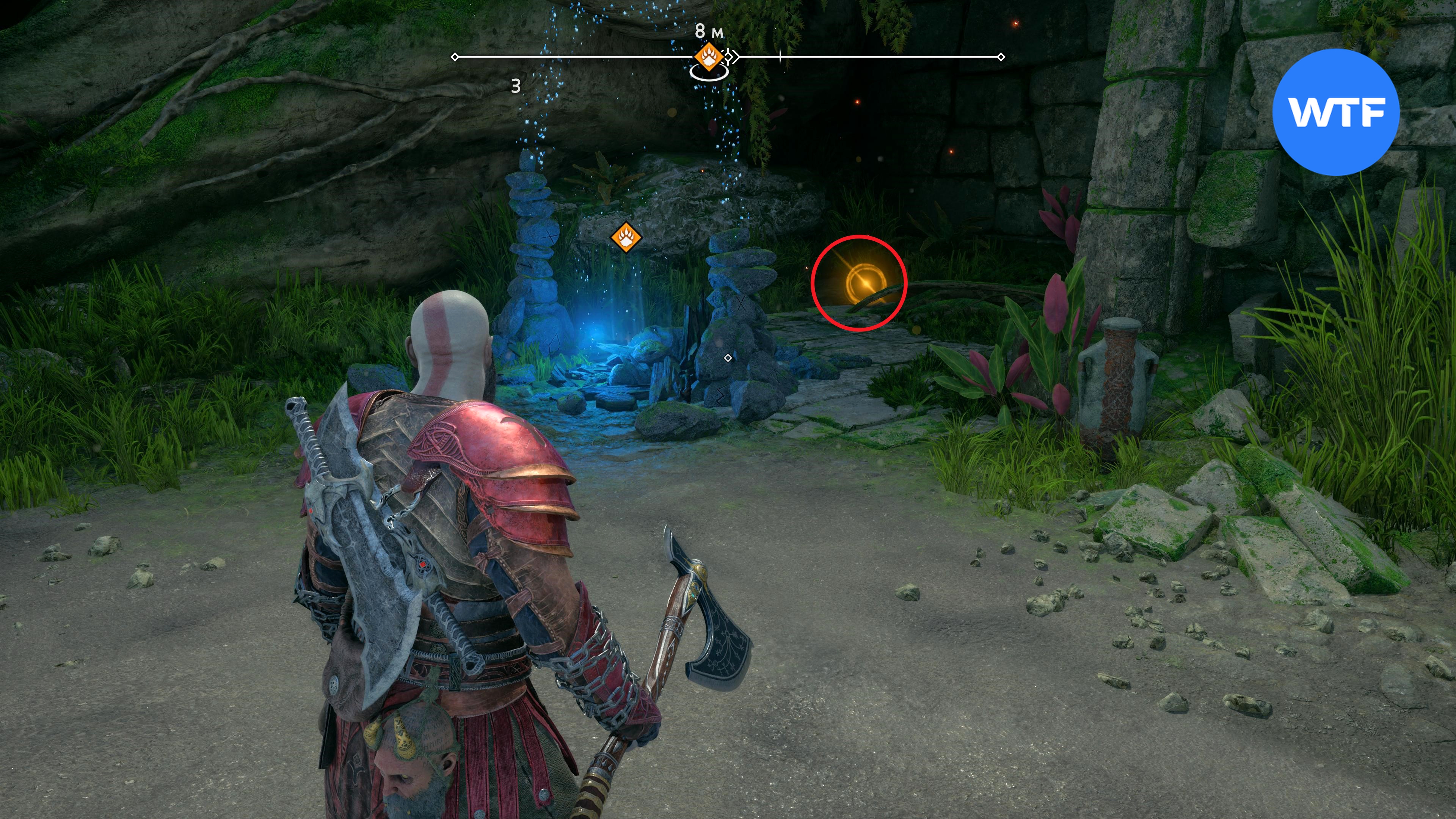 Где сокровище: в локации Водопад богини на юге Дельты реки. Вас приведет туда дополнительный квест «Беспокойство Фрейи». Поднимитесь на верхнюю площадку с тремя водопадами, после подъема сокровище будет светиться на земле справа от вас.