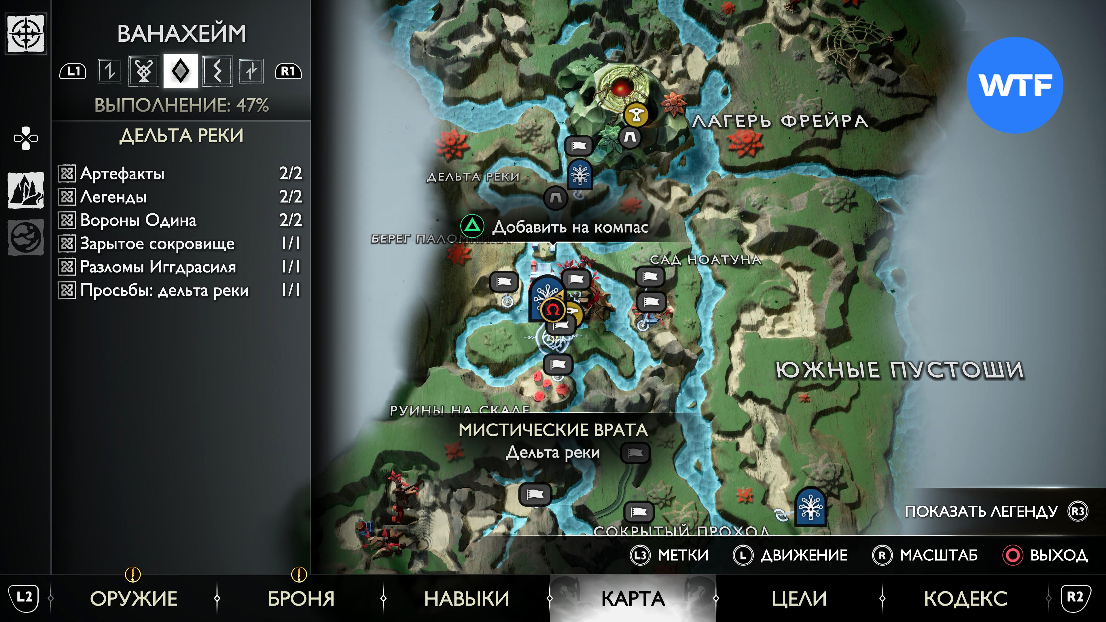 - Где карта: в эту часть Ванахейма вы сможете попасть на лодке после завершения сюжетной задачи «Расплата». Вас приведет сюда дополнительный квест «Беспокойство Фрейи», который автоматически всплывает, когда вы плывете через Дельту реки.