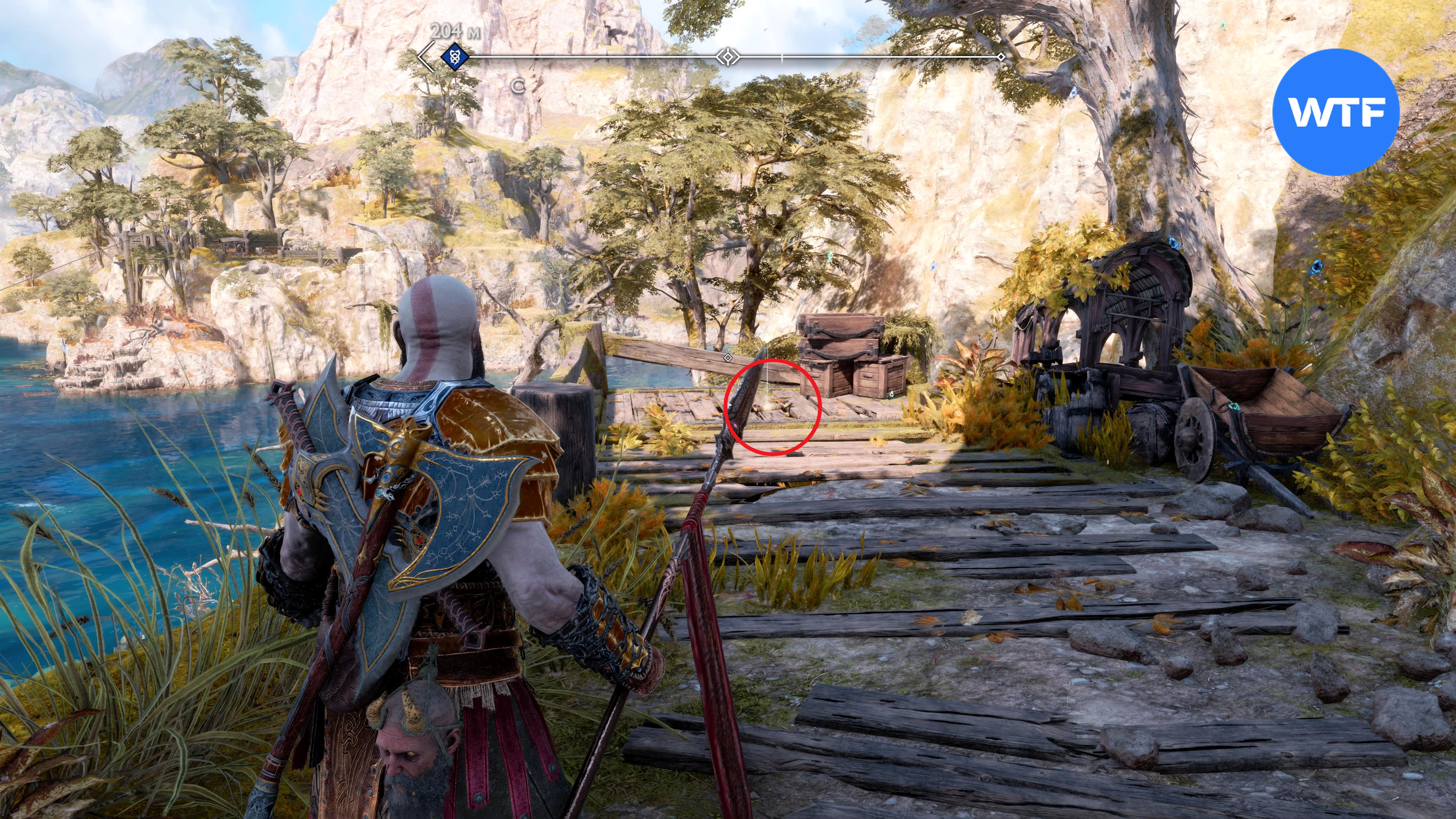 Высадитесь на пляже в Руинах на скале, это прямо напротив мистических врат в Дельте реки. Освободите от лоз цепь, свисающую со скалы слева от сундука норн, и заберитесь по ней наверх. Там вы сможете использовать резец, чтобы открыть путь через реку.