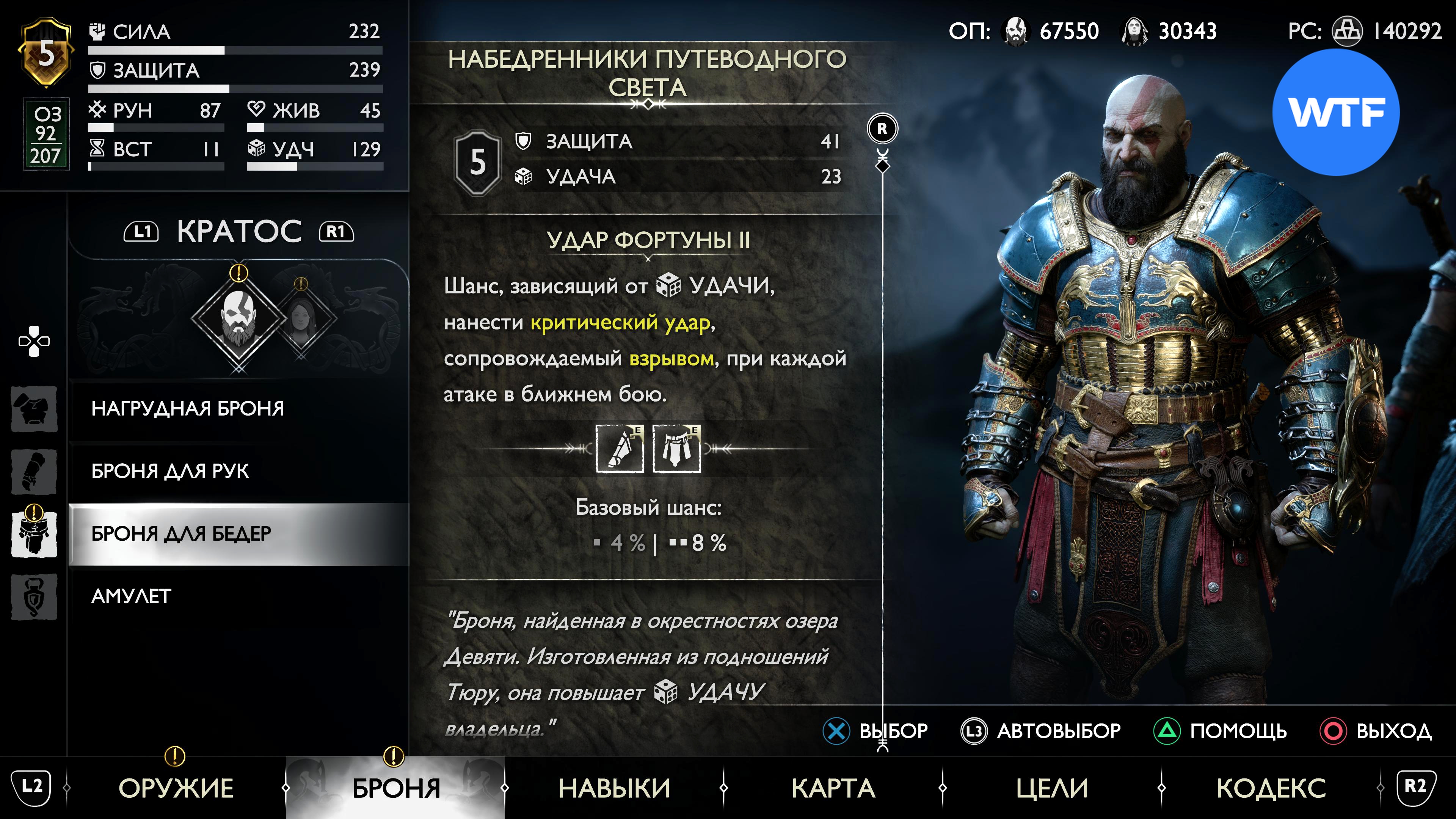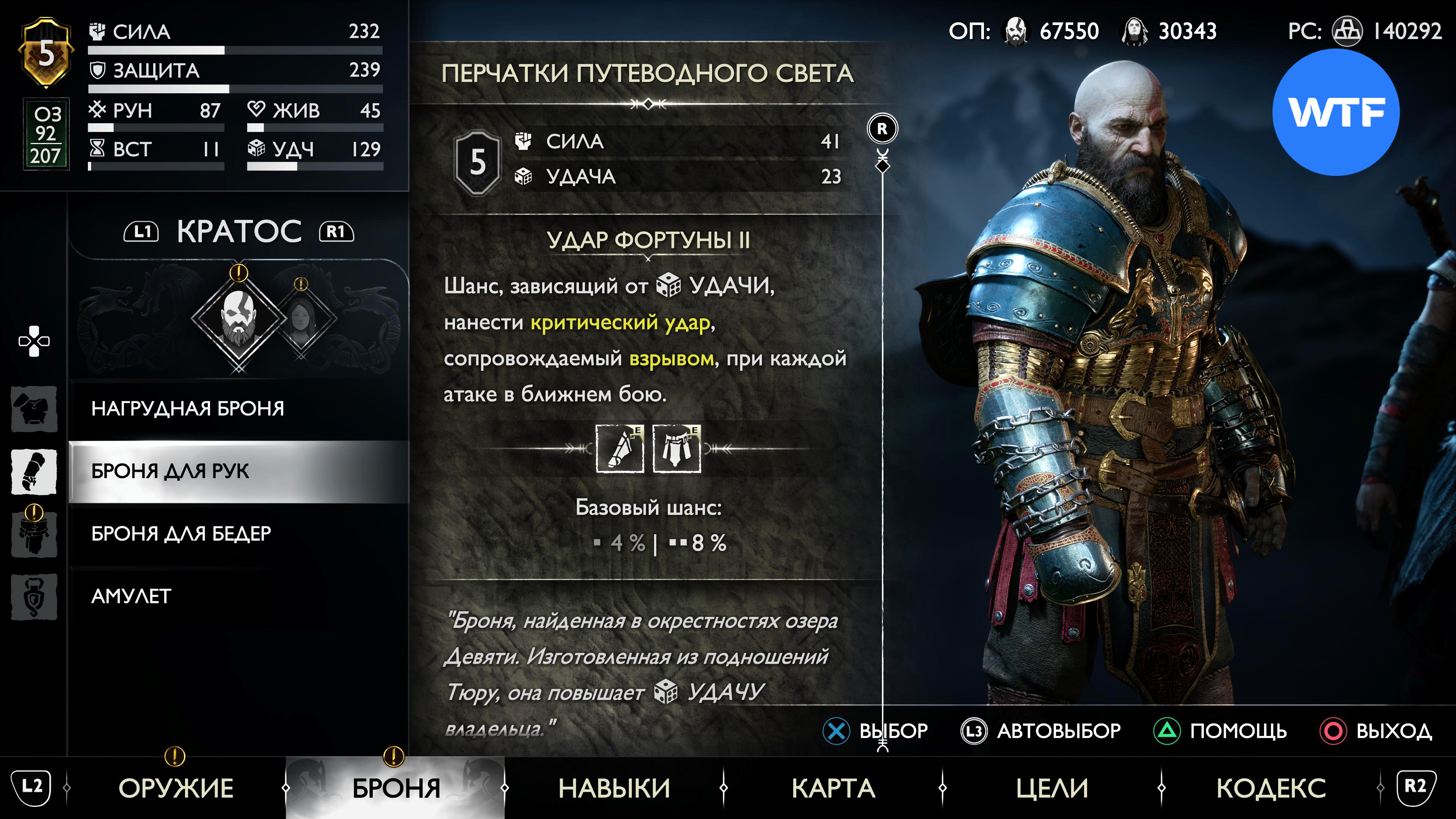 - Умеренный шанс, зависящий от удачи, повысить силу, руны и удачу от одного из видов оружия Кратоса при каждом ударе.
