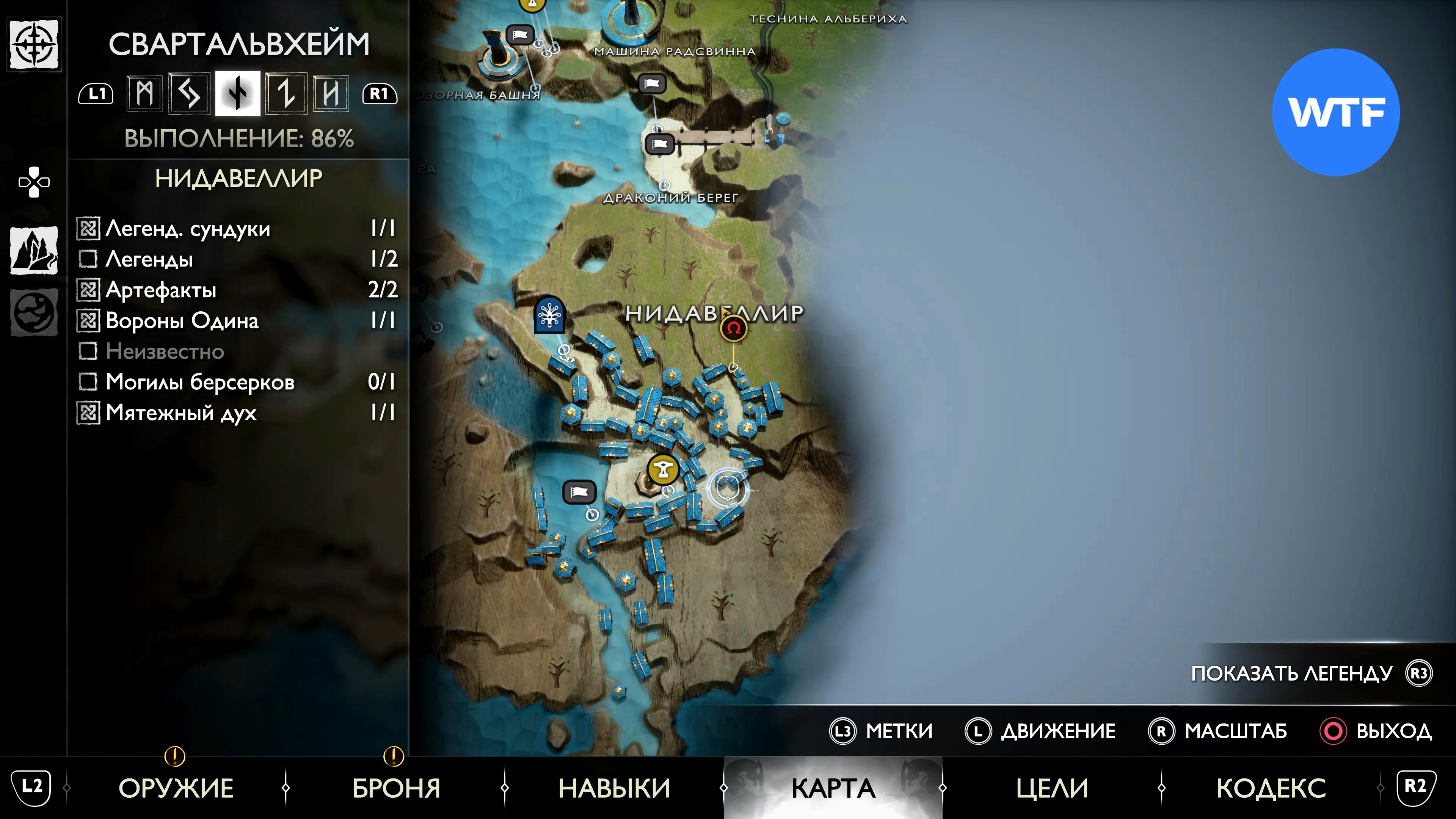 Для доступа в эту локацию вам нужно собрать 2 половинки семени Иггдрасиля, открывающих проход. Их можно найти в легендарных сундуках следующих локаций: Машина Модвитнира (Свартальвхейм), Теснина Альбериха (Свартальвхейм), Лагерь Фрейра (Ванахейм), Горящие скалы (Муспельхейм). Подробнее про легендарные сундуки можно почитать в этом гайде.